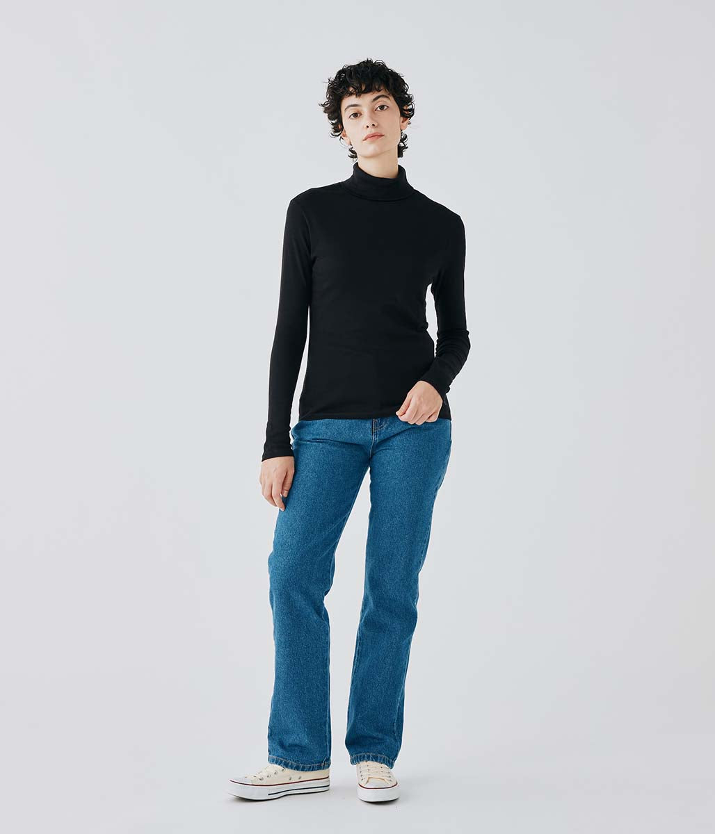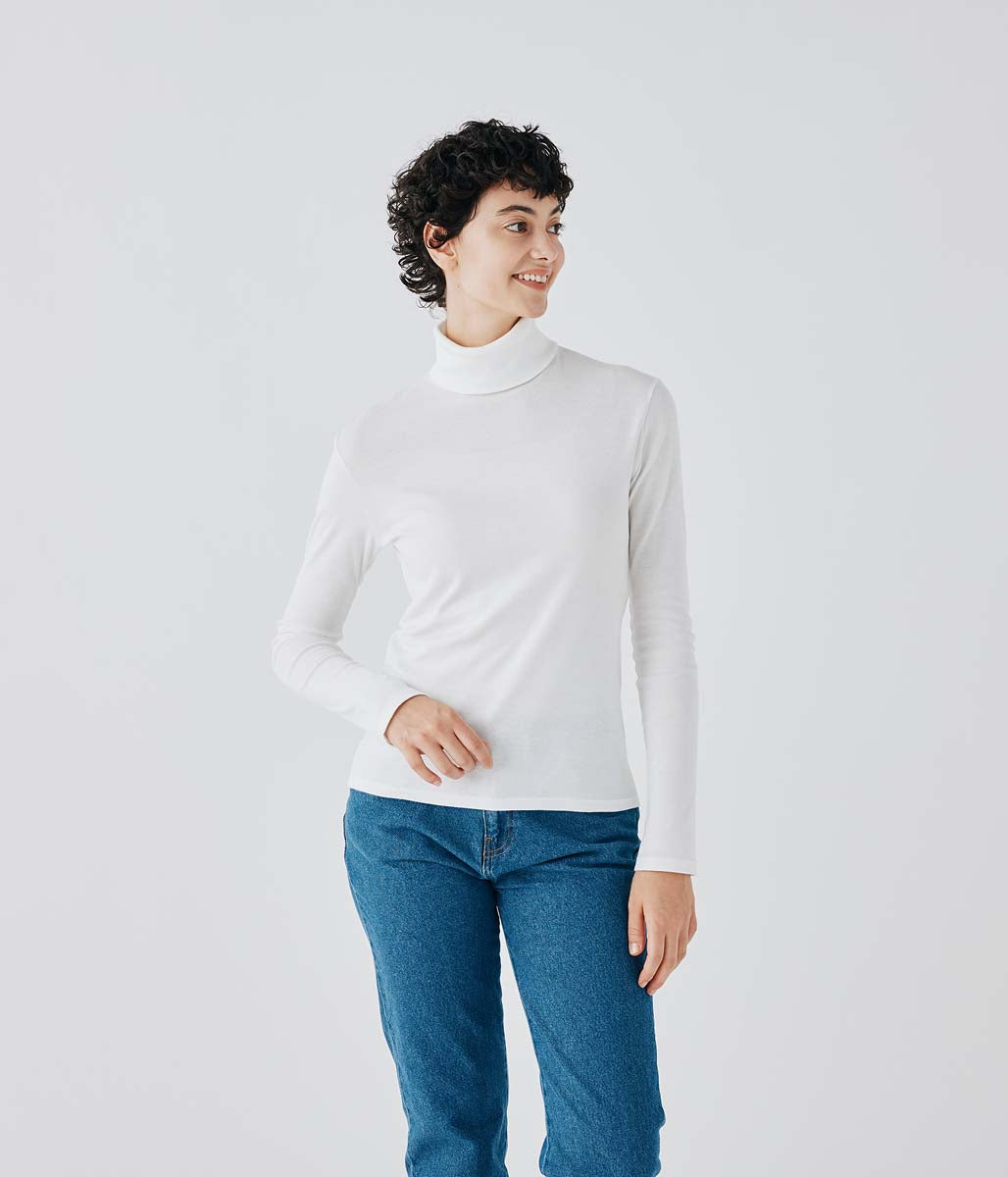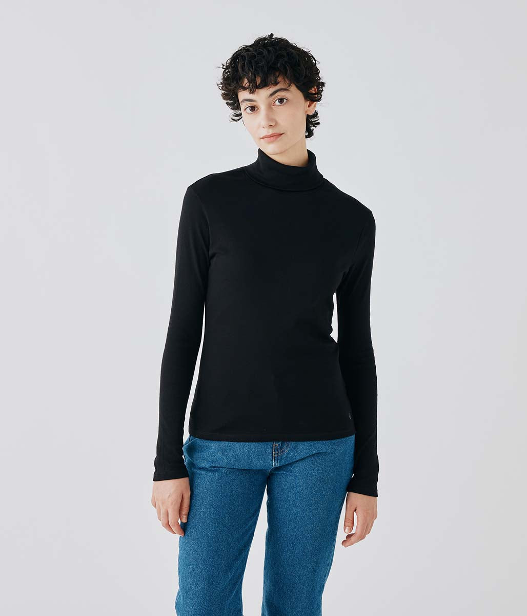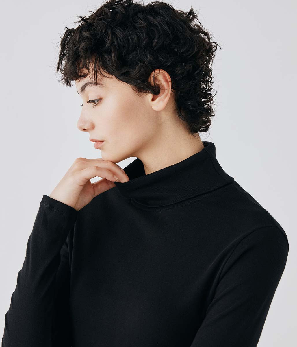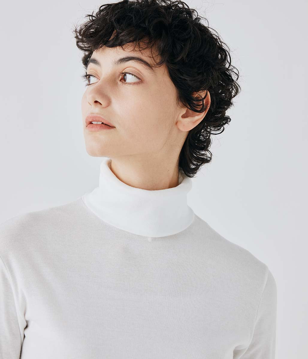 首元をあたたかく包み込むタートルネック長袖Tシャツ