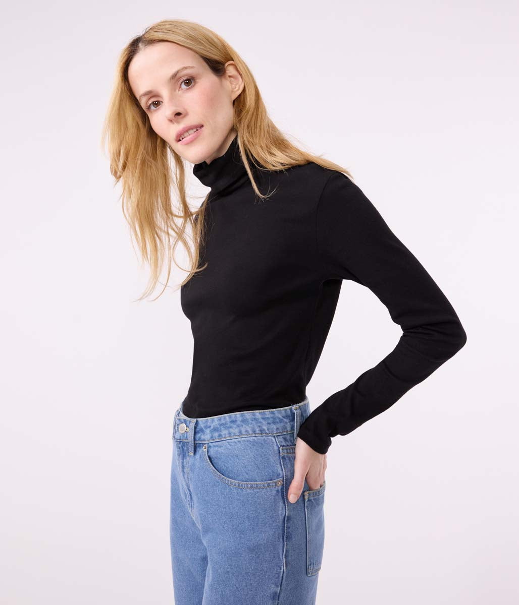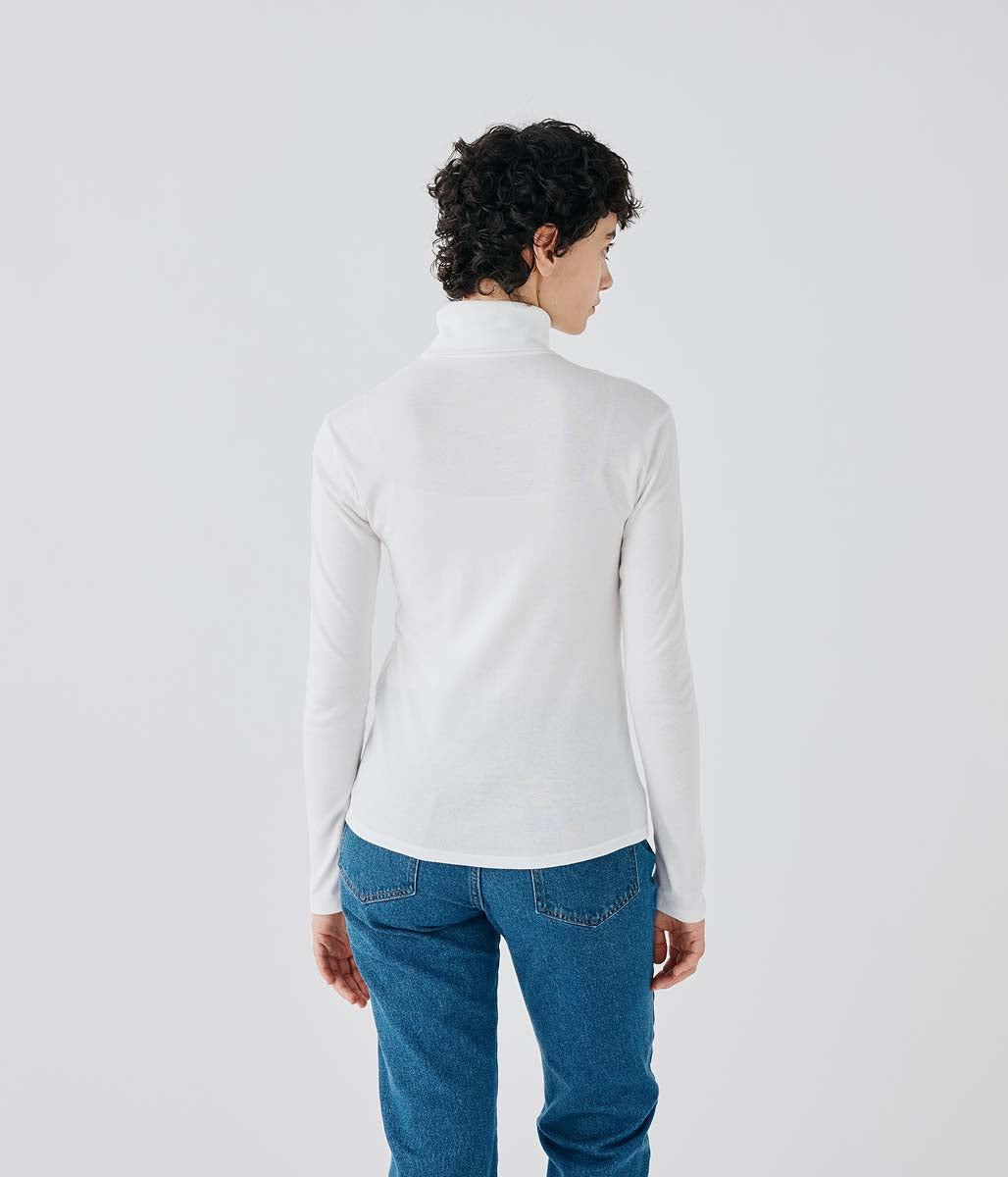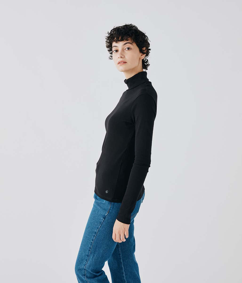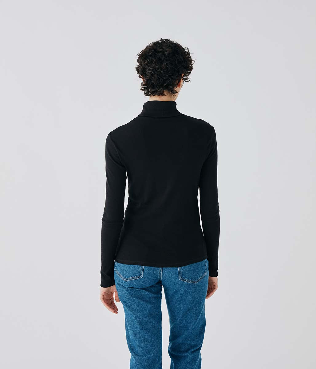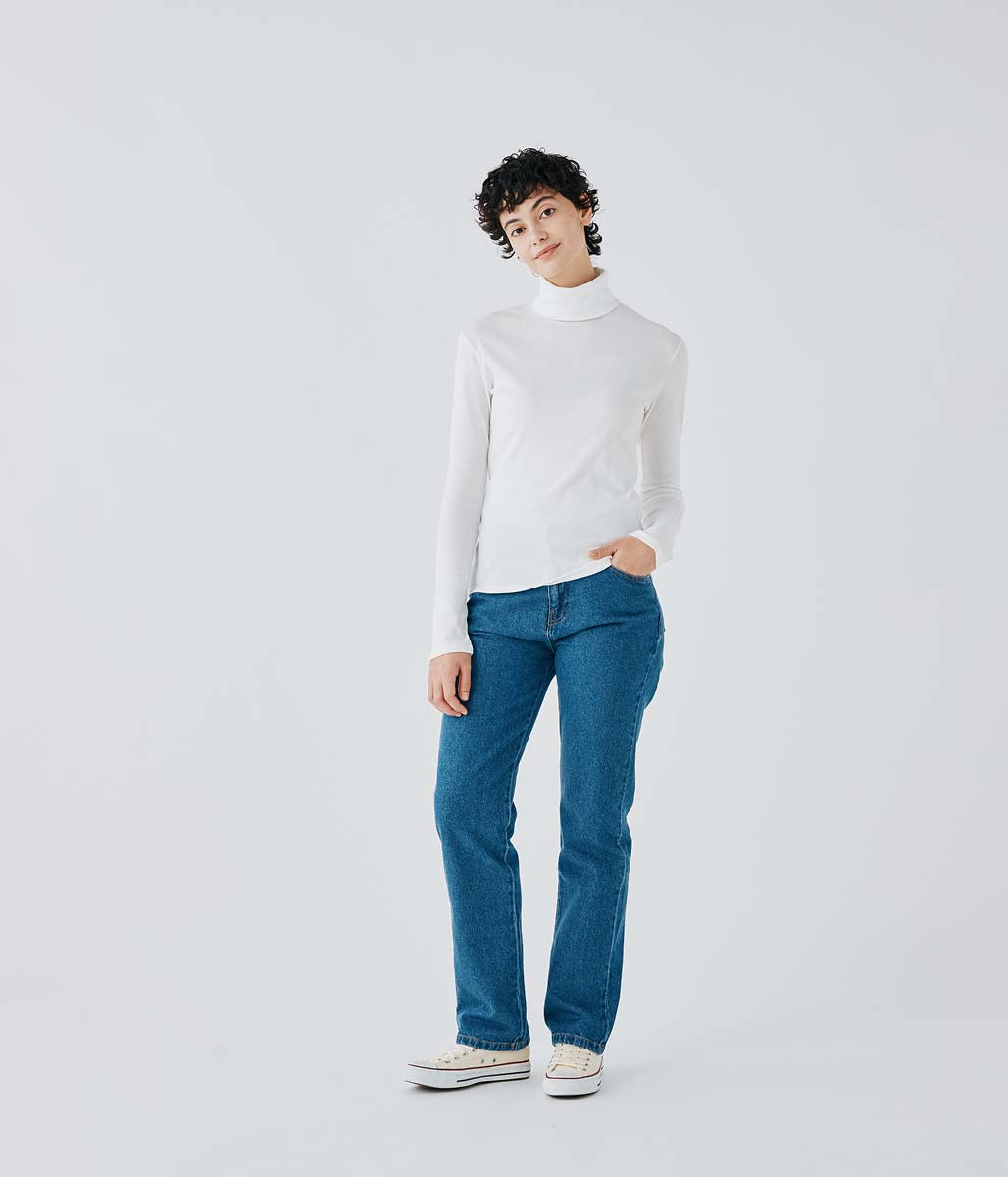 首元をあたたかく包み込むタートルネック長袖Tシャツ