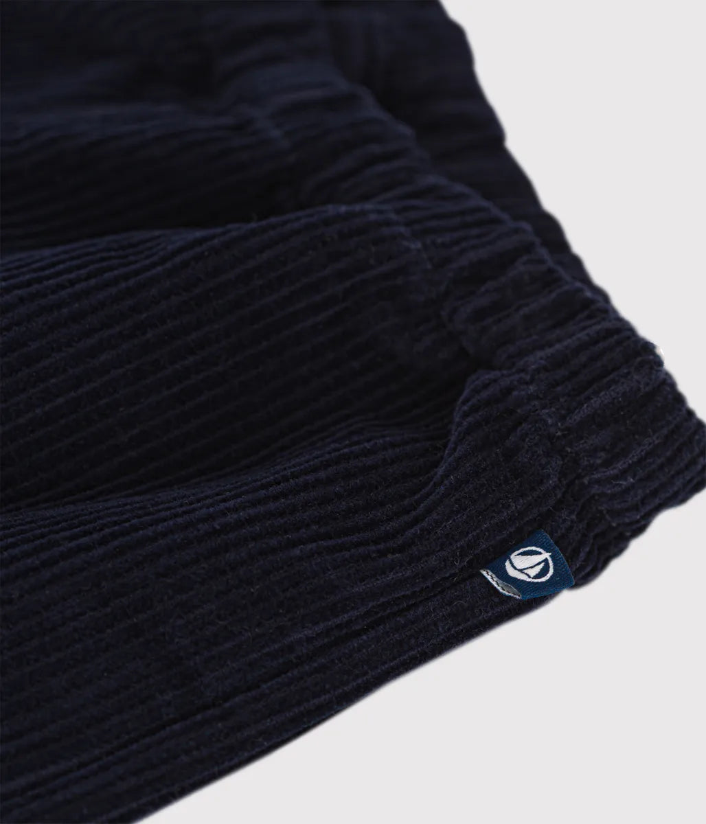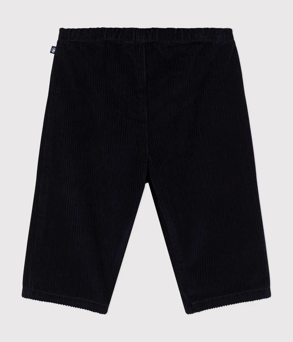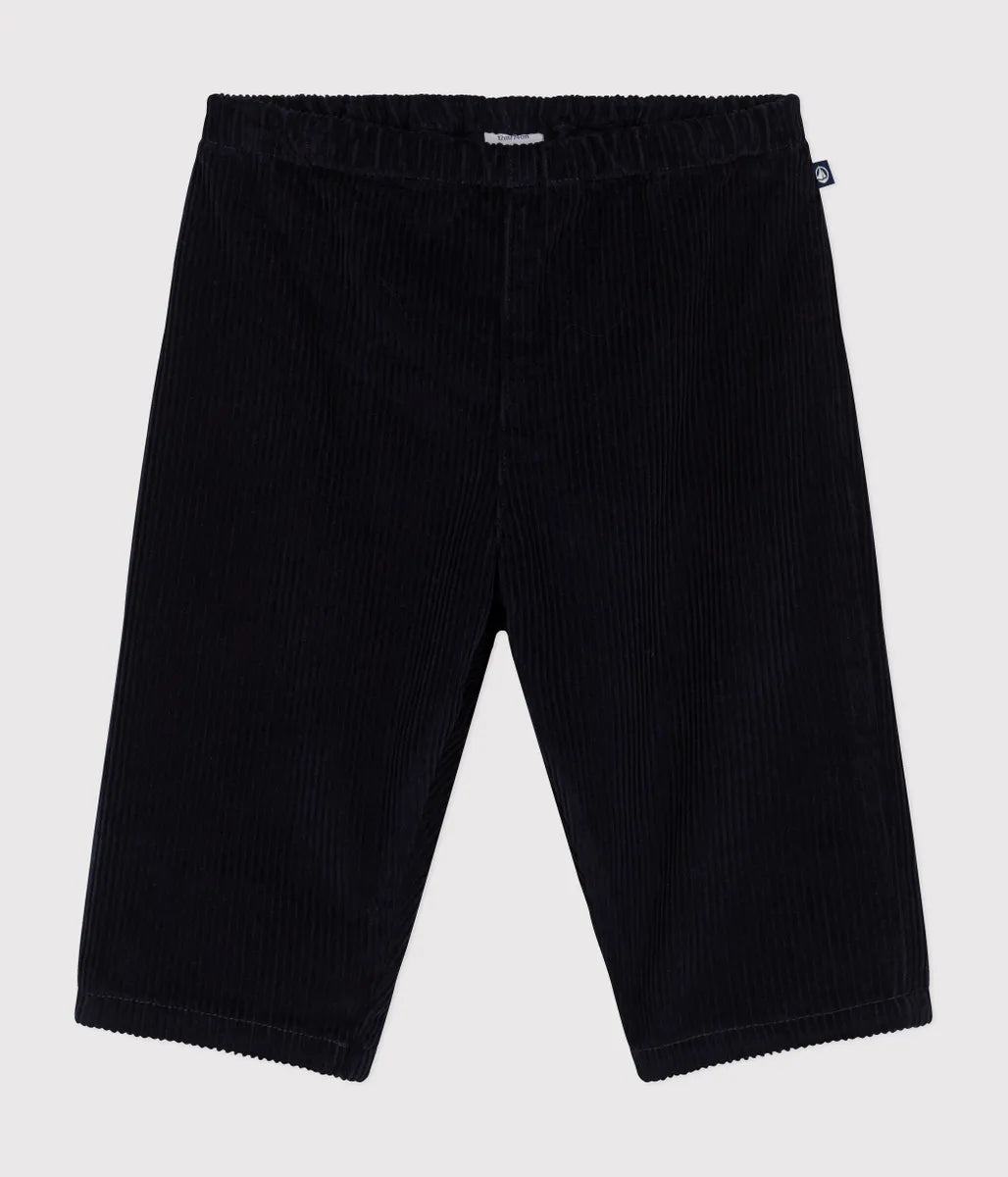 穿きこむほどに風合いの変化を楽しめる秋冬の定番、コーデュロイパンツです。ウエストはオムツ替えやお着替えも簡単にできるゴム仕様となっているので外出時も安心。セーターやプルオーバーなどと合わせたカジュアルスタイルと相性抜群なアイテムです。