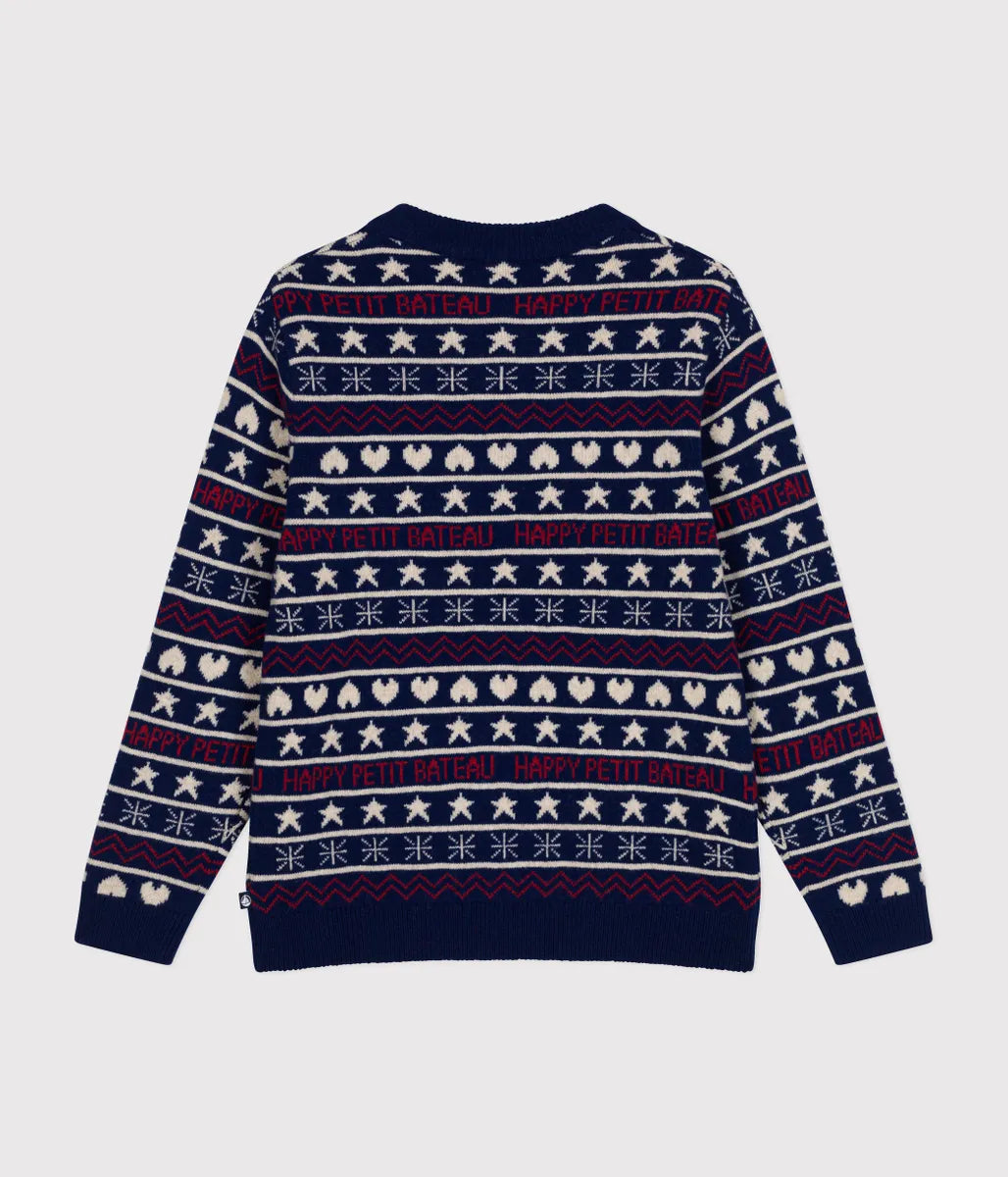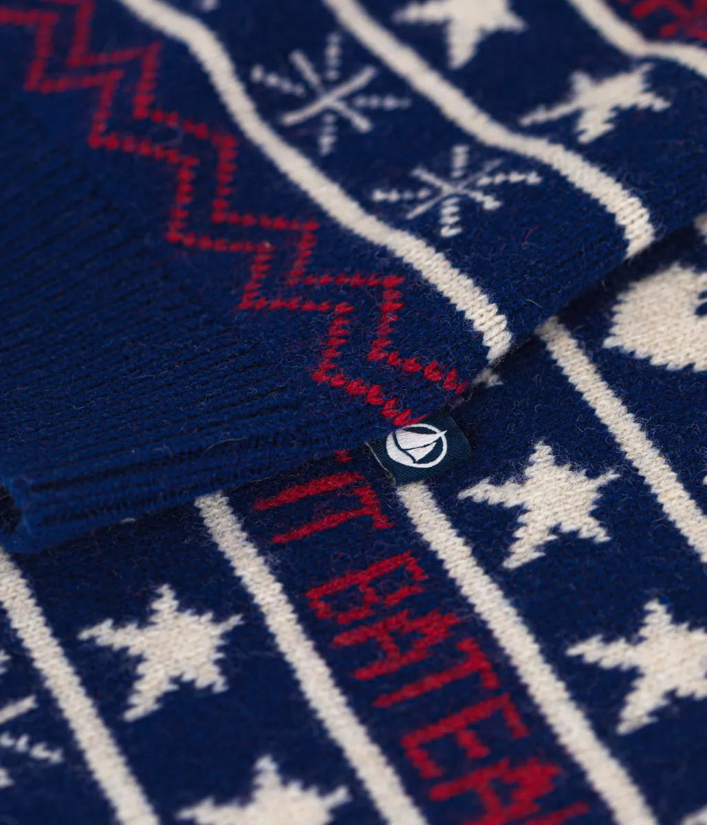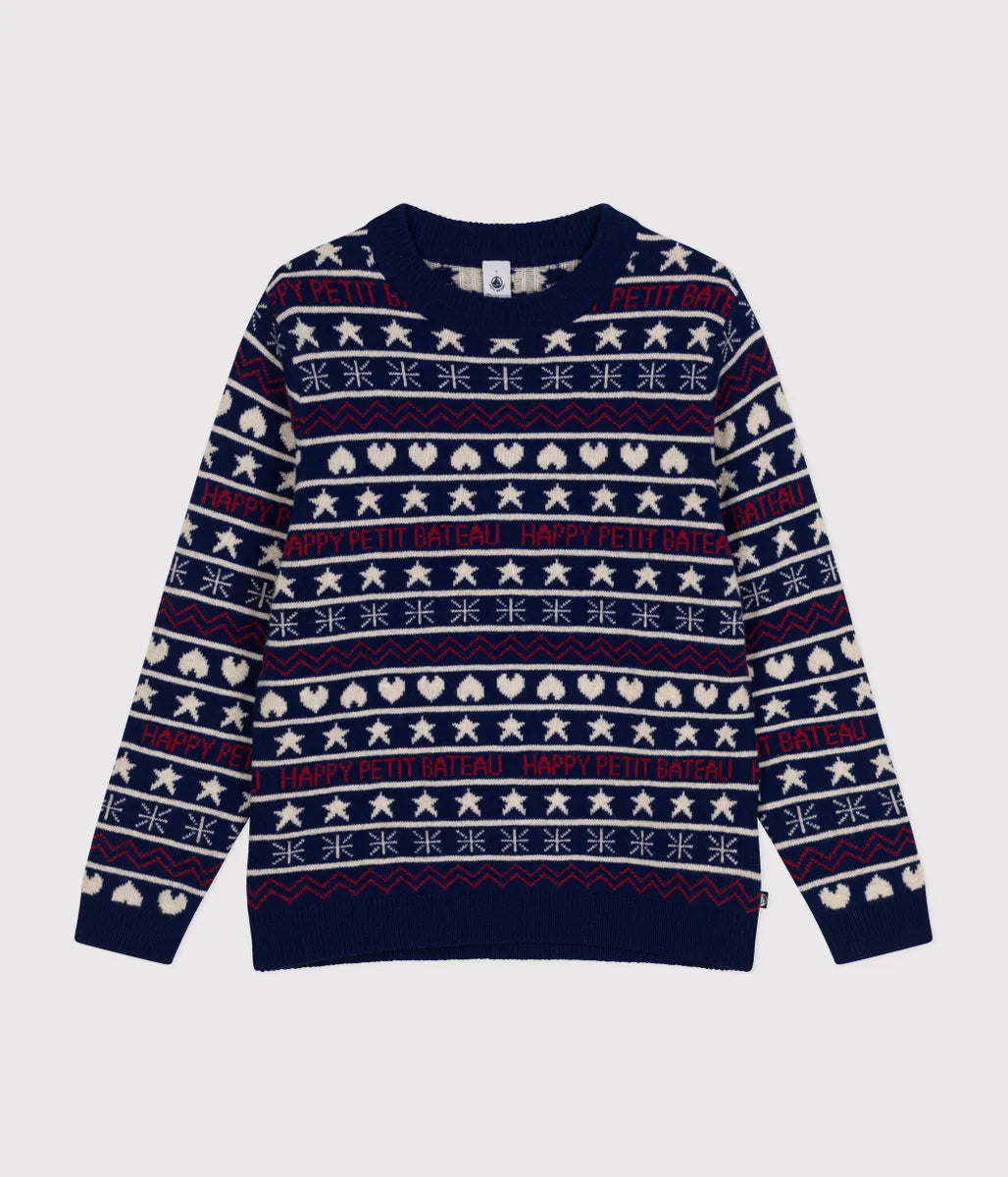 冬らしいノルディック柄にブランドロゴを織り交ぜたデザインが目を引くニットプルオーバーの登場です。環境や動物にやさしいウールを使用したあたたかみのある肌触りと着心地に定評があります。これからのシーズンの定番として人気のアイテムは、同柄で合わせた親子コーディネートも楽しめます。