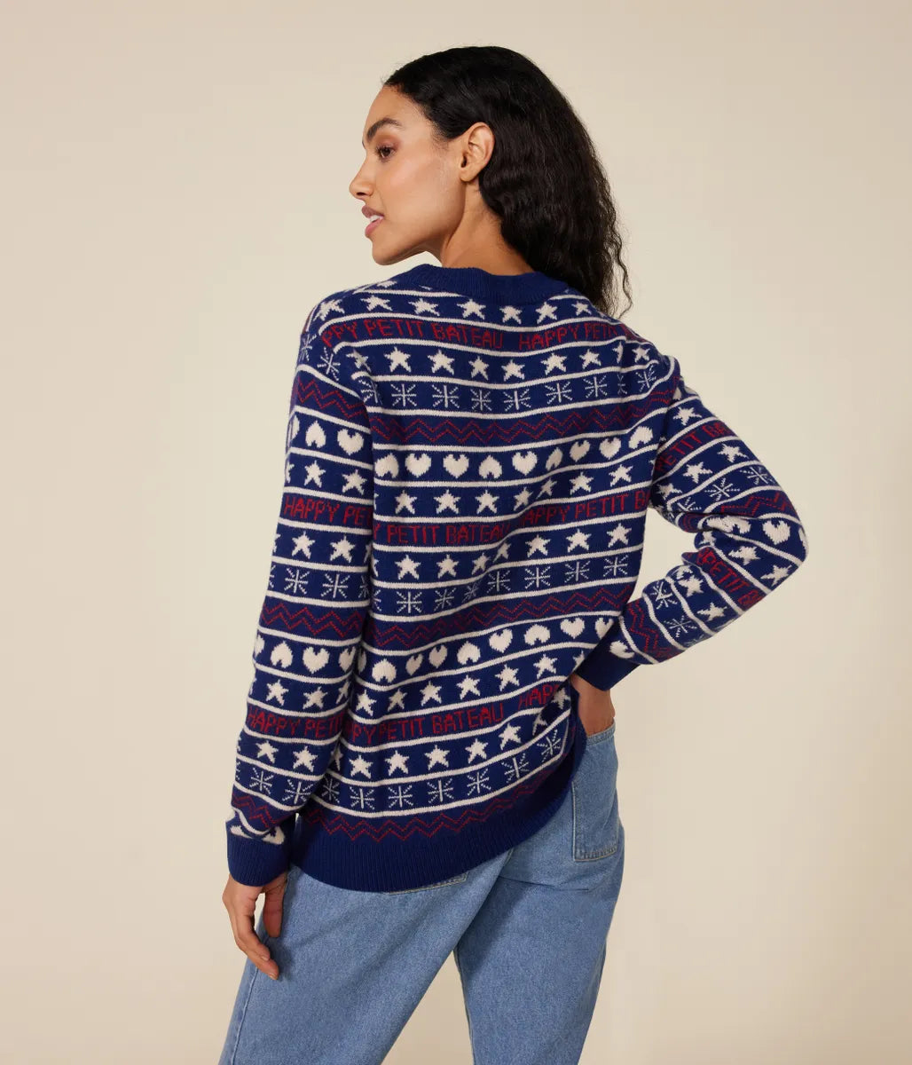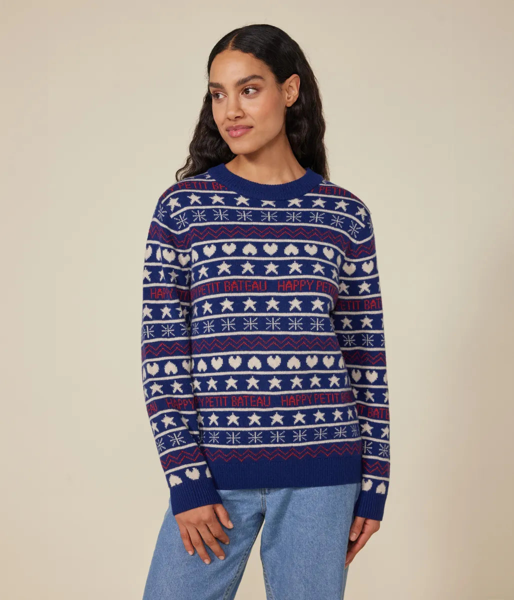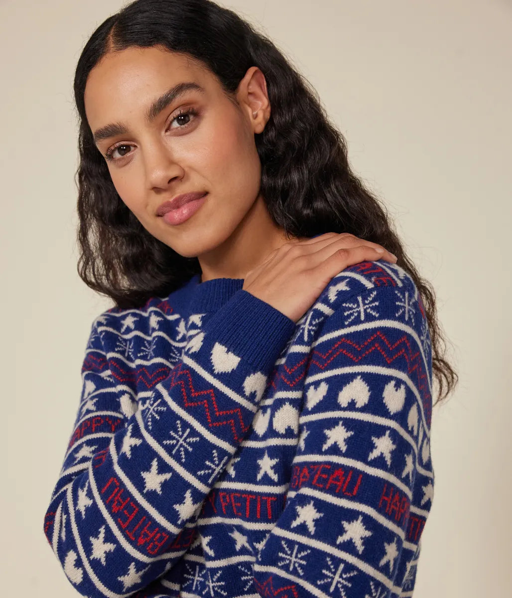 冬らしいノルディック柄にブランドロゴを織り交ぜたデザインが目を引くニットプルオーバーの登場です。環境や動物にやさしいウールを使用したあたたかみのある肌触りと着心地に定評があります。これからのシーズンの定番として人気のアイテムは、同柄で合わせた親子コーディネートも楽しめます。