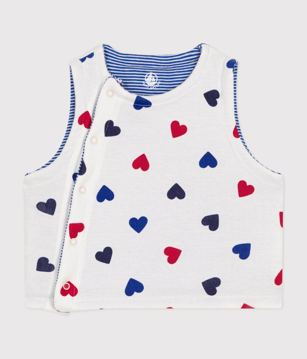 リバシーブルで柄を楽しめるベストです。環境にやさしいオーガニックコットン、第二の肌と呼ばれるほどやわらかな1x1リブ編み素材を使用しナチュラルな着用感を実現しています。羽織としてはもちろん、肌寒い日にはアウターの下のもう一枚としても活躍する注目のアイテムです。