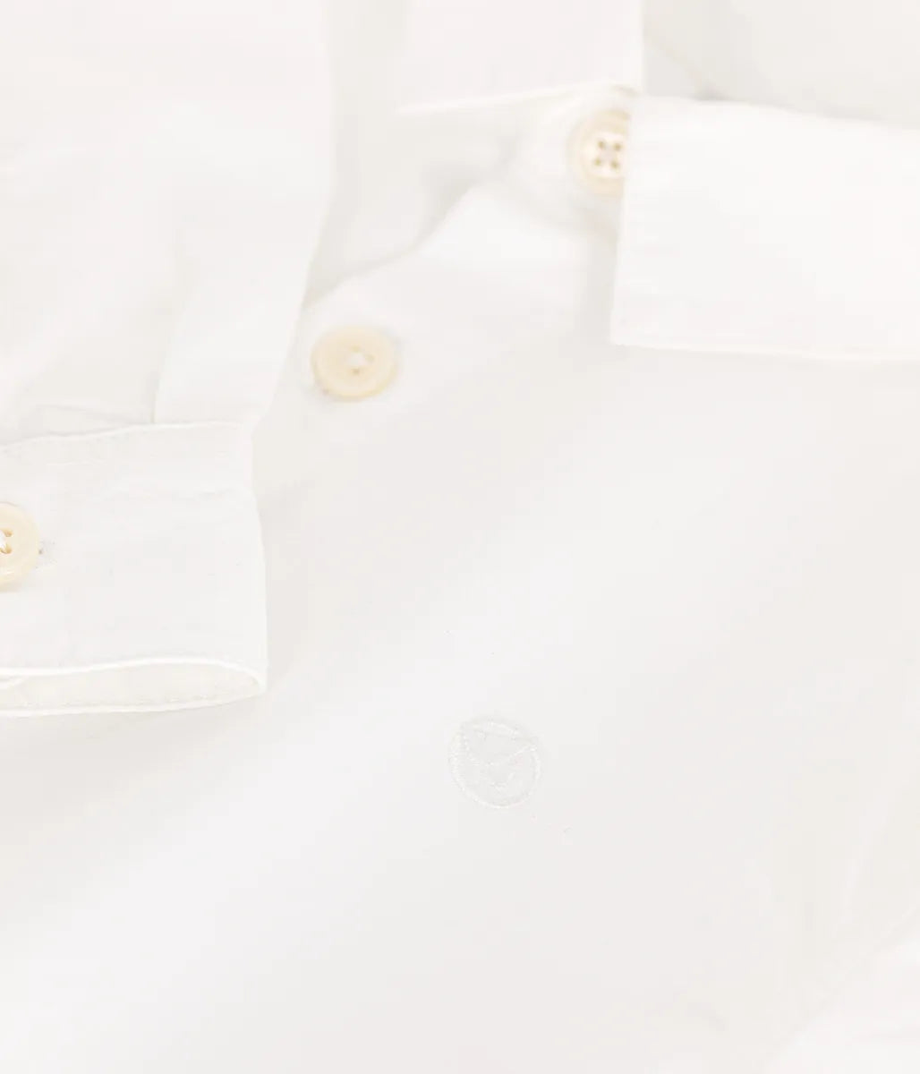 一枚あると便利な、オーガニックコットンを使用したシャツです。さらりとした肌触りの快適な着心地を提供するポプリンを素材に使用。胸元にはカラーオンカラーのブランドロゴ刺繍をあしらい、さりげないデザインのアクセントに。クローゼットのマストアイテムとして、おすすめの注目アイテムです。