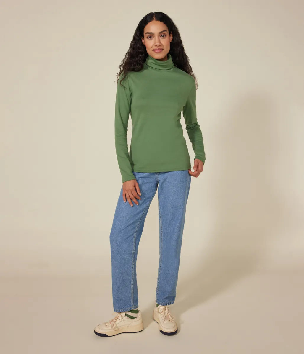 ピンク、グリーン、2色を揃えた長袖タートルネックです。環境にやさしいオーガニックコットン、第二の肌と呼ばれるほどやわらかな1x1リブ編みコットン素材を使用し快適な着用感を実現しています。首元が暖かくインナーとしても、これ一枚でも活躍するアイテムは、ご自宅での使用から特別なギフトとしてもおすすめです。