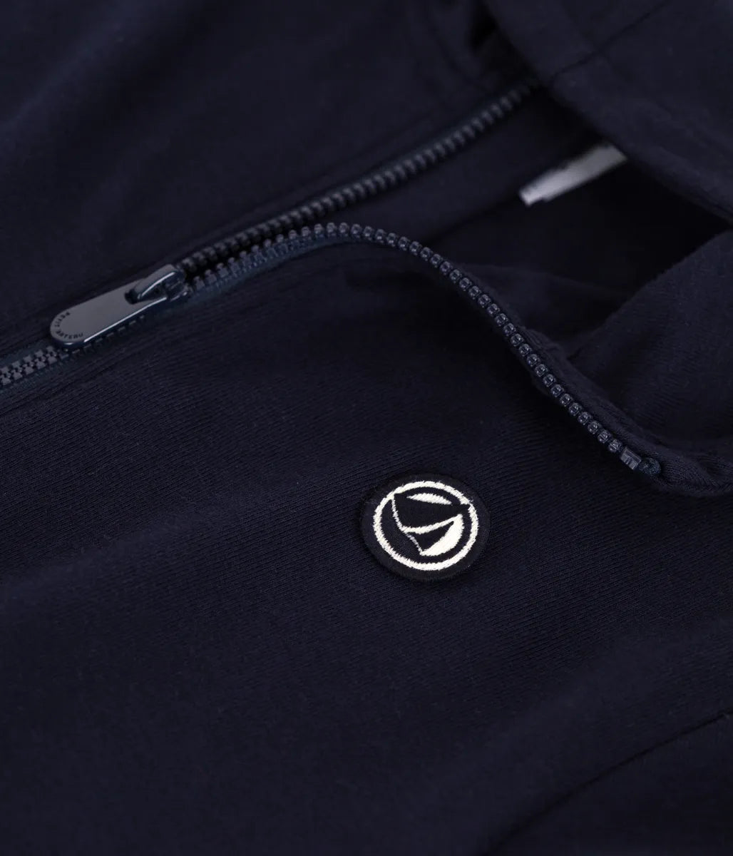 ブランドカラーのネイビーとグリーンで揃えたジップアップパーカーです。環境にやさしいオーガニックコットン、第二の肌と呼ばれるやわらかな手触りの1×1リブ編み素材を使用し、ナチュラルで快適な着心地を実現。胸にあしらわれたワンポイントのブランドロゴパッチがアクセントに。カジュアルスタイルやスポーティーなスタイルとよく合う注目アイテムです。