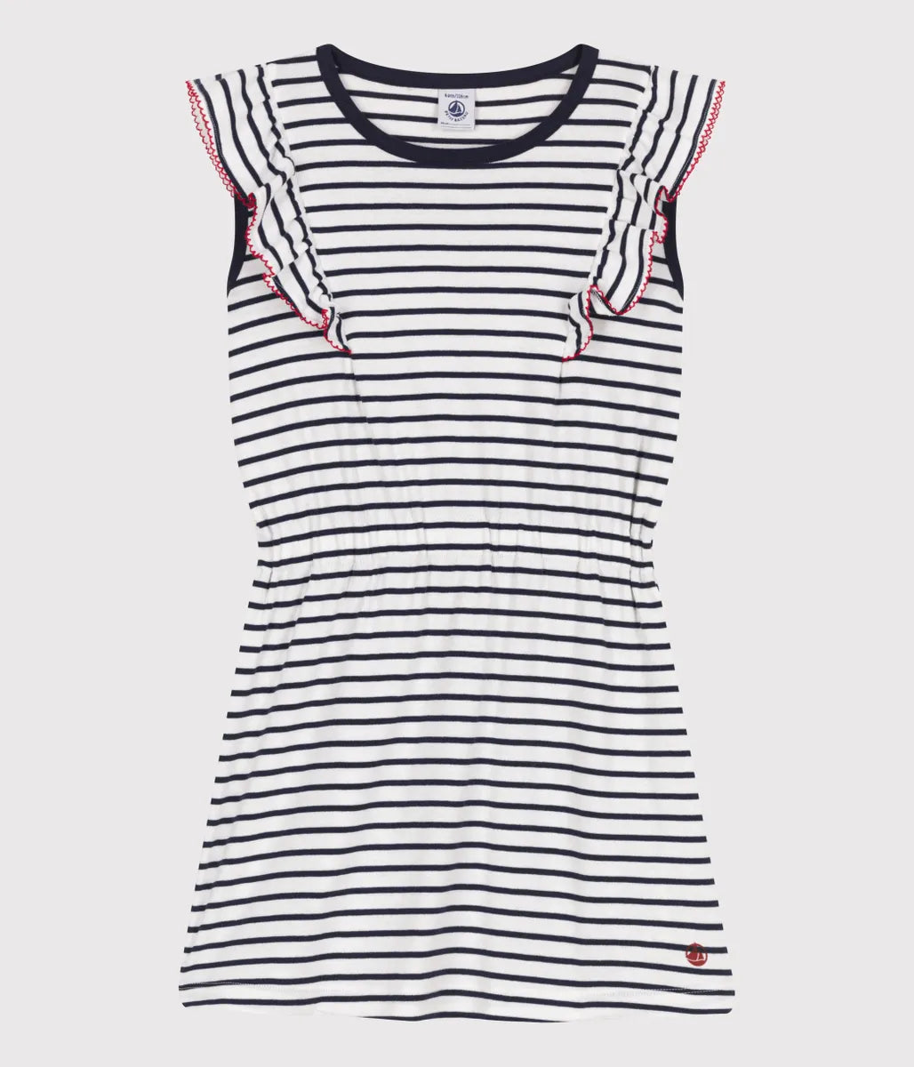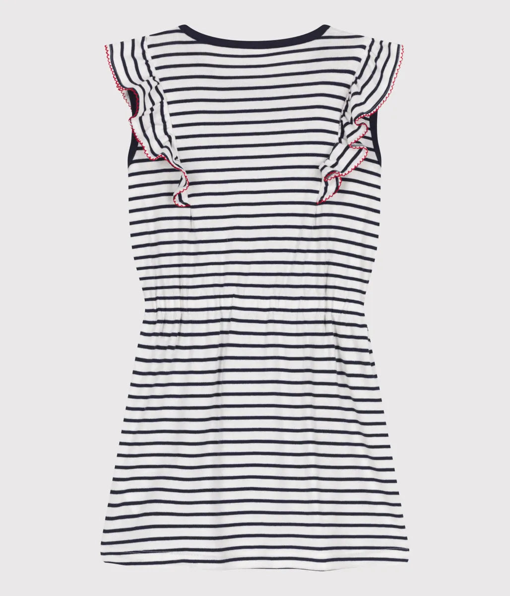 これからのシーズンによく似合うボーダー柄のワンピースです。環境に優しく、第二の肌と呼ばれるやわらかな手触りと伸縮性に優れた1×1リブ編み素材を使用し、ナチュラルな着用感を実現しています。赤い縁をあしらった胸元のフリルやシルエットの変化を楽しめるウエストからの切り替えがデザインのアクセントに。デイリーユースからちょっとしたお出かけまで幅広いシーンに対応するおすすめの一着です。