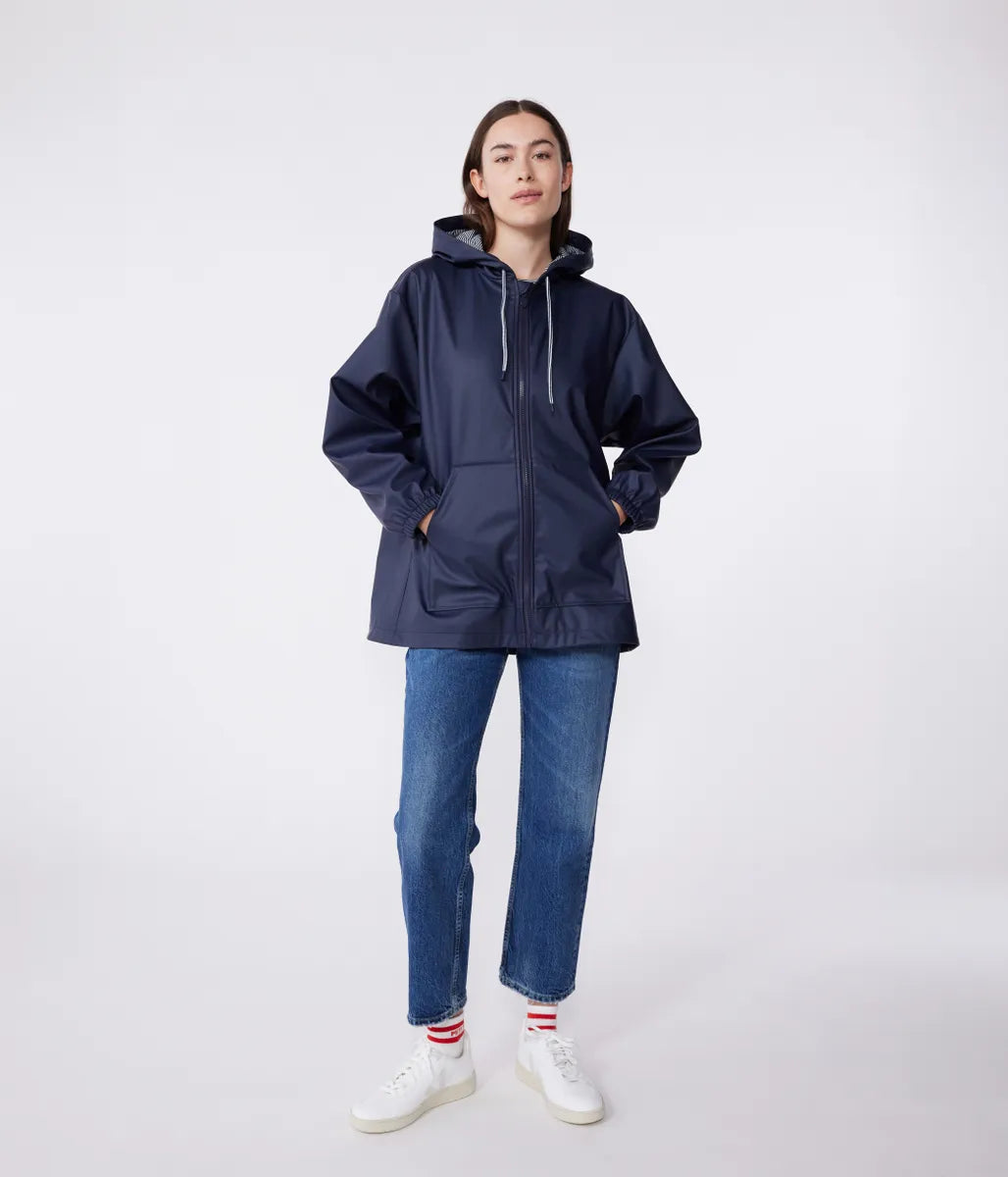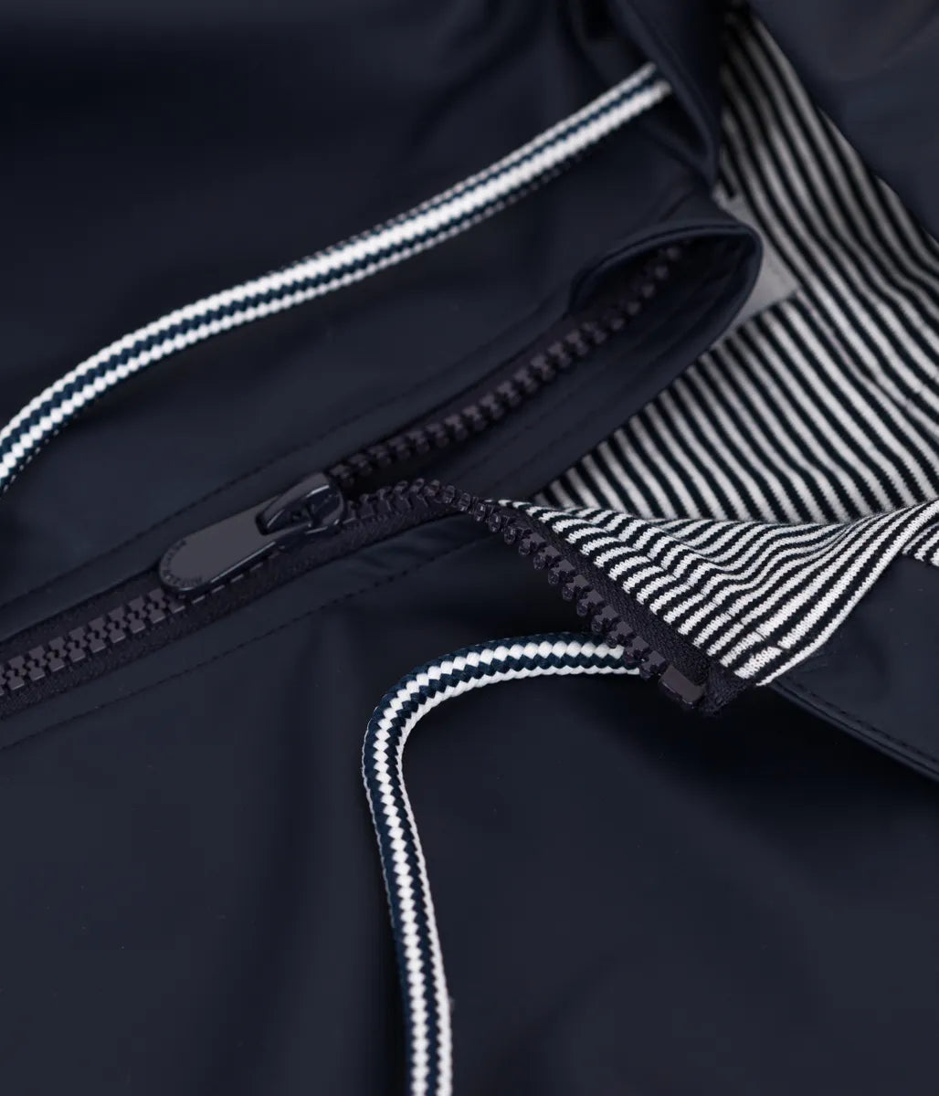 プチバトー定番のジップアップヨットパーカです。環境に配慮したリサイクル素材を使用。裏地にあしらわれたアイコニックなミラレボーダーが目を引くアイテム。クローゼットのマストな一着として、普段使いからアウトドアシーンまで幅広く活躍してくれます。ファミリーでお揃いで着用するのもおすすめです。