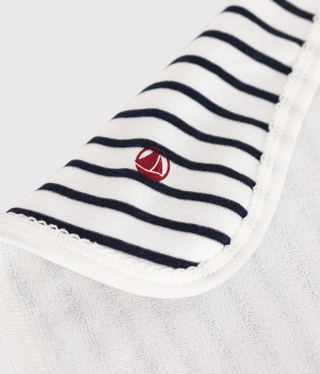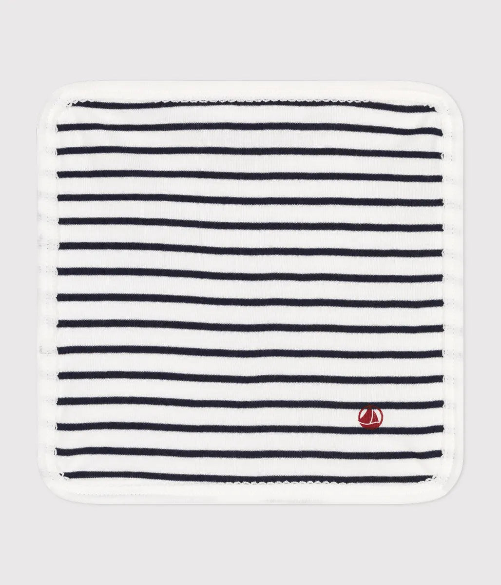 ブランドを代表するミニマリニエールボーダーをあしらったキュートなハンカチです。ピコレースがアクセントに効いているので、ちょっとした小物もオシャレにこだわりたい方にぴったり。裏地はパイル素材を使用し吸収性も兼ね備えています。やわらかな肌触りが心地いいアイテムは、自宅用としてはもちろん、同柄のポーチと合わせたギフトにもおすすめです!