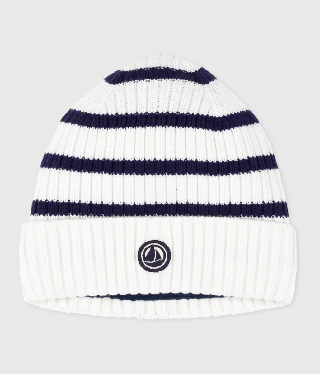 ブランドを象徴するマリニエールボーダーの、定番ニットキャップです。環境にやさしいオーガニックコットンを編み上げた、やわらかな肌触りのニット素材を使用しています。裏地には、保温性に優れたフリース素材を使用しているので寒い冬も安心。ワンポイントのロゴパッチが目を引きます。ファッション性も高いアイテムなのでギフトにも大変おすすめです。