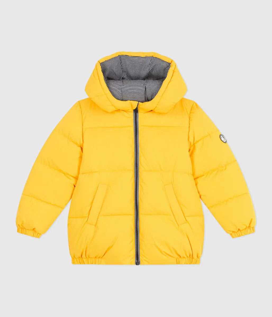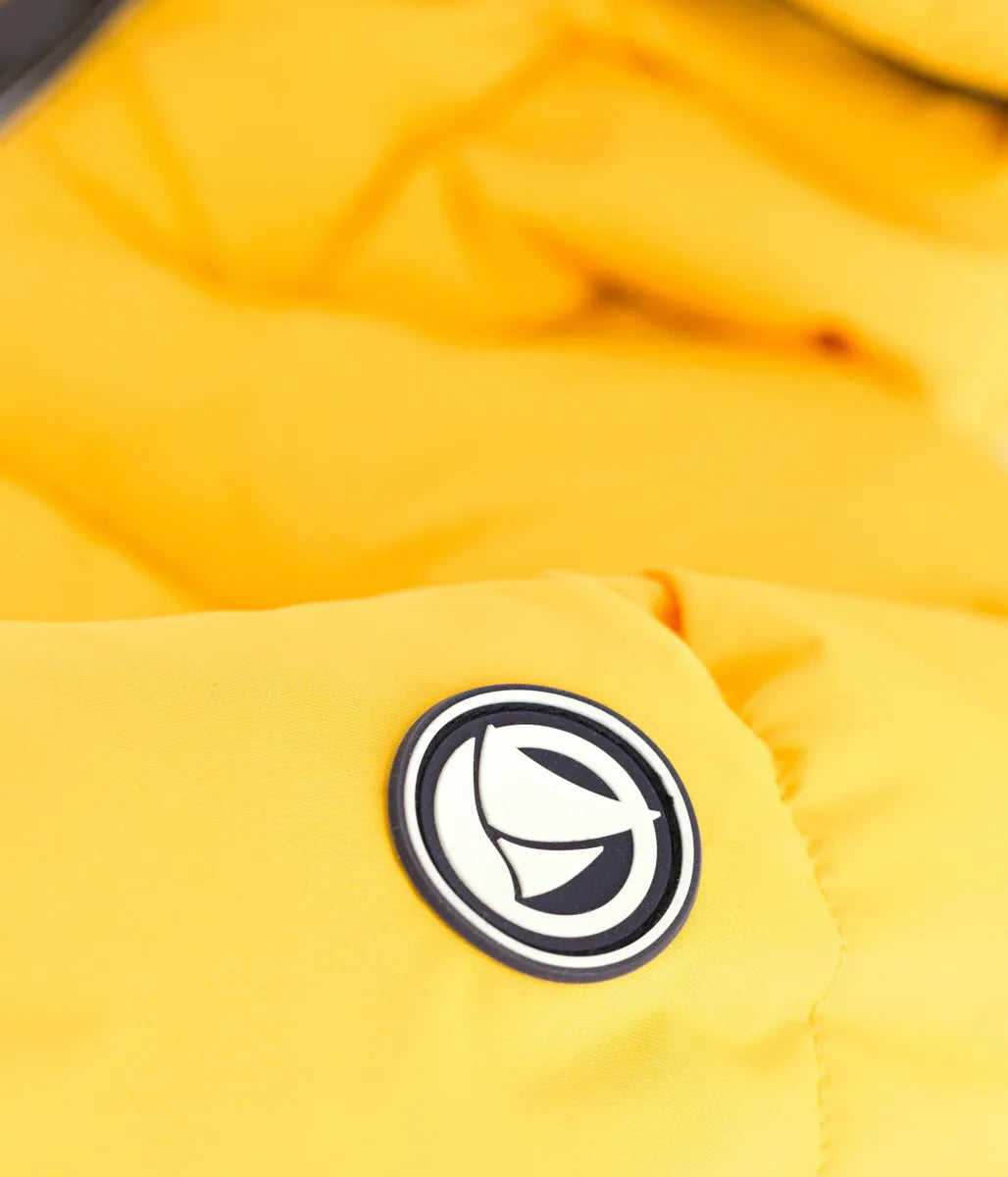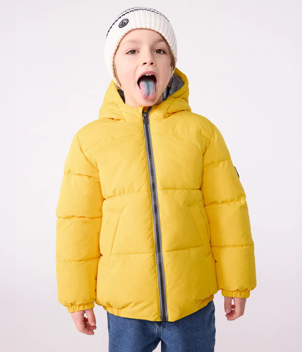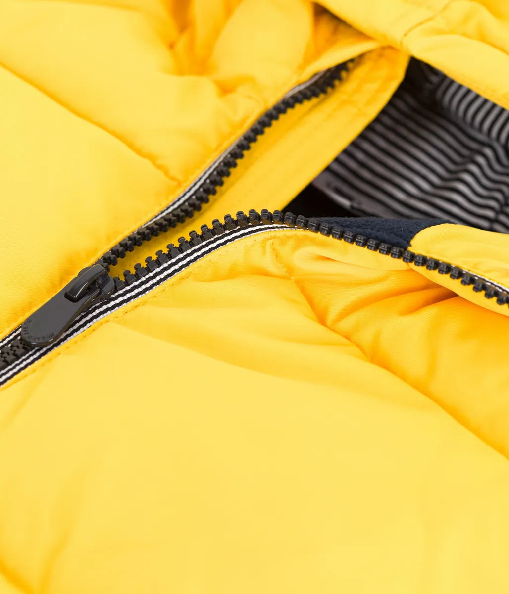 あたたかな中綿をたっぷりと充填したフード付きジャケットです。フード裏と前立てにあしらわれたアイコニックな極細ミラレボーダーと左袖のシリコン性ロゴパッチがデザインにアクセントをプラスしています。きょうだいで合わせたコーデも楽しめる、これからのシーズンに活躍間違いなしのおすすめアイテムです。イエロー、グリーン、ネイビー、ピンクの4色展開。