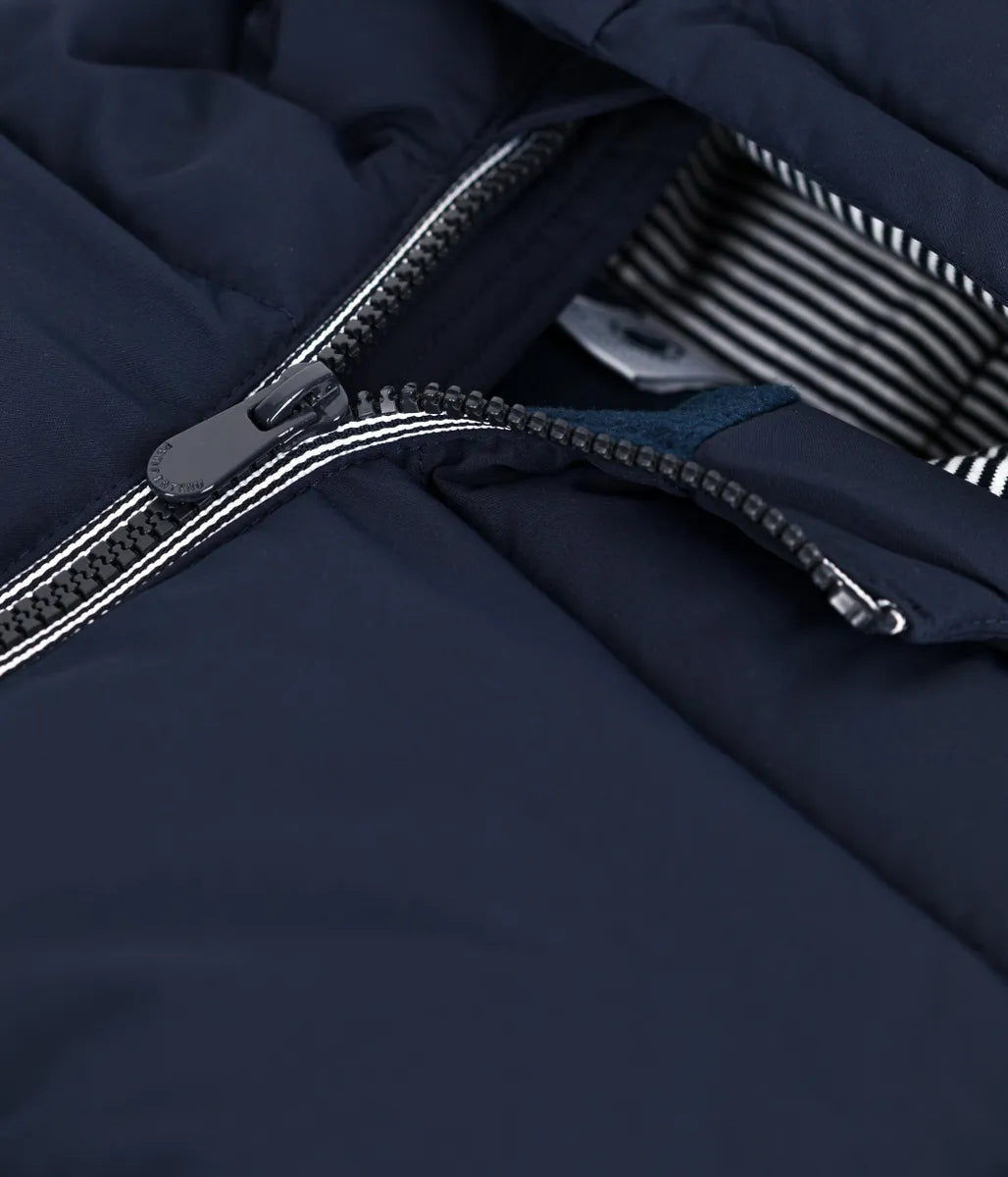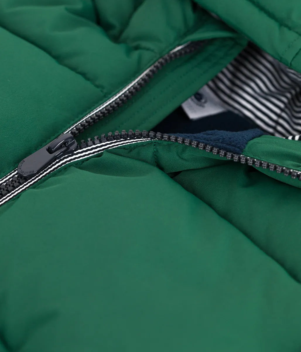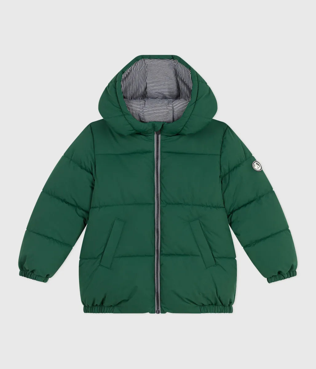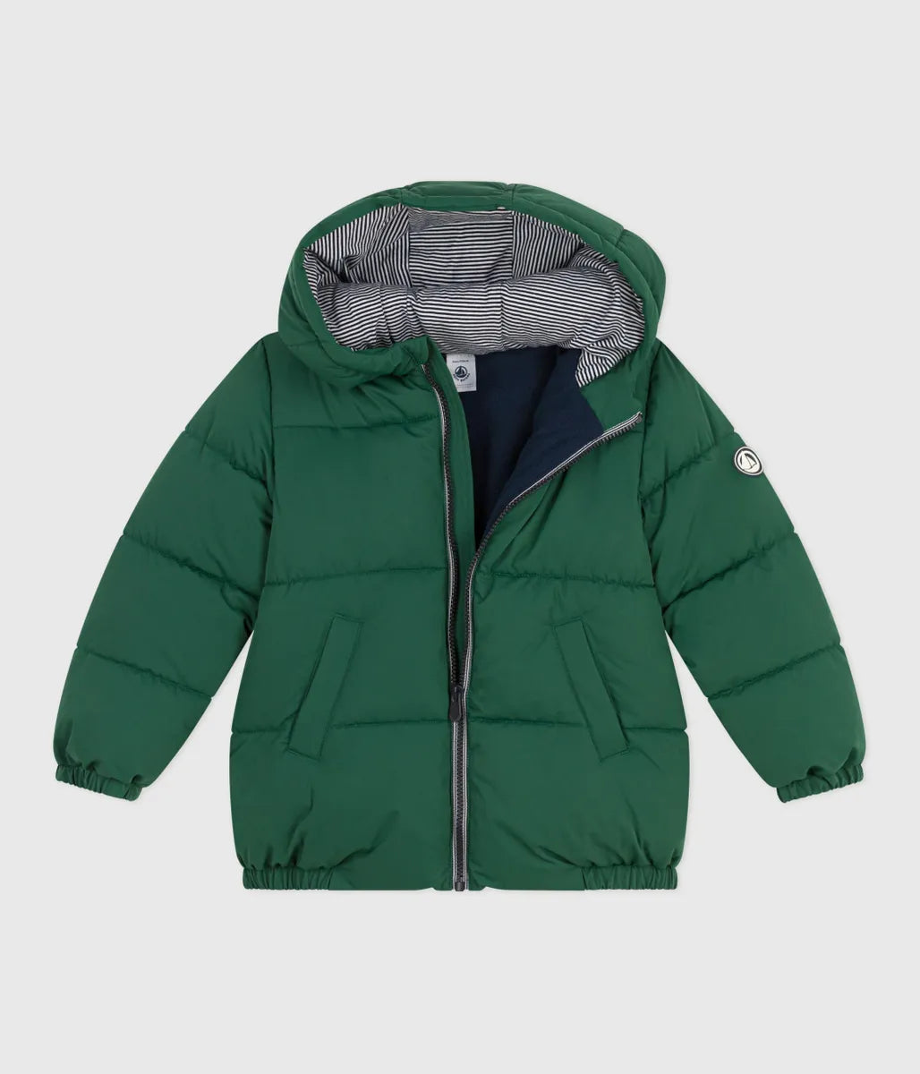 あたたかな中綿をたっぷりと充填したフード付きジャケットです。フード裏と前立てにあしらわれたアイコニックな極細ミラレボーダーと左袖のシリコン性ロゴパッチがデザインにアクセントをプラスしています。きょうだいで合わせたコーデも楽しめる、これからのシーズンに活躍間違いなしのおすすめアイテムです。イエロー、グリーン、ネイビー、ピンクの4色展開。