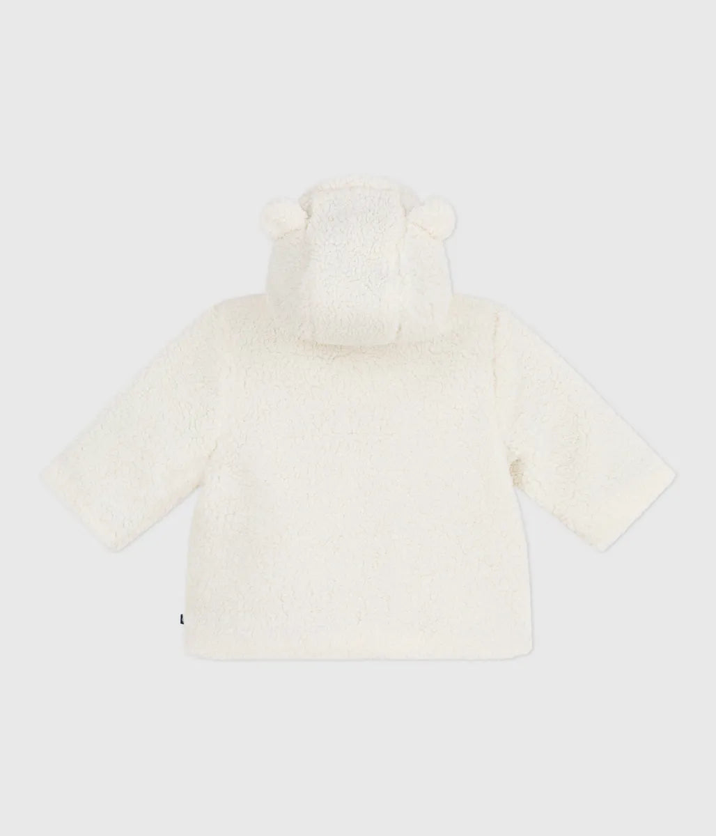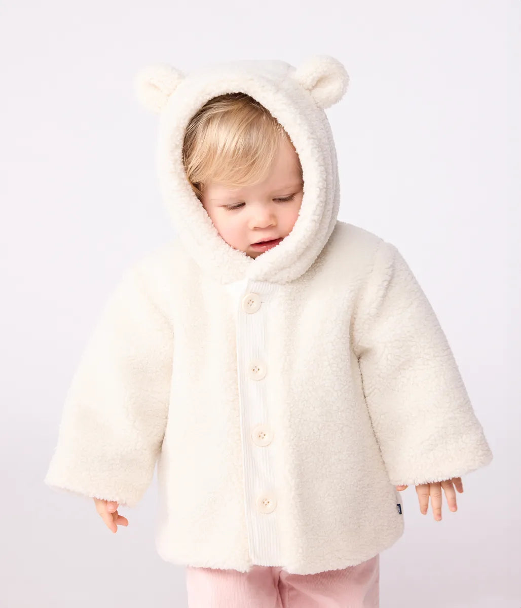 環境に配慮したリサイクル素材を使用したあたたかなフード付きボアジャケットです。フードにあしらわれたアイコニックな極細ミラレボーダーと、愛らしい耳がデザインにアクセントをプラスしています。これからのシーズンに活躍間違いなしの、ベビーも喜ぶおすすめアイテムです。