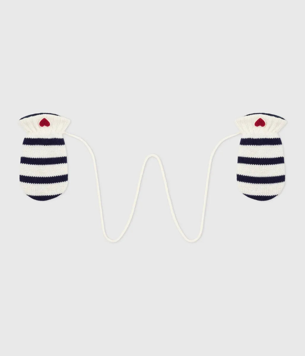裏フリースでしっかり保温、出産祝いにも人気のマリニエールボーダーミトン