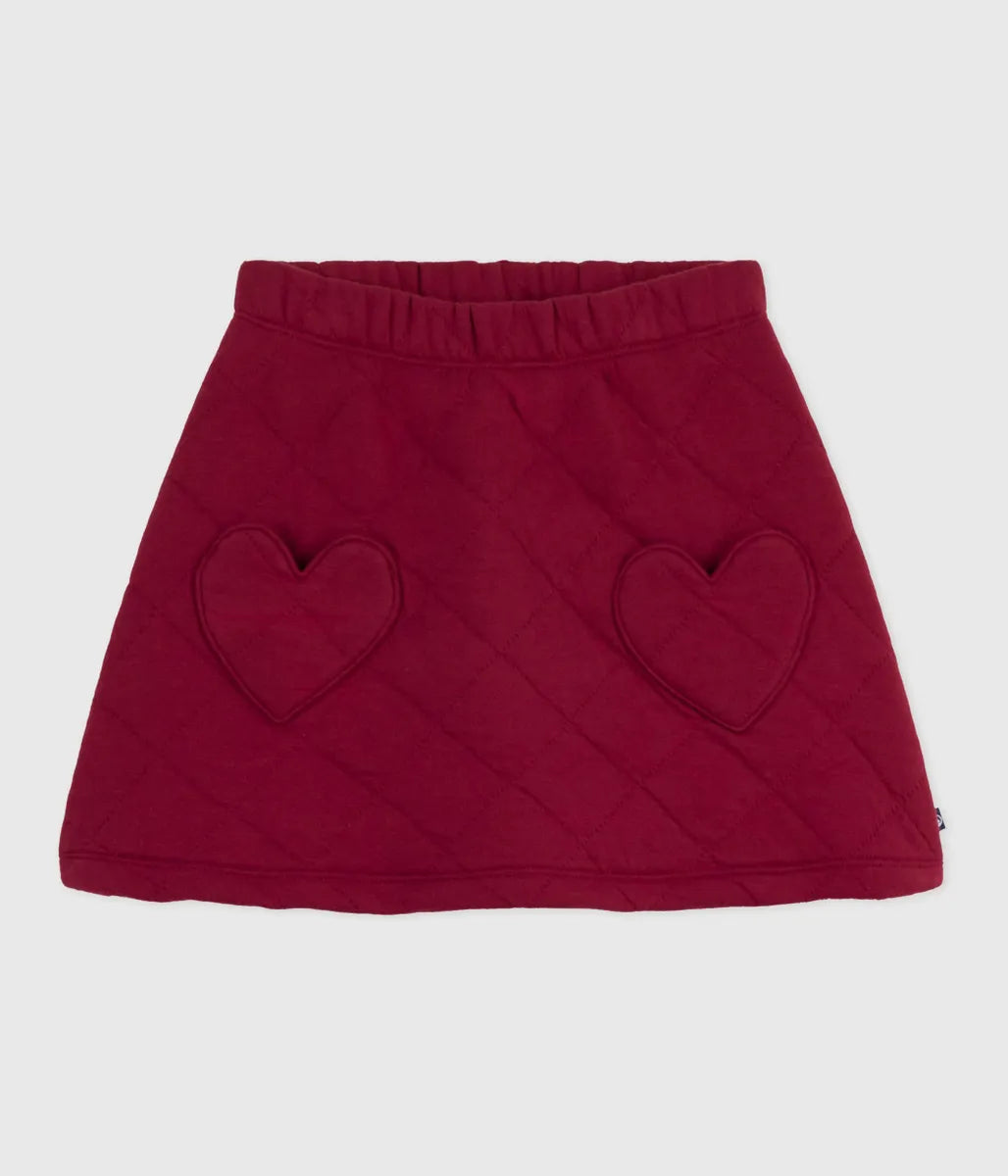 ハートモチーフのポケットがキュートなキルティングスカートです。環境にやさしい、2枚の生地を編み上げたやわらかな手触りのチュビック素材を使用し、快適で温かな着心地を実現。セーターやプルオーバーなどと合わせたカジュアルスタイルと相性抜群なおすすめアイテムです。揃いのカーディガンと合わせたコーディネイトも楽しめます。