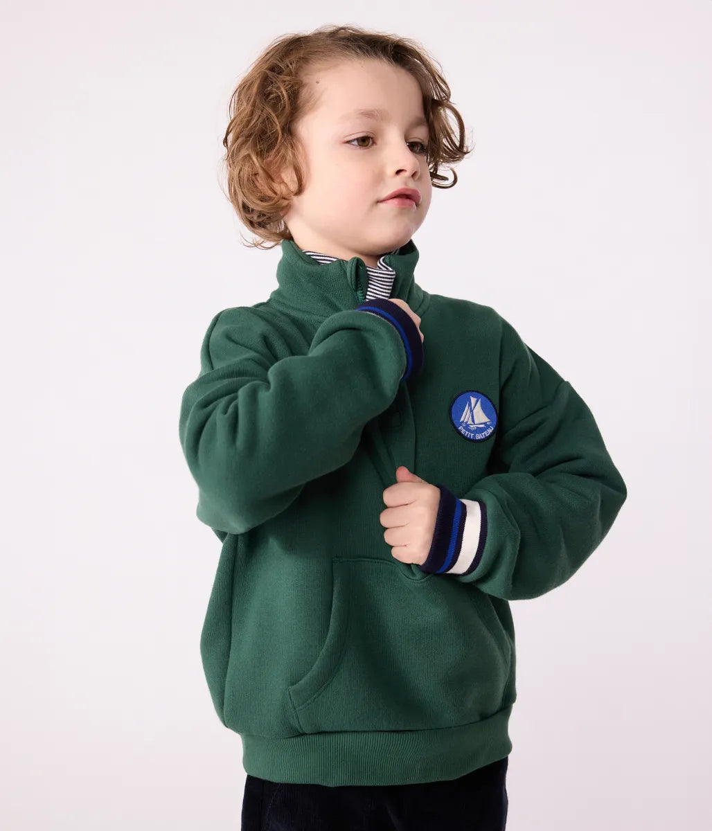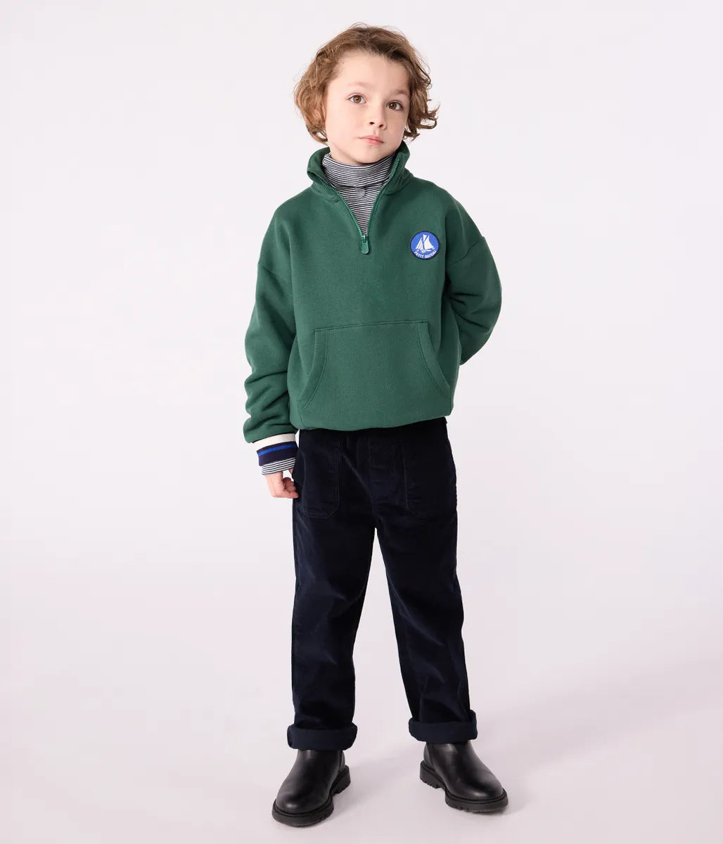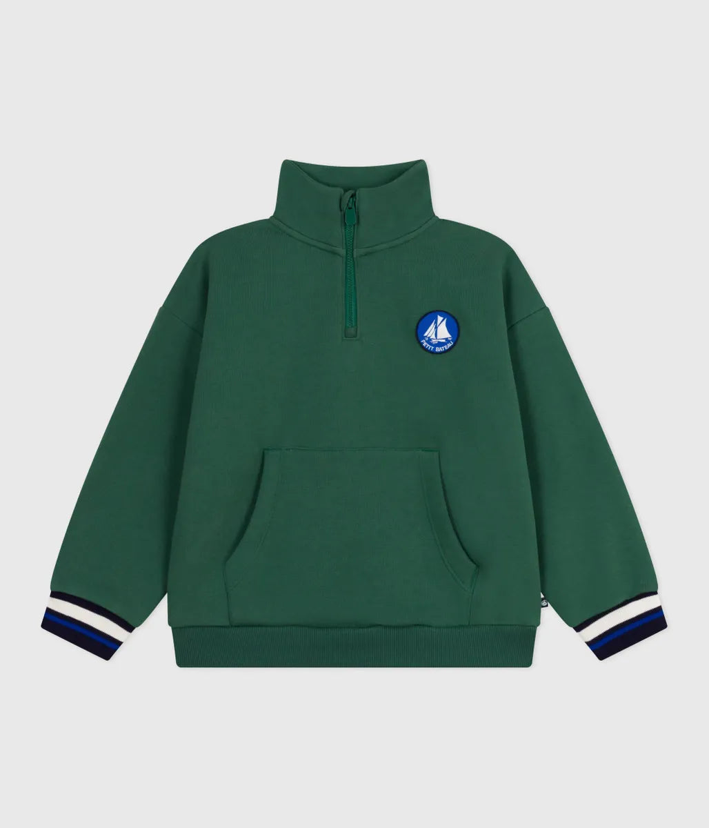 プレーンカラーに映える袖口のブルーとホワイトのラインや、ブランドロゴパッチが印象的なハーフジッププルオーバーです。スポーティーな風合いと心地よい肌触りのコットンスウェット素材、環境に優しいオーガニックコットンを使用しています。カジュアルスタイルの定番として、デニムやスウェットパンツなどと相性がいい人気アイテムです。