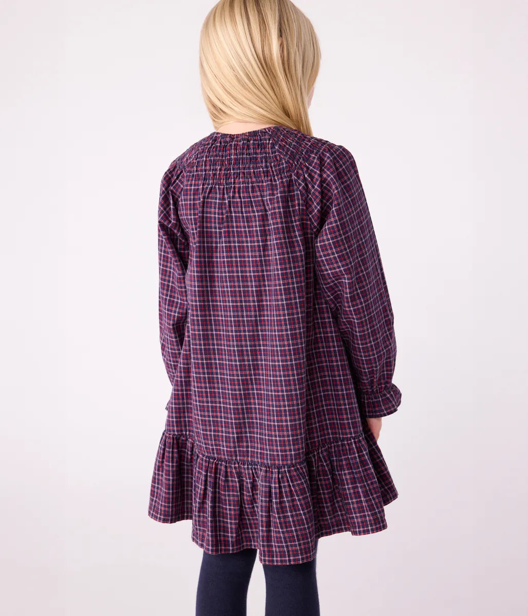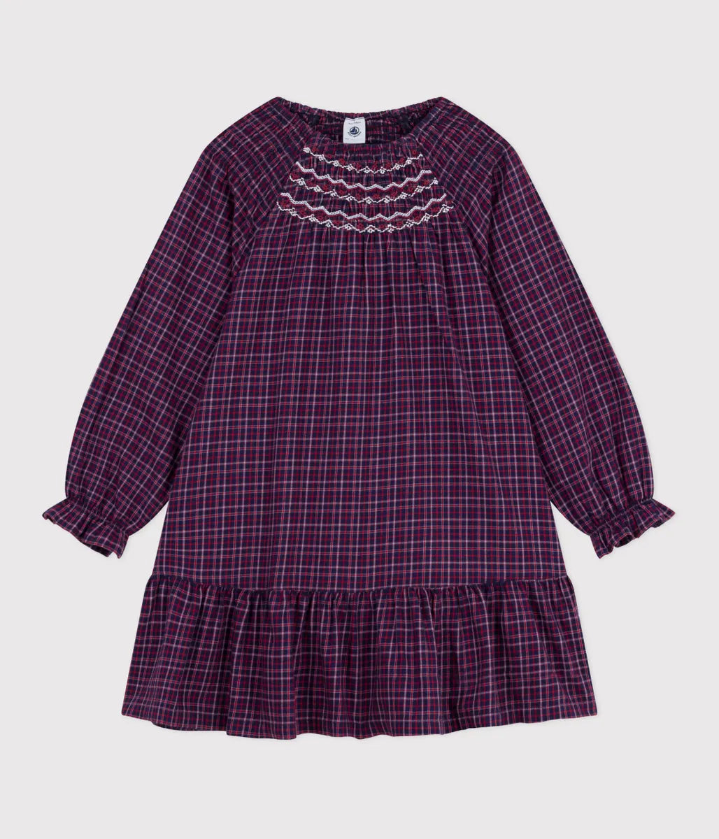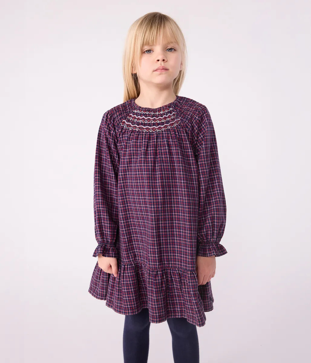 胸元にあしらわれたノルディック柄調のギャザーが目を引くチェック柄長袖ワンピースです。環境にやさしい、なめらかな肌触りのサージ織素材を使用した快適な着心地に定評があります。シルエットに変化を付ける切り替えがデザインのアクセントに。肩まわりの動きが楽なラグランスリーブを採用しているのも特徴。デイリースタイルからおしゃれをしてのお出かけまで、幅広く対応する注目のアイテムです。