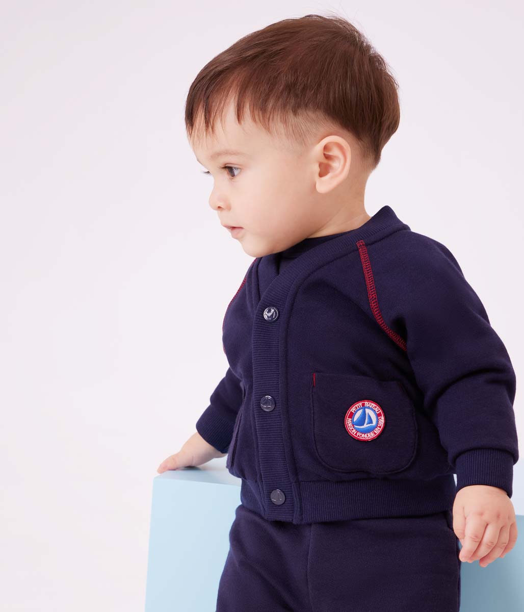 肩まわりの動きが楽な、ラグランスリーブを採用したカーディガンです。環境にやさしく、スポーティーな風合いと快適な着心地を兼ね備えたコットンスウェット素材を使用しています。ネイビーに映えるロゴワッペンがや襟裏などにあしらわれたミラレボーダーがデザインのポイント。デイリーユースで着回せる、頼れる一枚です。