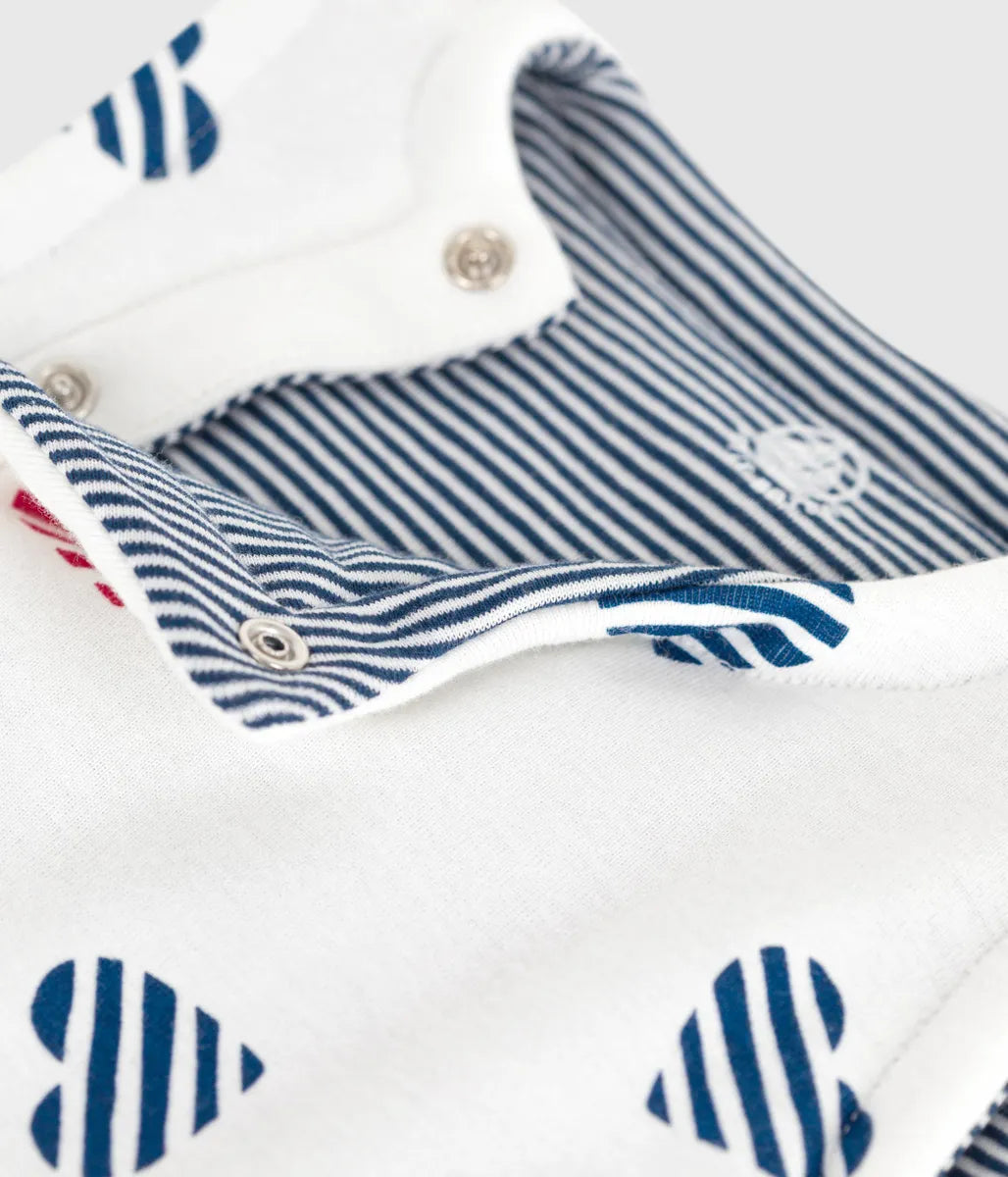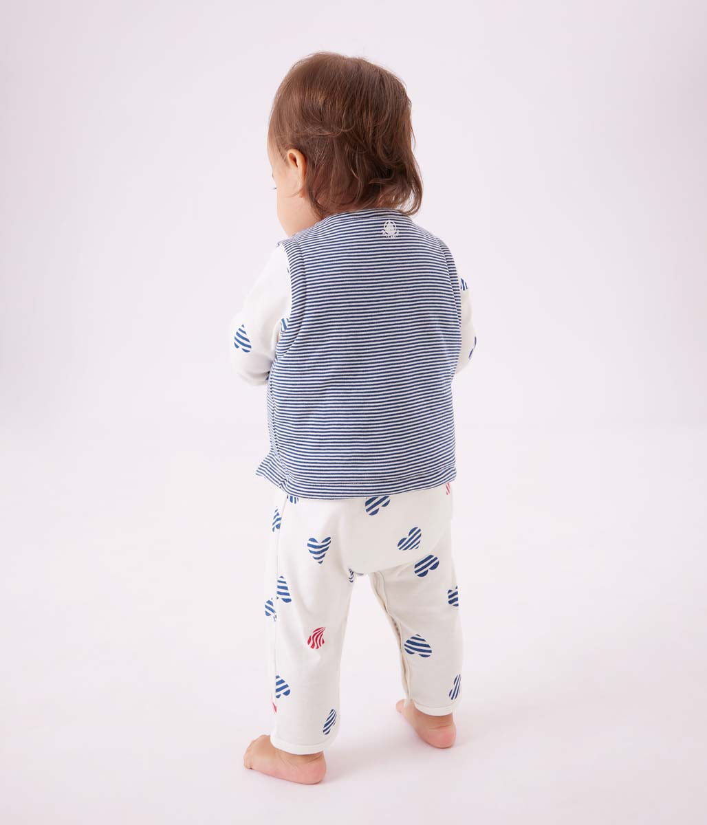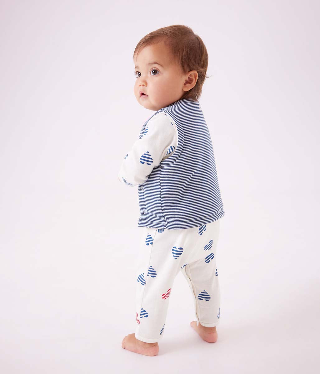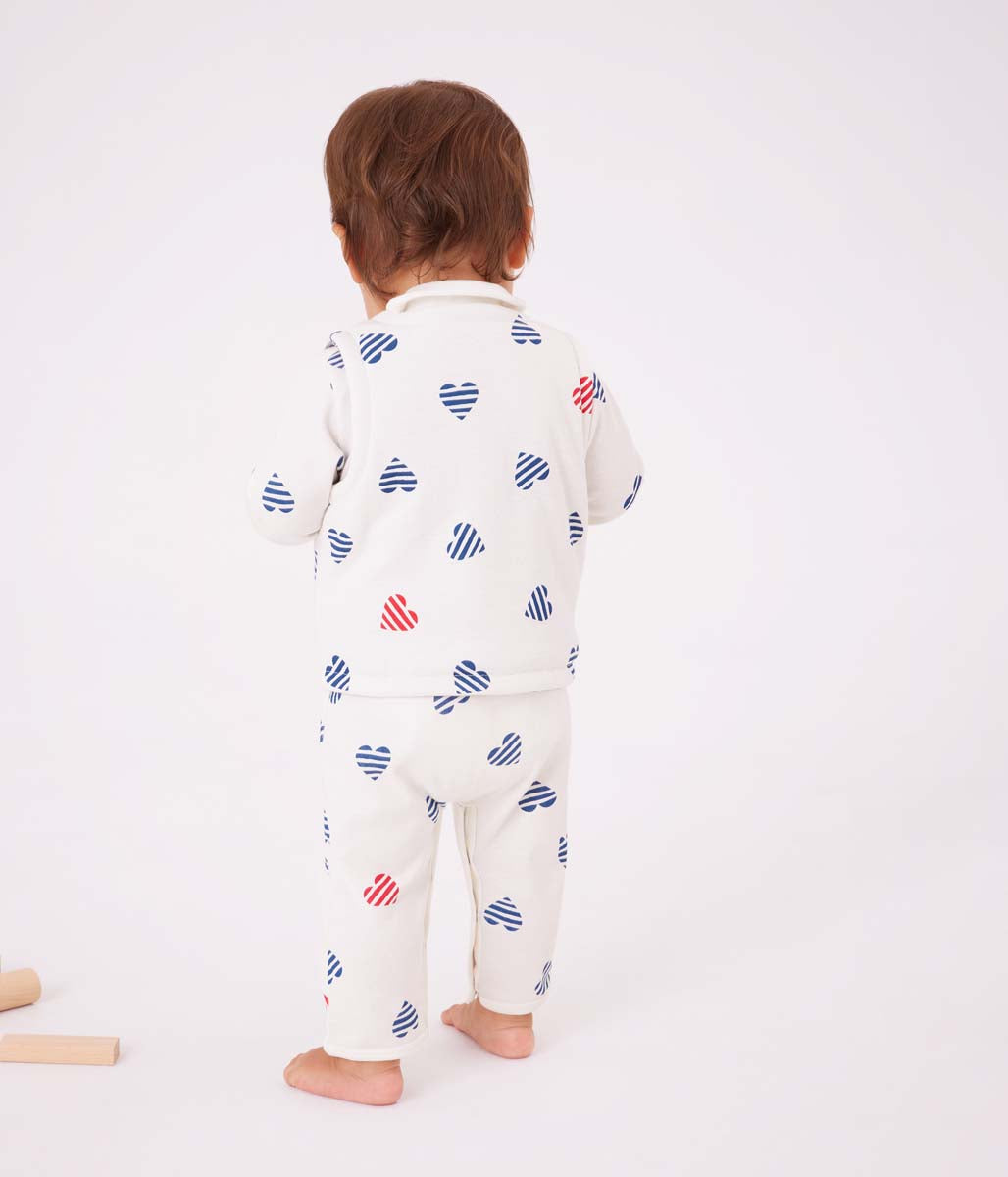 ハートプリントをあしらった合わせタイプのベストです。裏地にあしらったアイコニックなミラレボーダがデザインのアクセント。リバーシブルで着用いただけます。一枚あるととても便利で自家用はもちろん、ギフトにも喜ばれるアイテムです。