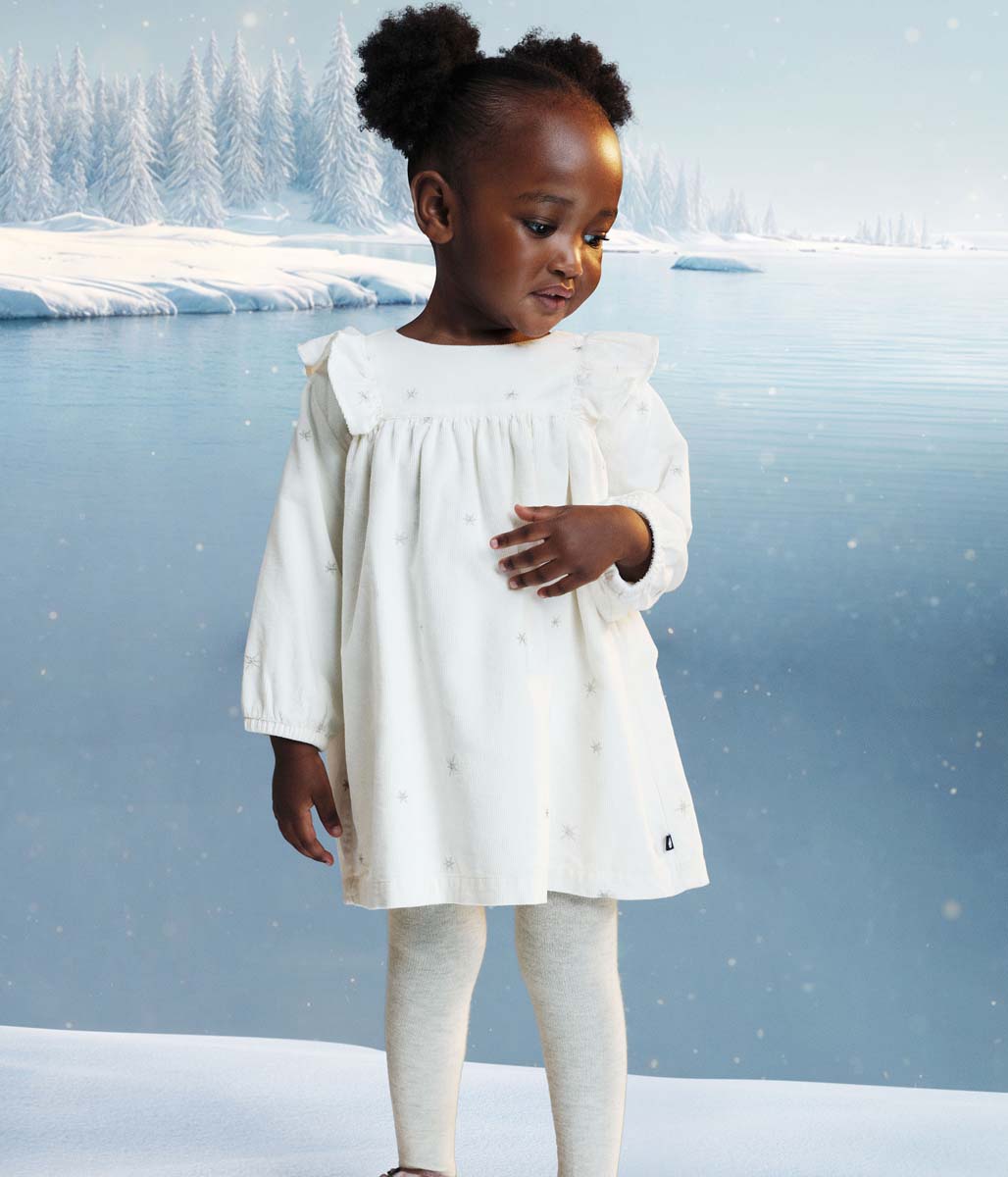 きらめく星とフリルがとってもキュート!特別感あふれるコーデュロイワンピース