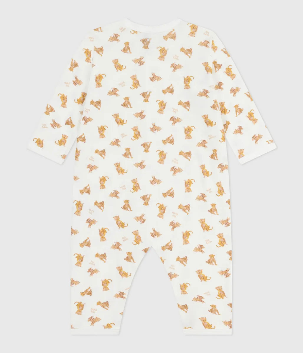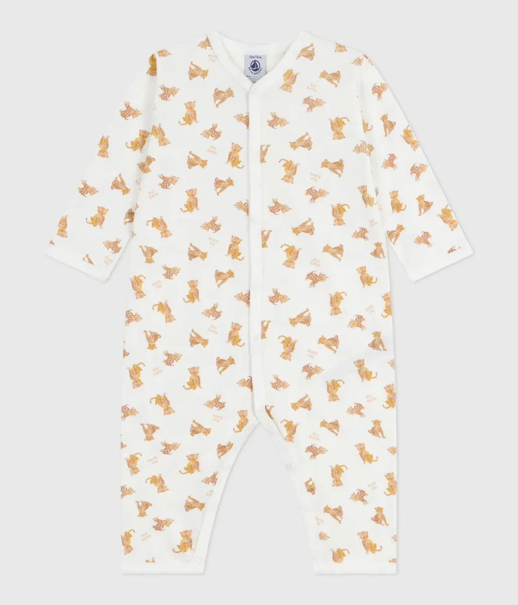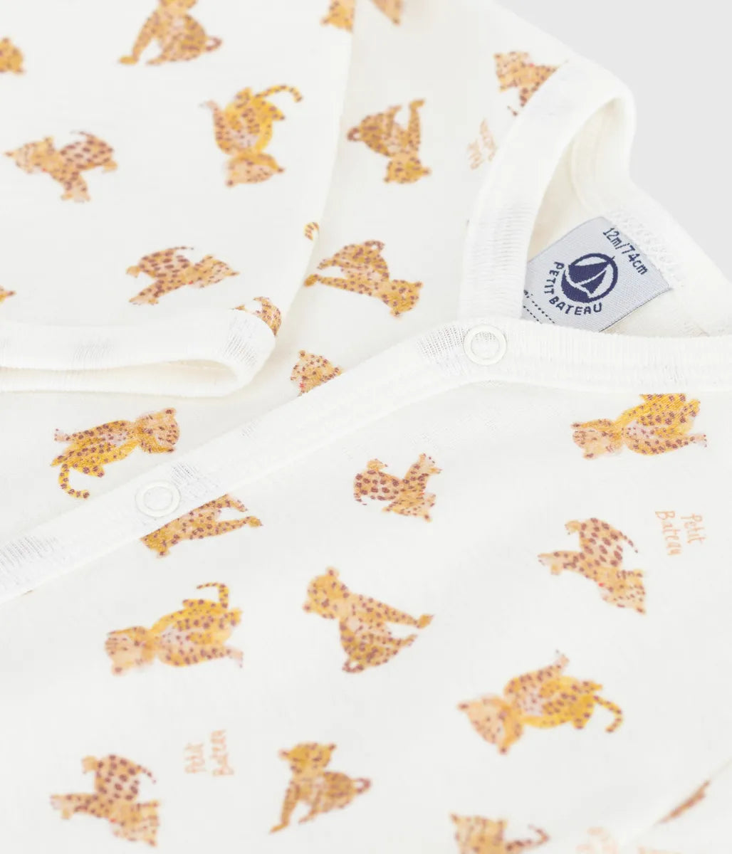キュートなパンサープリントの足なしロンパースです。環境にやさしく、第二の肌と呼ばれるほど心地よい肌触りの1x1リブ編みコットンを使用し、快適かつナチュラルな着心地を実現。前面が大きく開くので脱ぎ着が楽なうえ何枚あっても嬉しいアイテムは、ご自宅用としてはもちろん、出産祝いなどのギフトにも大変喜ばれます。