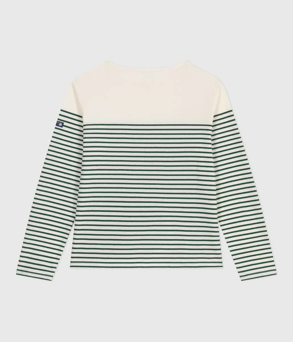 ブランドを代表するアイコニックなマリニエールボーダーの長袖プルオーバーです。環境に優しいオーガニックコットン素材を使用した、ナチュラルな着心地に定評があります。左袖にあしらわれたブランドロゴタグがデザインにアクセントをプラス。ご自宅用としてはもちろん、憧れのフレンチマリンルックが叶う一着は、親子で合わせたコーディネイトにもおすすめです。