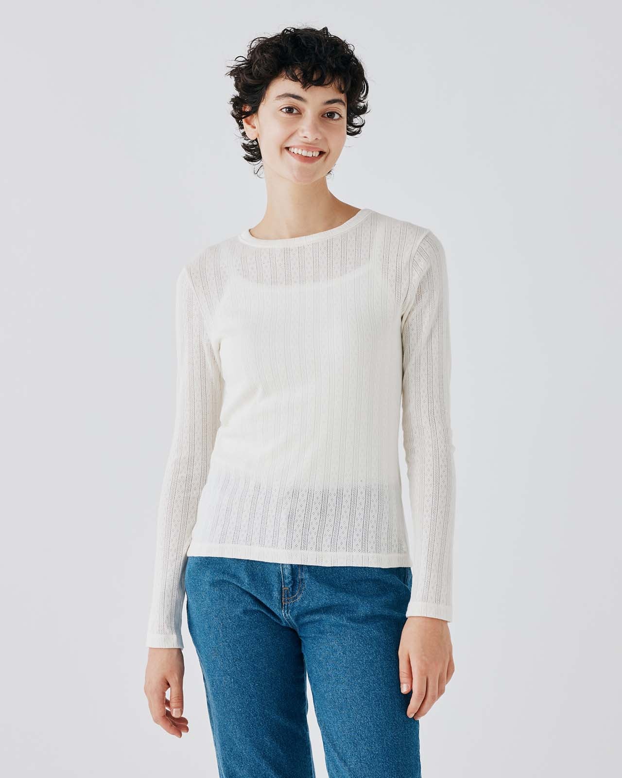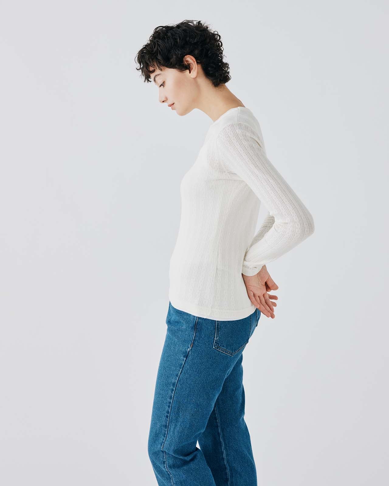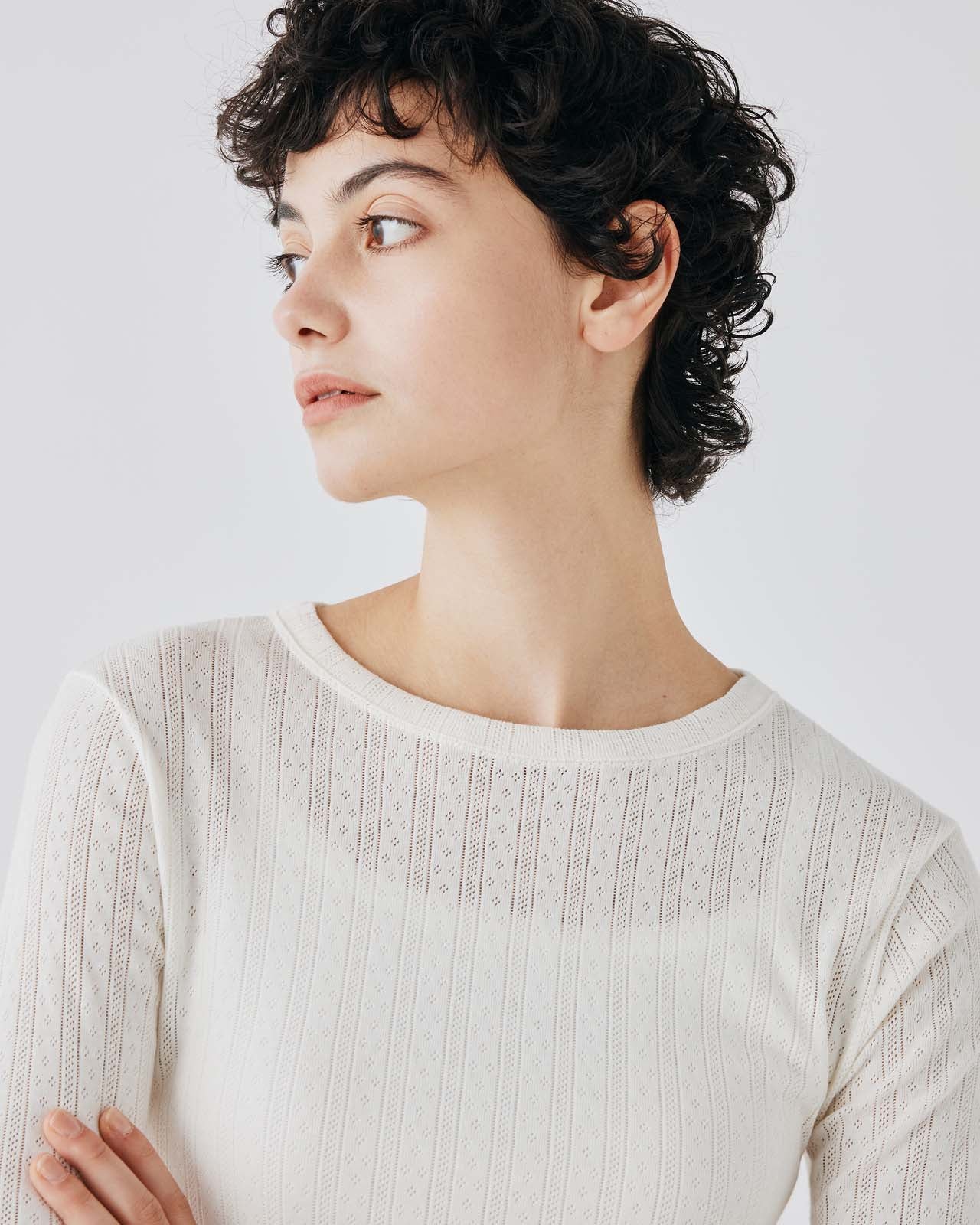 立体感のある格子状の編地が特徴のサーマル素材を使用 環境に配慮したオーガニックコットンを使用