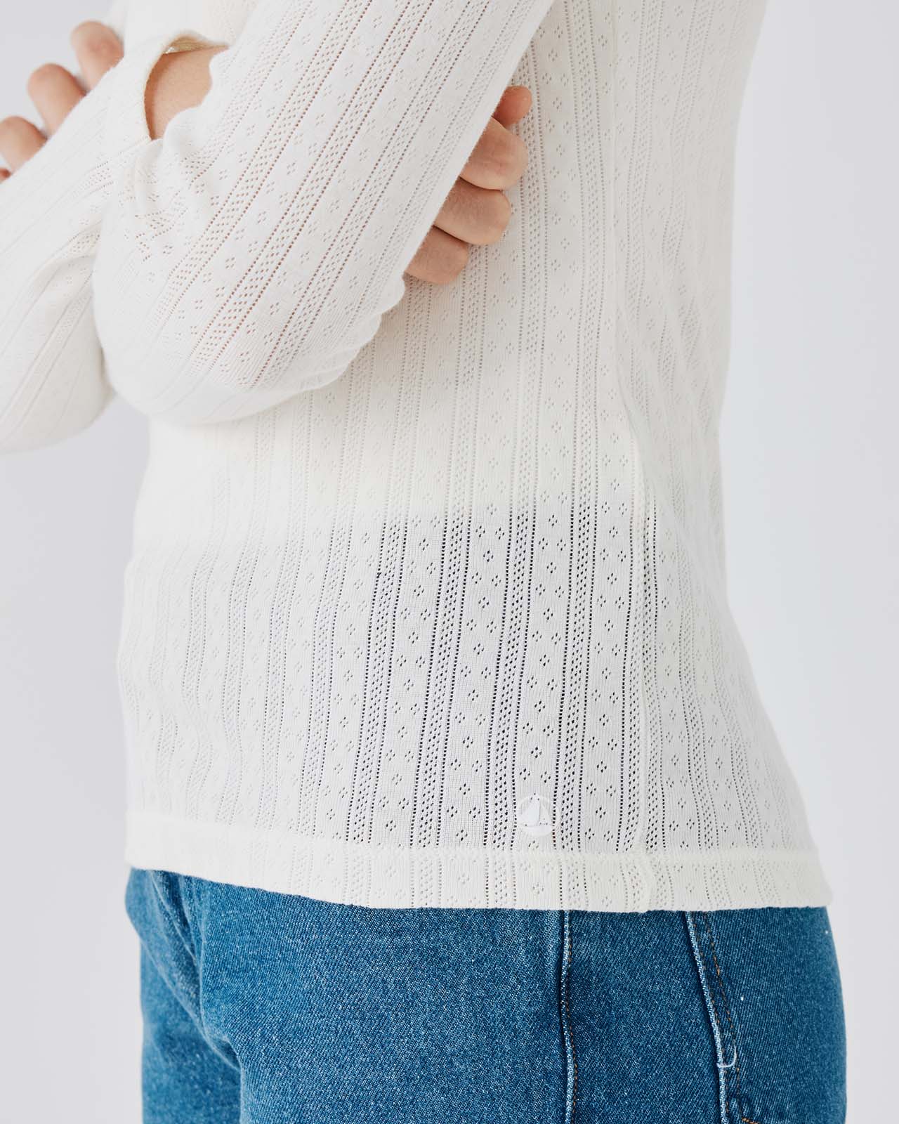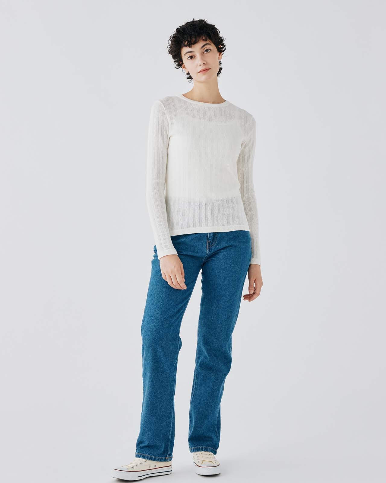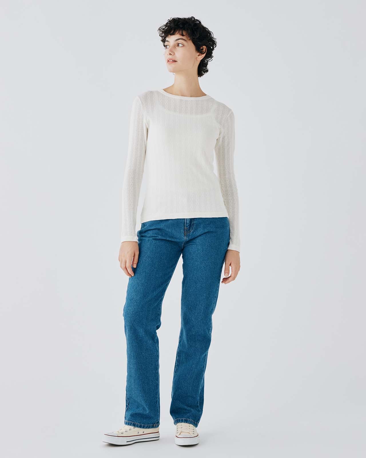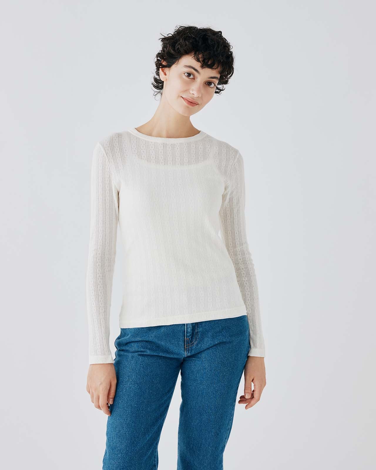 立体感のある格子状の編地が特徴のサーマル素材を使用 環境に配慮したオーガニックコットンを使用