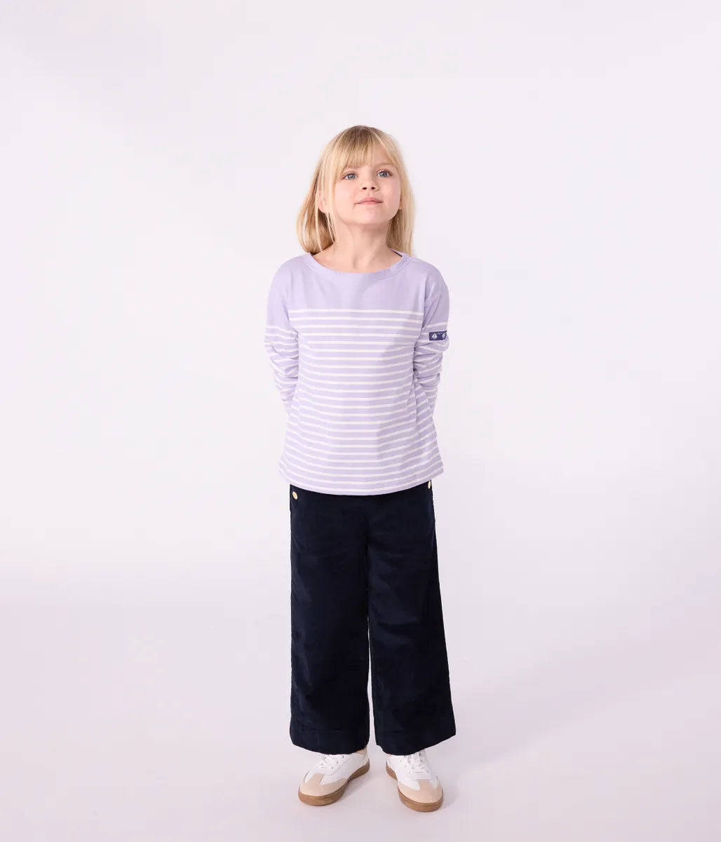 ブランドを代表するアイコニックなマリニエールボーダーの長袖プルオーバーです。環境に優しいオーガニックコットン素材を使用した、ナチュラルな着心地に定評があります。左袖にあしらわれたブランドロゴタグがデザインにアクセントをプラス。ご自宅用としてはもちろん、憧れのフレンチマリンルックが叶う一着は、親子で合わせたコーディネイトにもおすすめです。ブルーとライトパープルの2色展開。