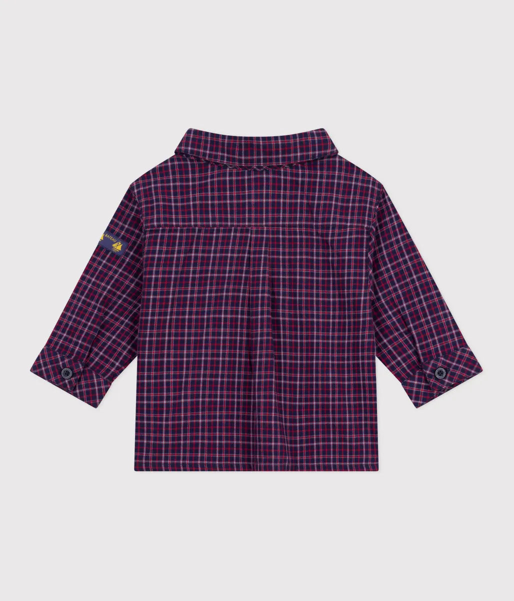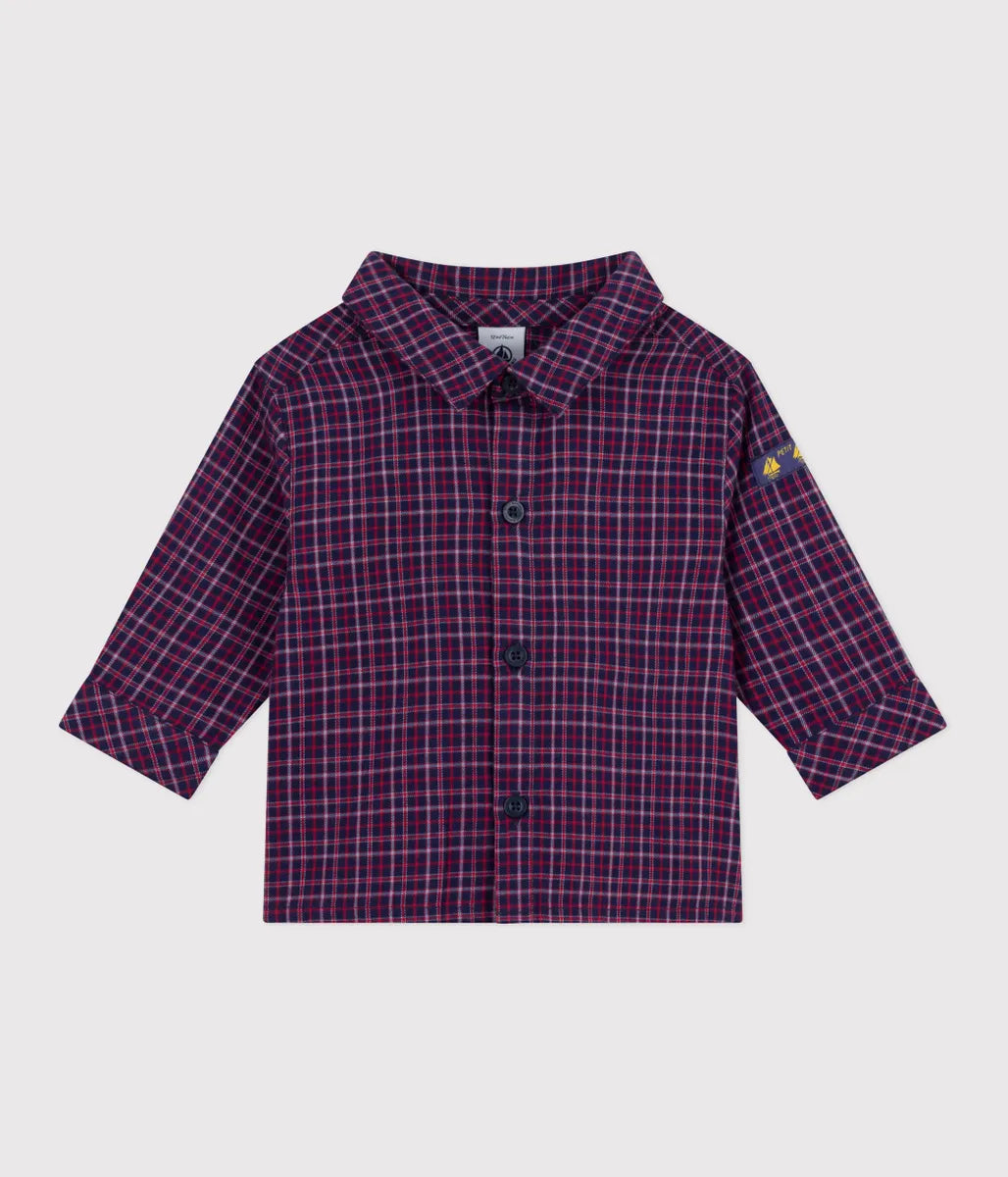 プレッピーな着こなしも楽しめるチェック柄シャツです。環境にやさしく、滑らかで丈夫なサージ素材を使用しているので、元気なベビーも安心して着用できます。オーセンティックでシックなデザインはデイリーウェアとしても、お出掛け着としても活躍すること間違いなし。
