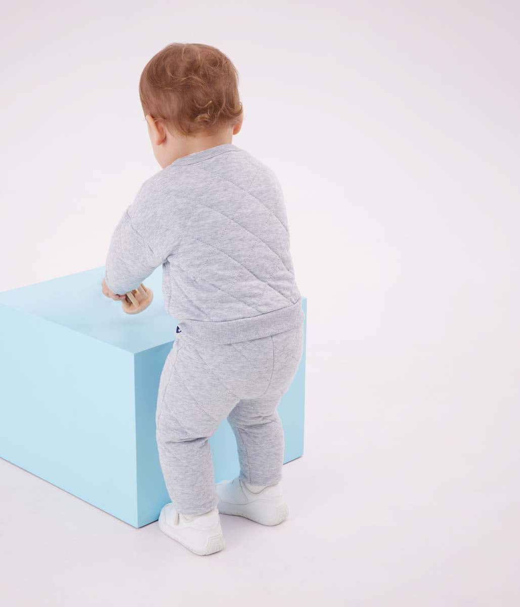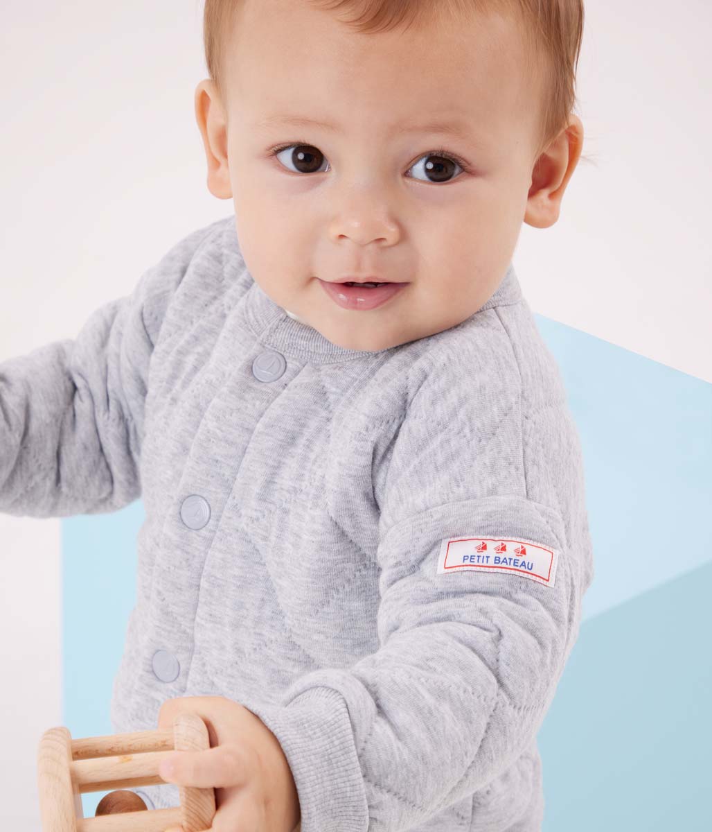 合わせやすい霜降りグレーのカーディガンです。2枚の生地を編み上げたやわらかな手触りが特徴のチュビックキルティング素材を使用した快適な着心地が人気。ダイヤ型のキルティングがデザインのポイント。デイリーユースで着回せる頼れるアイテムです。