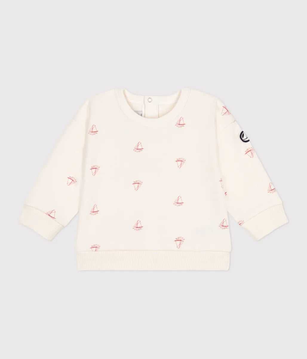 ブランドロゴでもあるヨットプリントをあしらった長袖スウェットプルオーバーです。スポーティーな風合いと心地よい肌触りのコットンスウェット素材、環境に優しいオーガニックコットンを使用しています。カジュアルスタイルの定番として、デニムやパンツなどと相性がいい人気アイテムです。