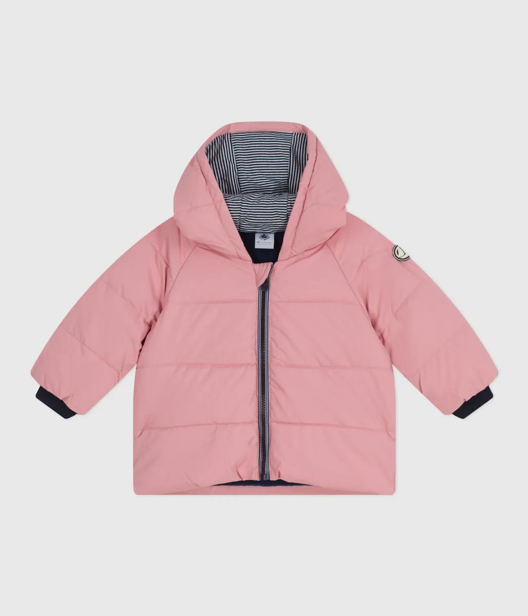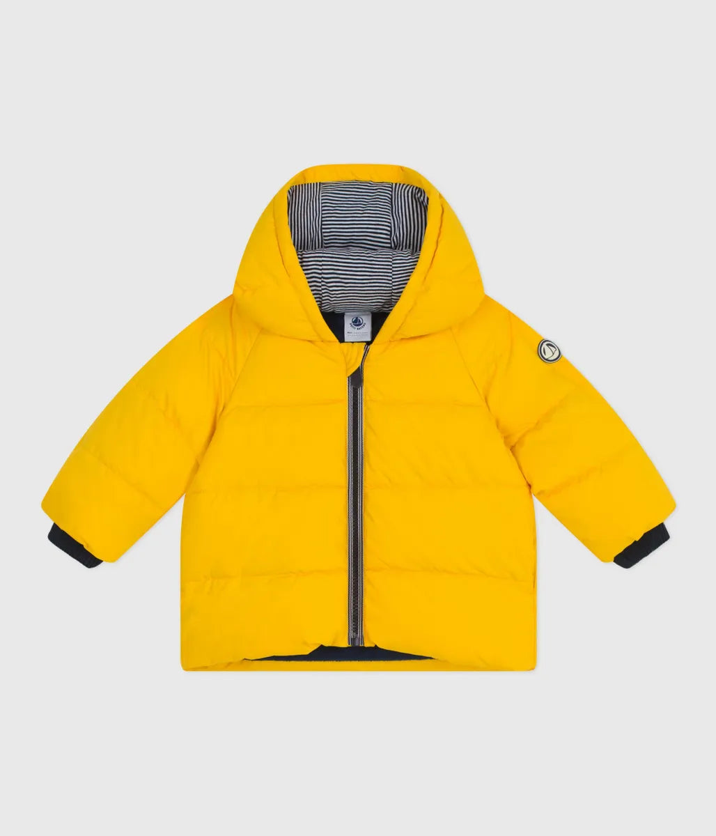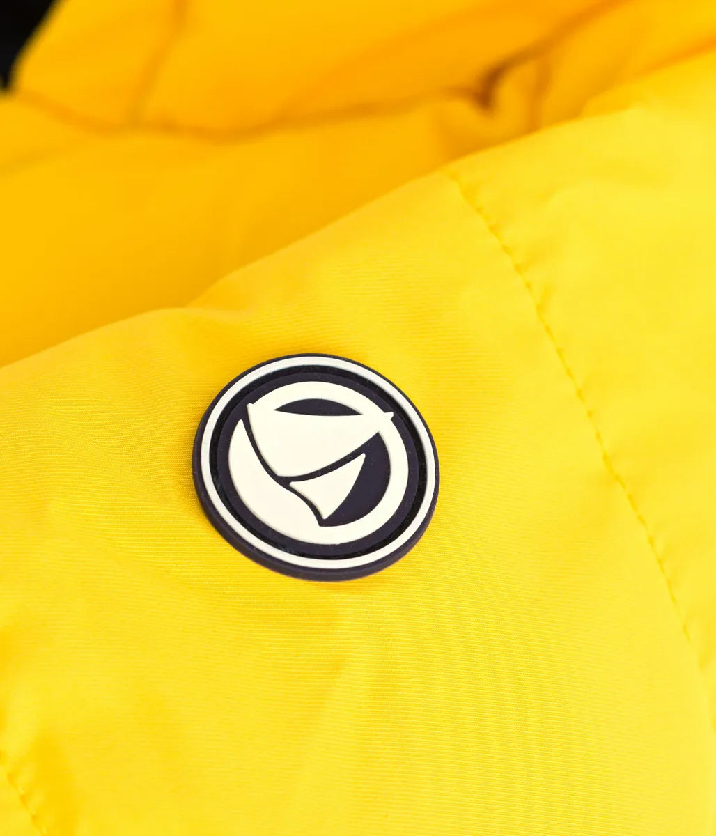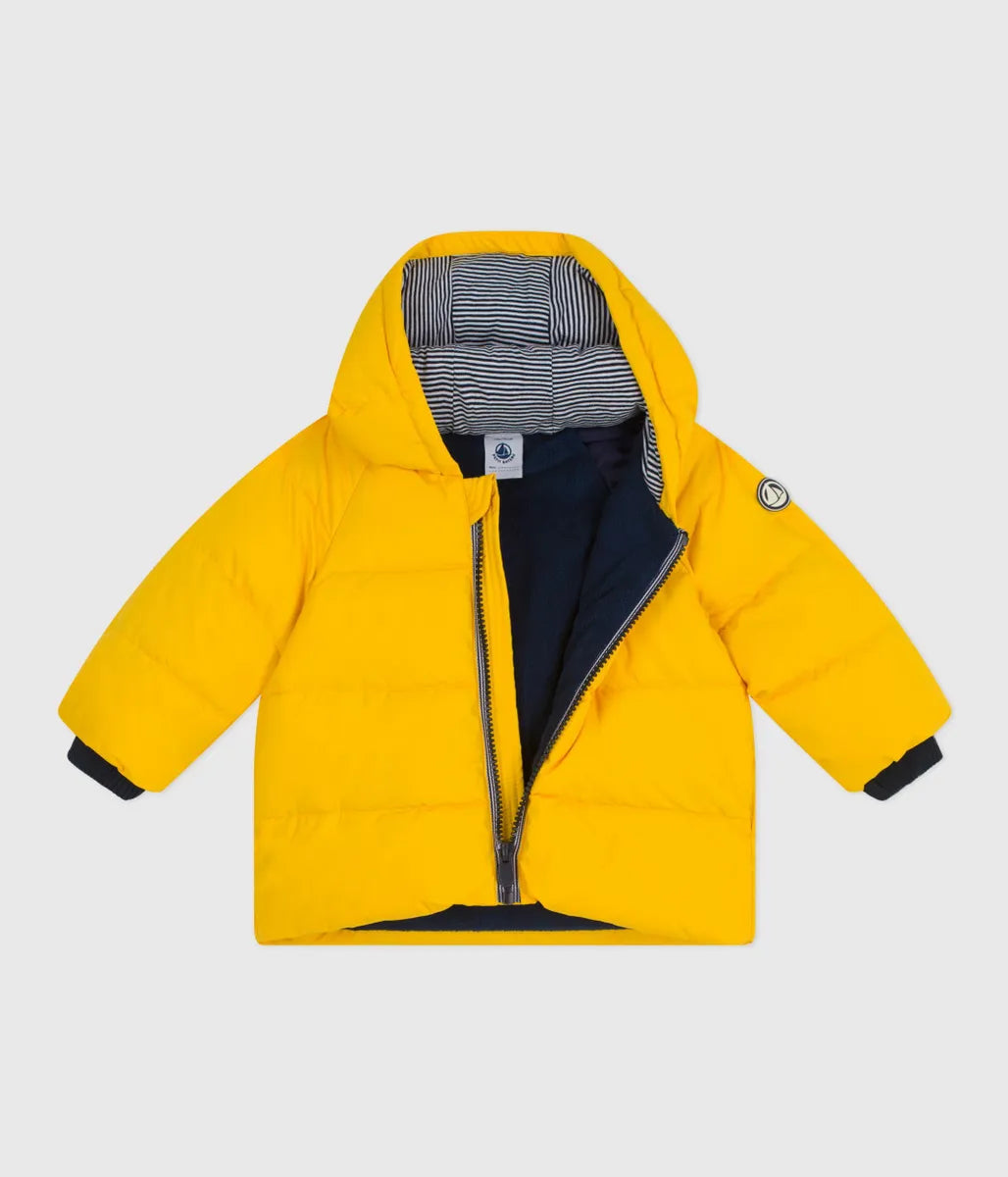 あたたかな中綿をたっぷりと充填したフード付きジャケットです。環境にやさしく、軽量で型崩れしにくいポリエステル素材を使用しているので、デイリーでの着用が可能。フード裏と前立てにあしらわれたアイコニックな極細ミラレボーダーと左袖のシリコン性ロゴパッチがデザインにアクセントをプラスしています。きょうだいで合わせたコーデも楽しめる、これからのシーズンに活躍間違いなしのおすすめアイテムです。イエロー、グリーン、ネイビー、ピンクの4色展開。