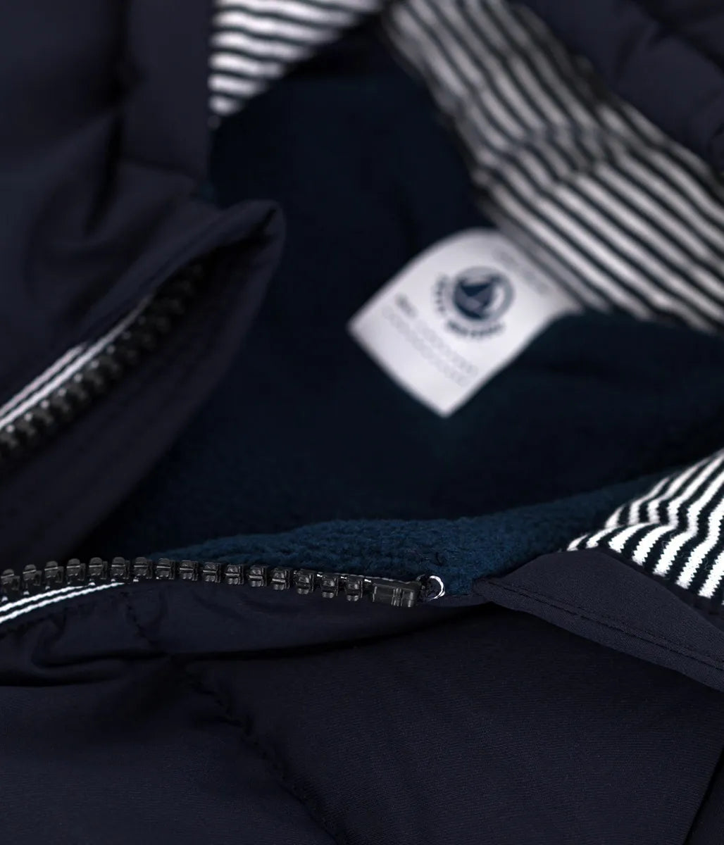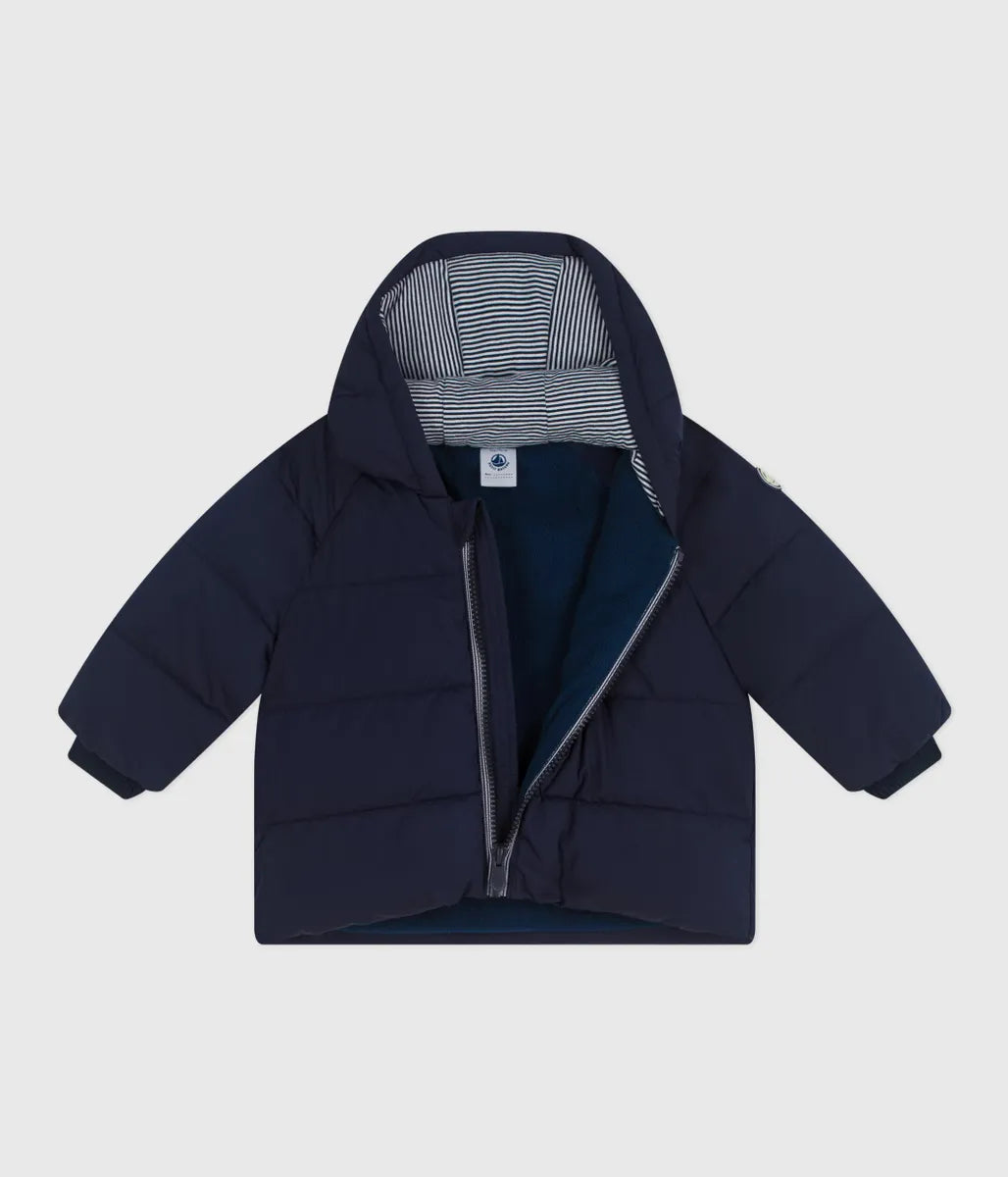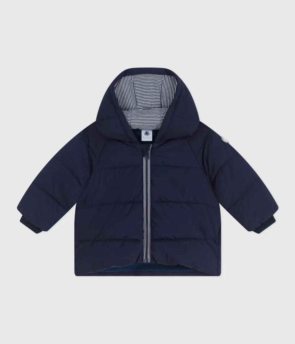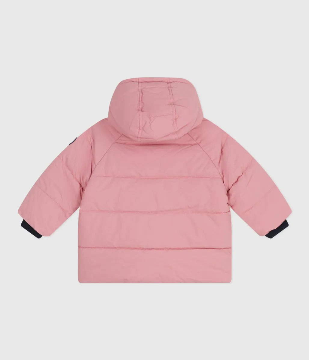 あたたかな中綿をたっぷりと充填したフード付きジャケットです。環境にやさしく、軽量で型崩れしにくいポリエステル素材を使用しているので、デイリーでの着用が可能。フード裏と前立てにあしらわれたアイコニックな極細ミラレボーダーと左袖のシリコン性ロゴパッチがデザインにアクセントをプラスしています。きょうだいで合わせたコーデも楽しめる、これからのシーズンに活躍間違いなしのおすすめアイテムです。イエロー、グリーン、ネイビー、ピンクの4色展開。