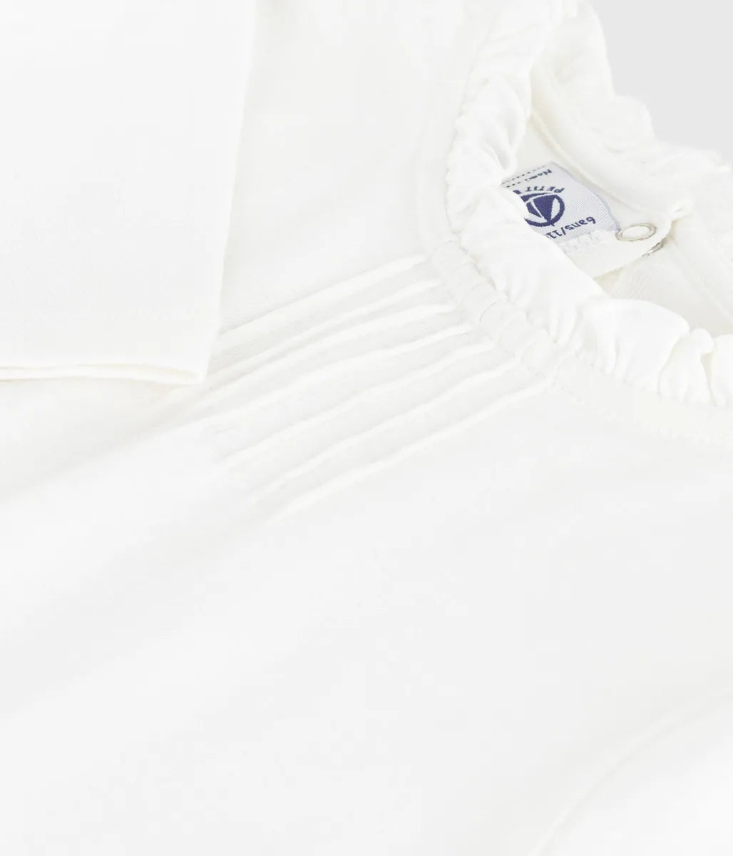 胸元の7本ラインがアクセントになった長袖Tシャツです。環境にやさしい、第二の肌と呼ばれるほどやわらかな1x1リブ編みコットン素材を使用しやわらかな着心地を実現しています。甘さのあるフリル衿がデザインのポイント。デニムからスカートまで幅広いスタイルを楽しめる注目アイテムです。ピンク、ホワイト、レッドの3色展開。