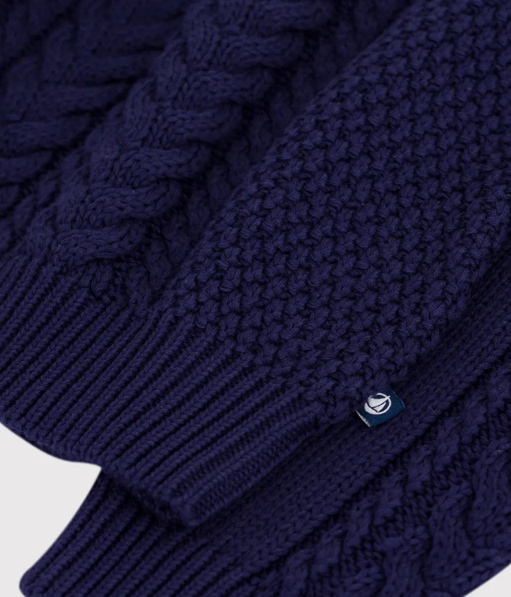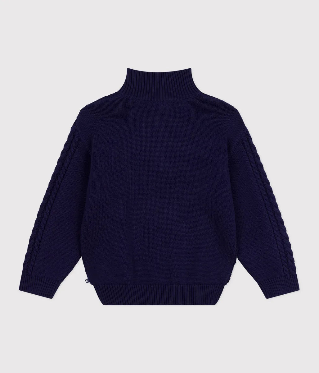 プレーンカラー、ブランドロゴタグ、ジップアップ、ケーブル編み