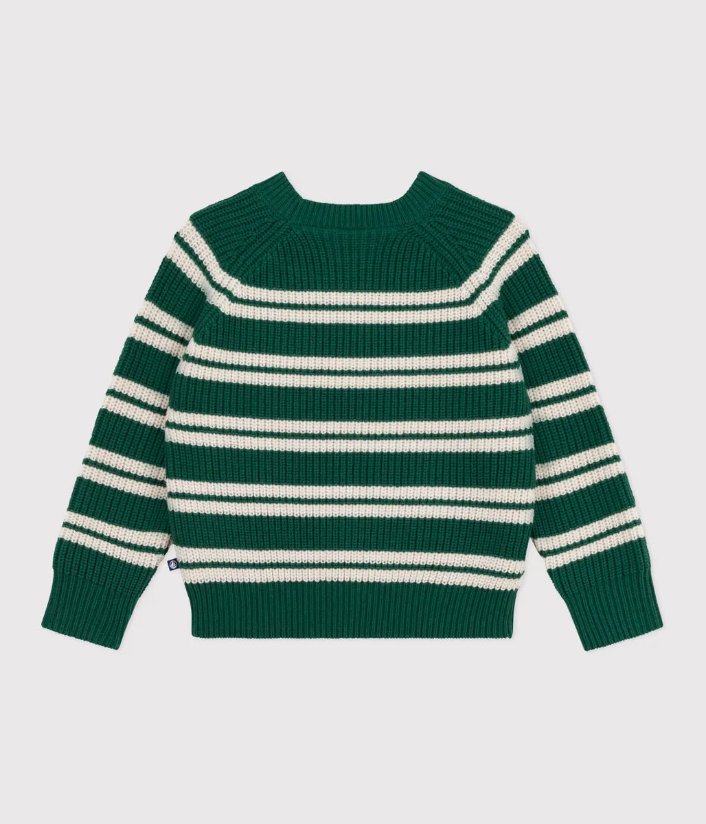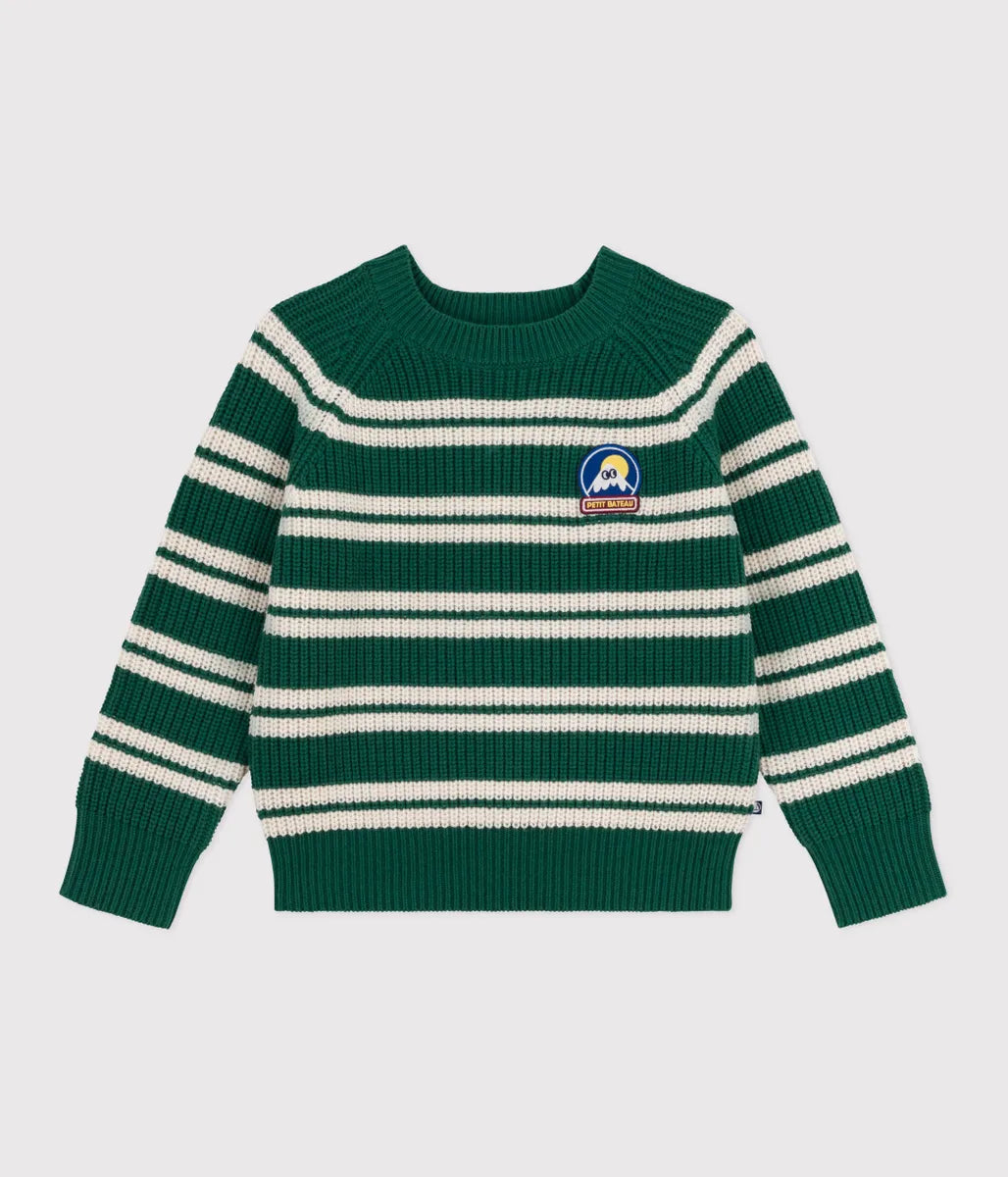 ダブルラインのボーダー柄が、モダンな雰囲気を演出するニットプルオーバーです。環境や動物にやさしいウール混素材を使用した、あたたかみのある肌触りと着心地に定評があります。胸のロゴワッペンがデザインのキュートなアクセントに。外出が楽しみになるキュートなアイテムは、特別なギフトにもおすすめです。
