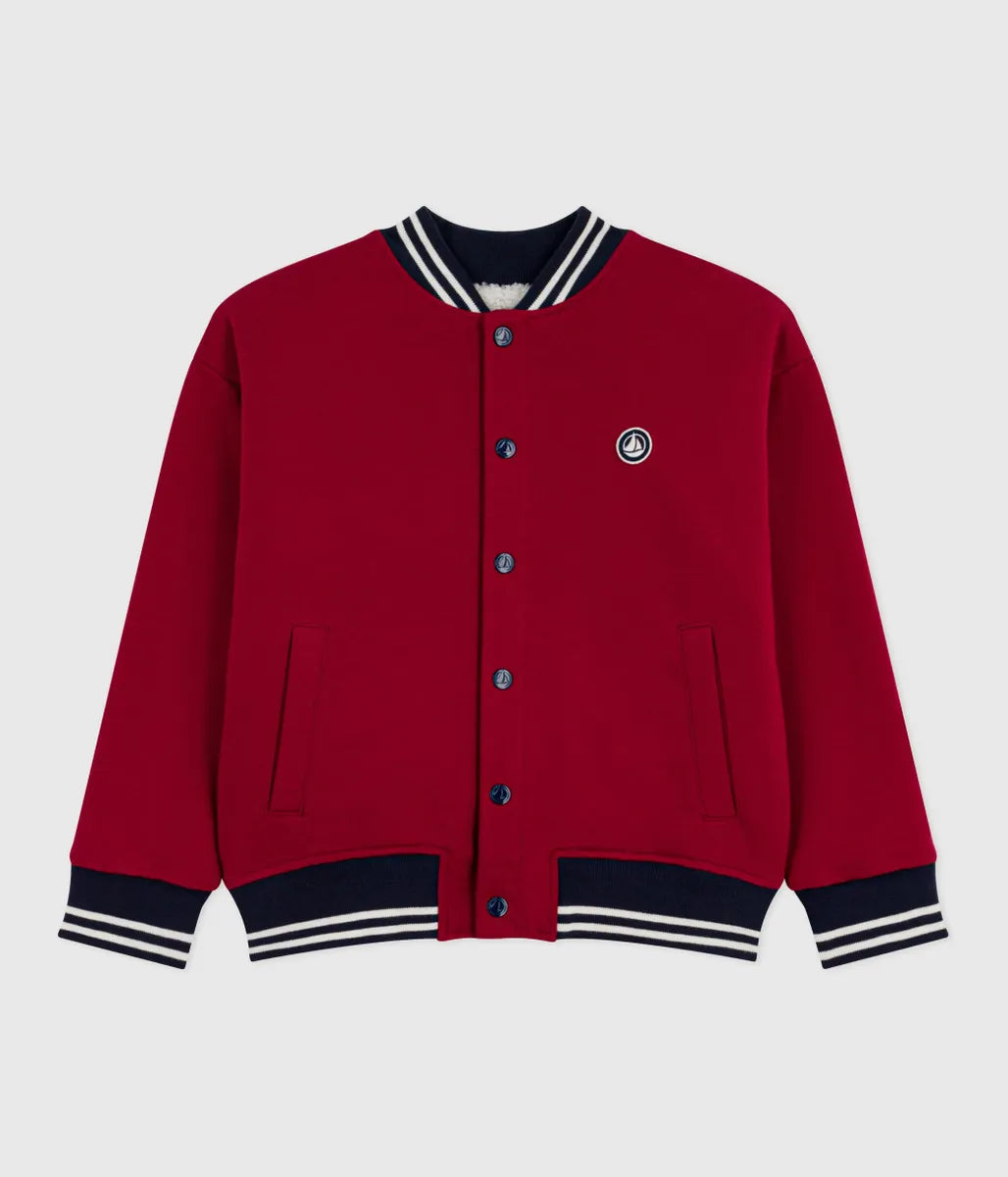 ワードローブのマストアイテムとして高い人気を誇るスウェットブルゾンです。環境に配慮し、スポーティーな風合いのコットン素材を使用。胸のブランドロゴパッチと、袖口と裾のボーダーがデザインにアクセントをプラス。ライニングにはボアをあしらい高い保温性も確保しています。アクティブに毎日着られるおすすめアイテムです。