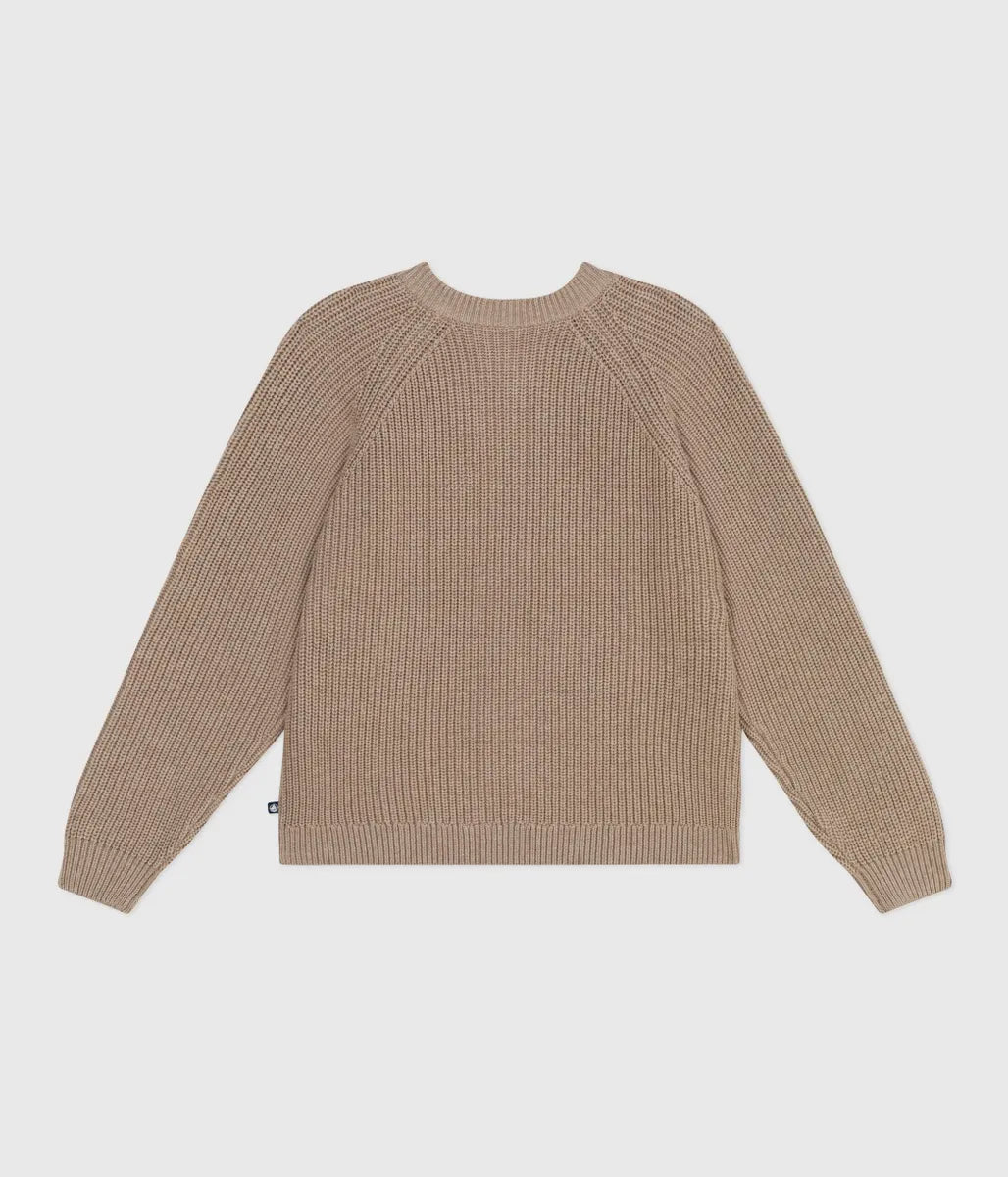 やわらかな肌触りのウールとコットンを編み上げたニット素材 環境や動物に配慮したレスポンシブルウールを使用