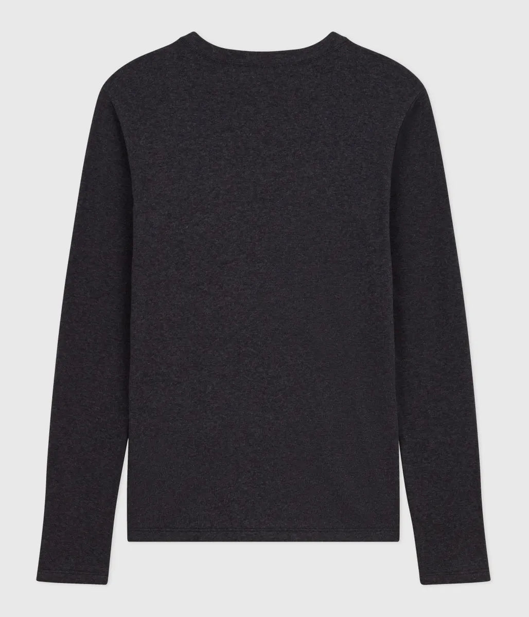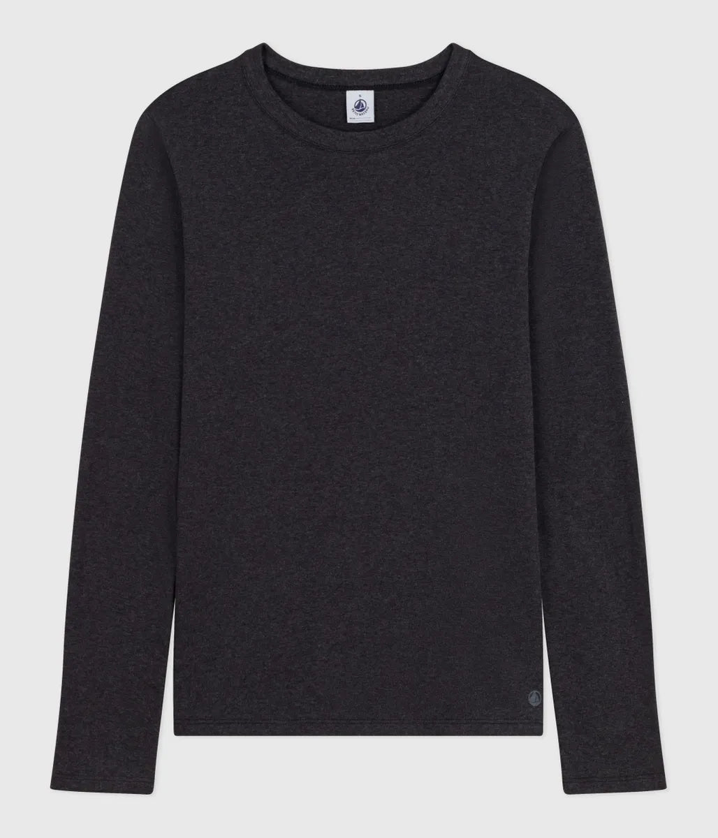 シンプルで合わせやすいプレーンカラー長袖Tシャツです。環境にやさしく、第二の肌と呼ばれるほどやわらかな1x1リブ編みコットン素材を使用し、ナチュラルで快適な着用感を実現しています。これ一枚でも、インナーとしても通年で着用可能。色違いで揃えたくなるプチバトーの定番アイテムです。