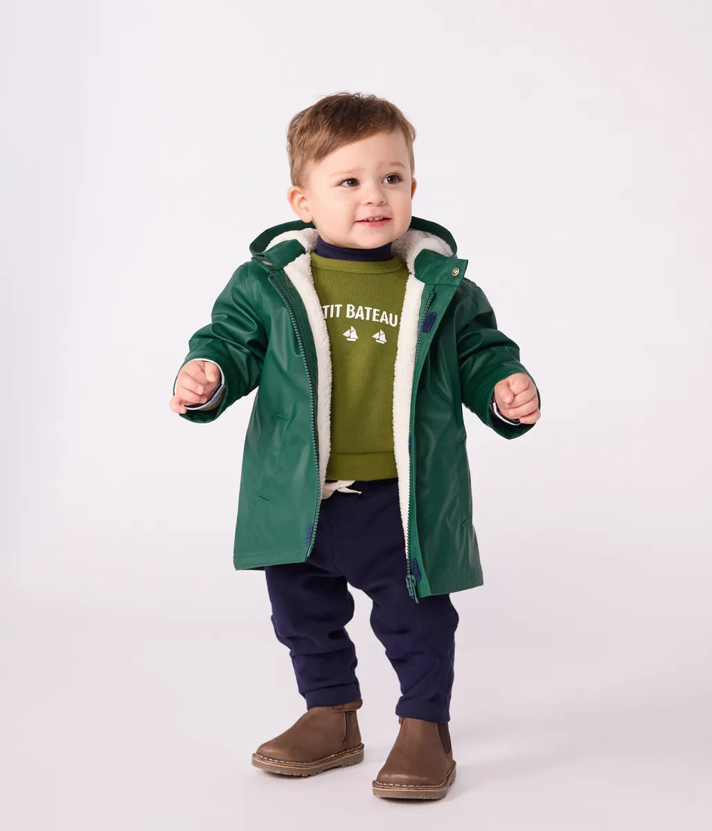 リサイクル素材を使用し環境にも配慮した、プチバトーのベーシックアイテムとして高い人気を誇るオンラインブティック限定ヨットパーカです。裏地にあしらわれたボアが温かさと、デザインのアクセントとして目を引きます。幅広いシーンで活躍し、ファミリーコーデも楽しめるおすすめのアイテムです。