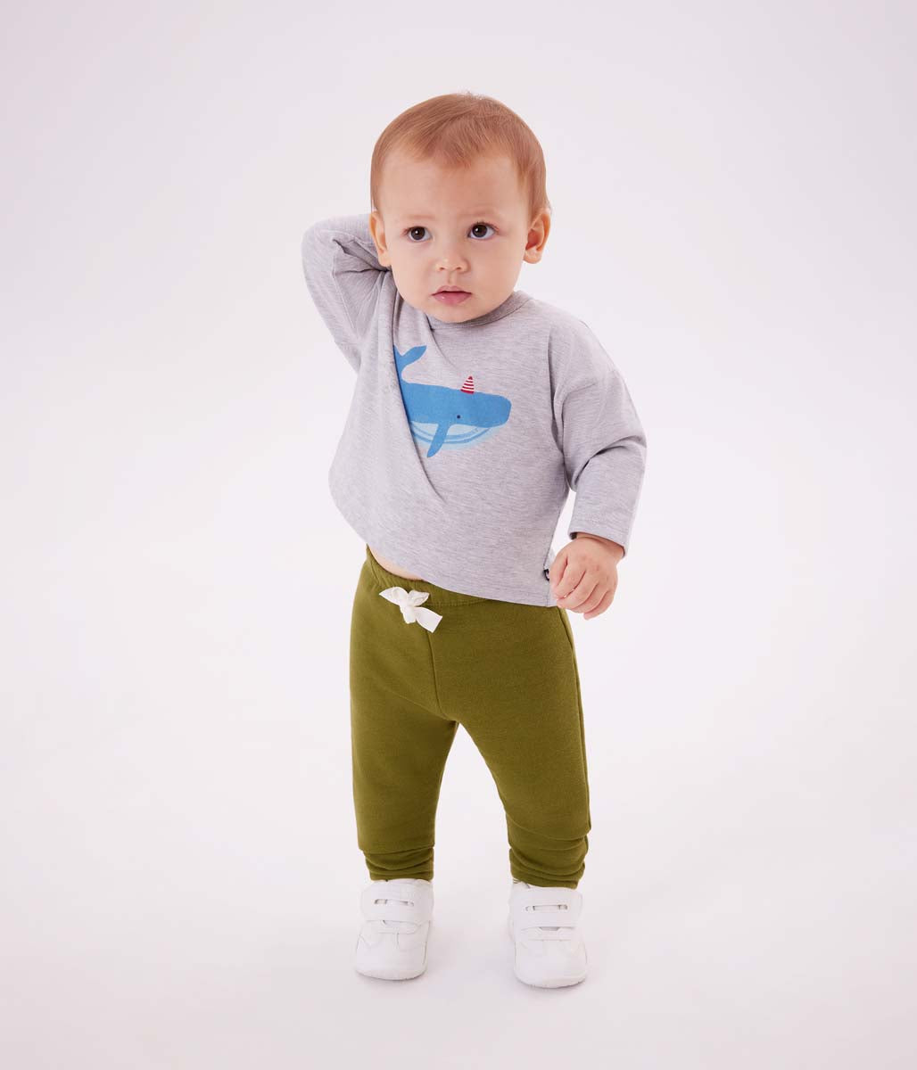 プチバトーを代表する定番アイテムのスウェットパンツです。ワンポイントのロゴタグとウエストリボンがシンプルなデザインに映えています。様々なコーディネイトにもマッチするマルチなひと品としておすすめです。