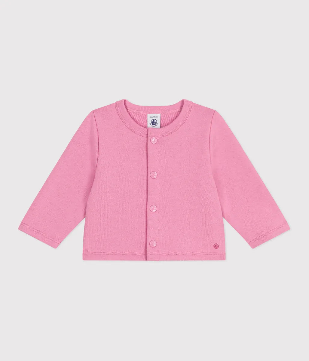 ピンクとネイビーを用意したカーディガンです。環境にやさしい、スポーティーな風合いと心地よい肌触りのコットンスウェット素材使用し快適な着心地を実現。ワンポイントのブランドロゴボタンとプリントがアクセントに効いています。脱ぎ着がしやすく動きやすいデザインは、元気なキッズたちにぴったり。肌寒い時の羽織としてなど通年で活躍するおすすめのアイテムです。