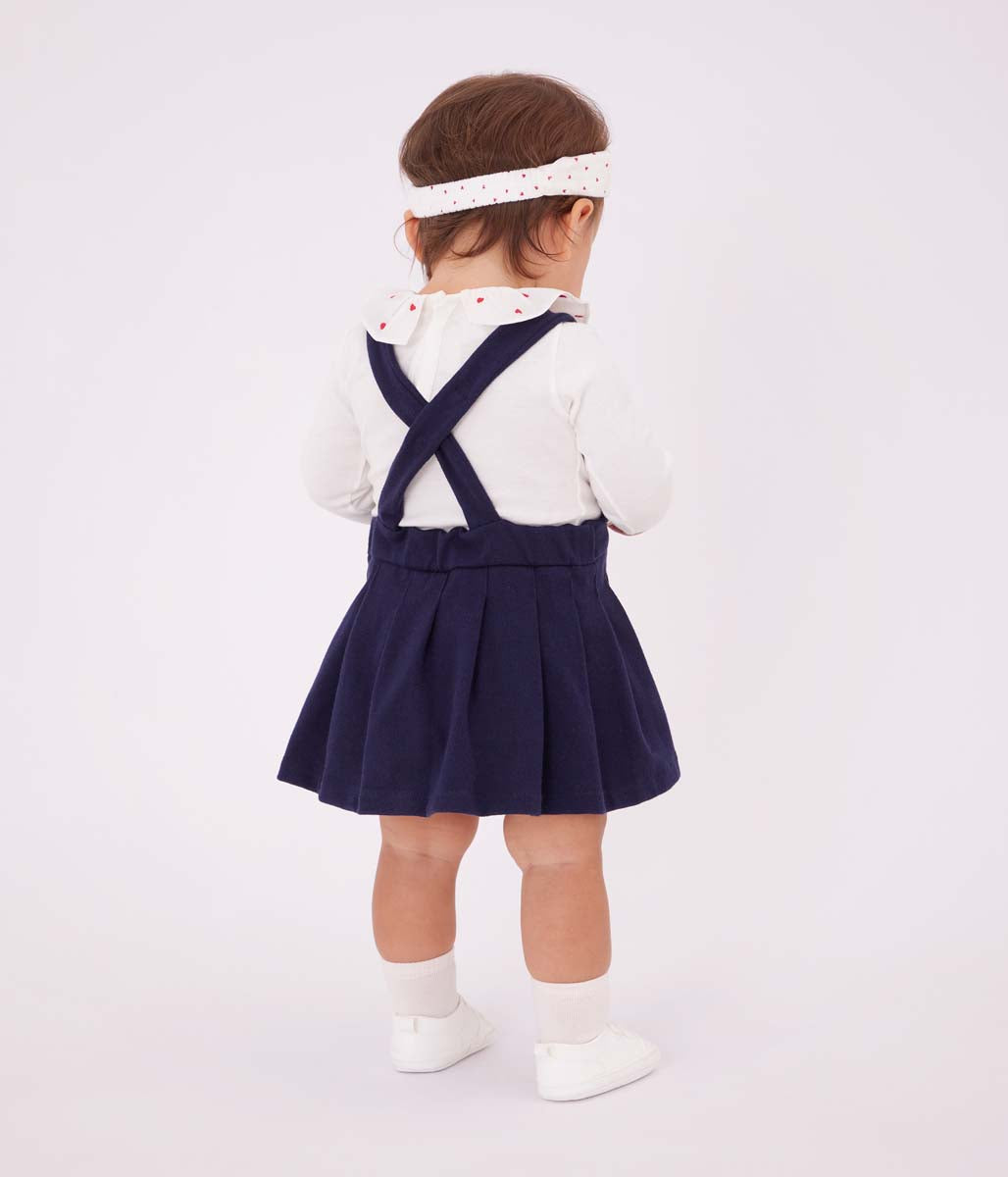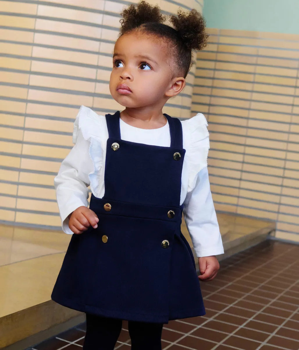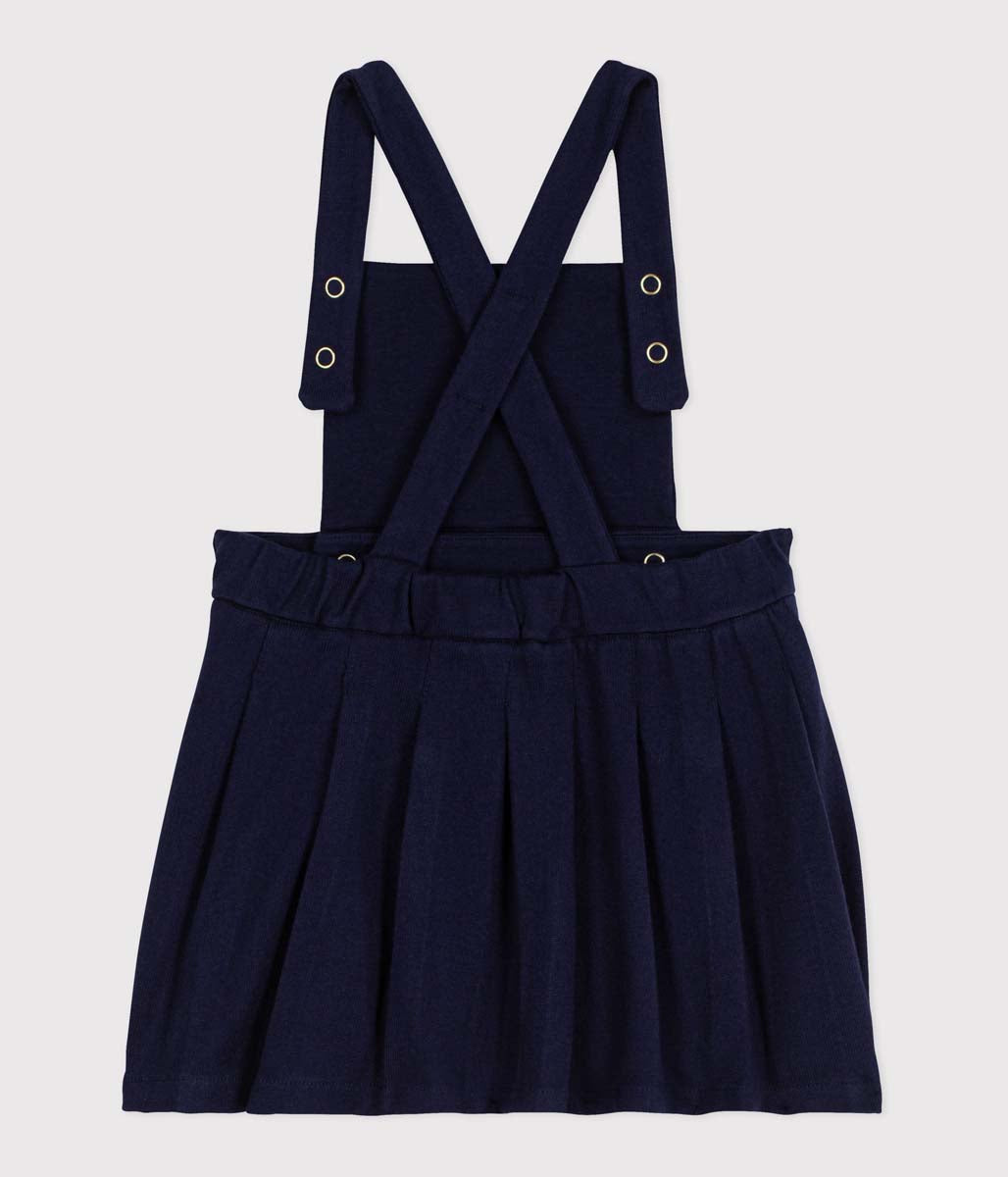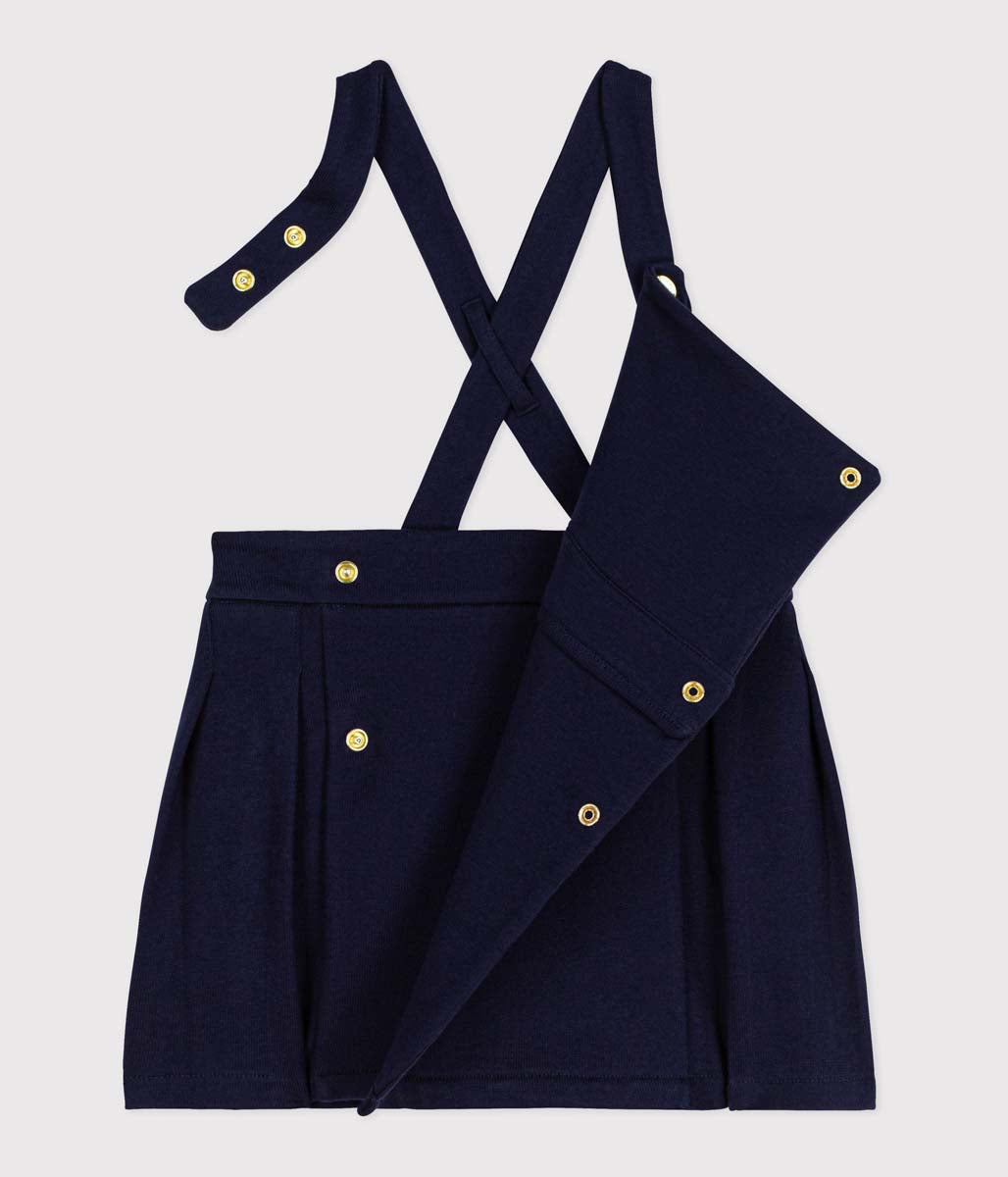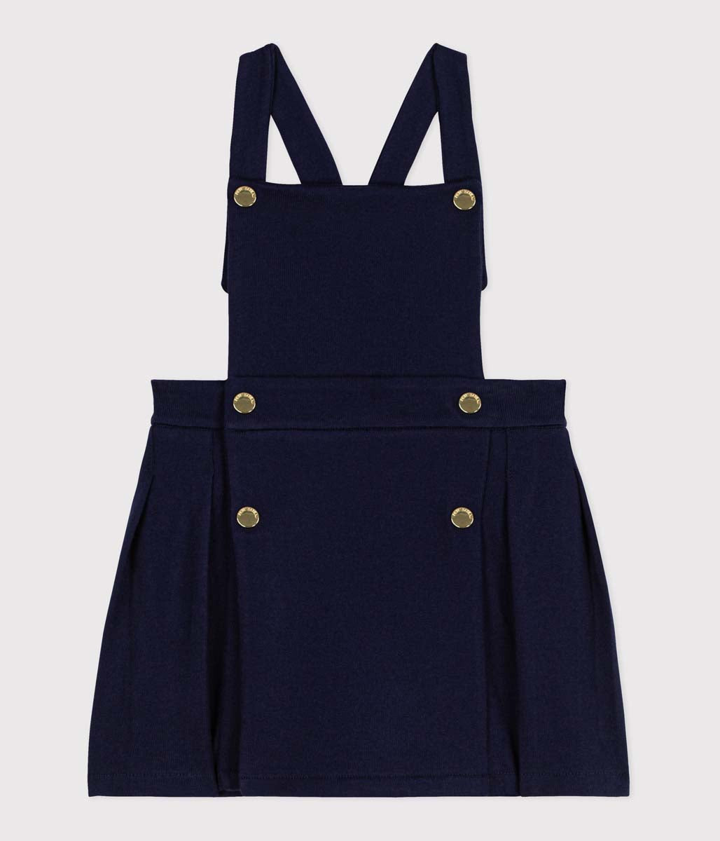 ネイビーにゴールドのボタンが一際煌めく、オーセンティックなジャンパースカートです。環境に配慮し、適度な張りのあるしっかりとした平編み素材を使用し、エレガントな佇まいと快適な着心地を実現。お出かけから、きちんとした場まで幅広いシーンに対応する注目のひと品です。