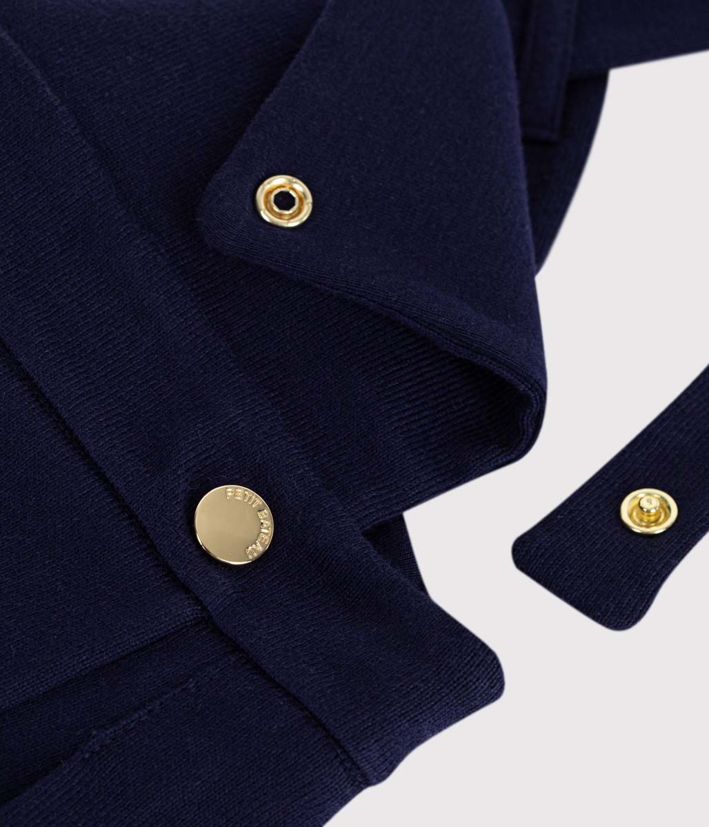 ネイビー、ゴールドボタン
