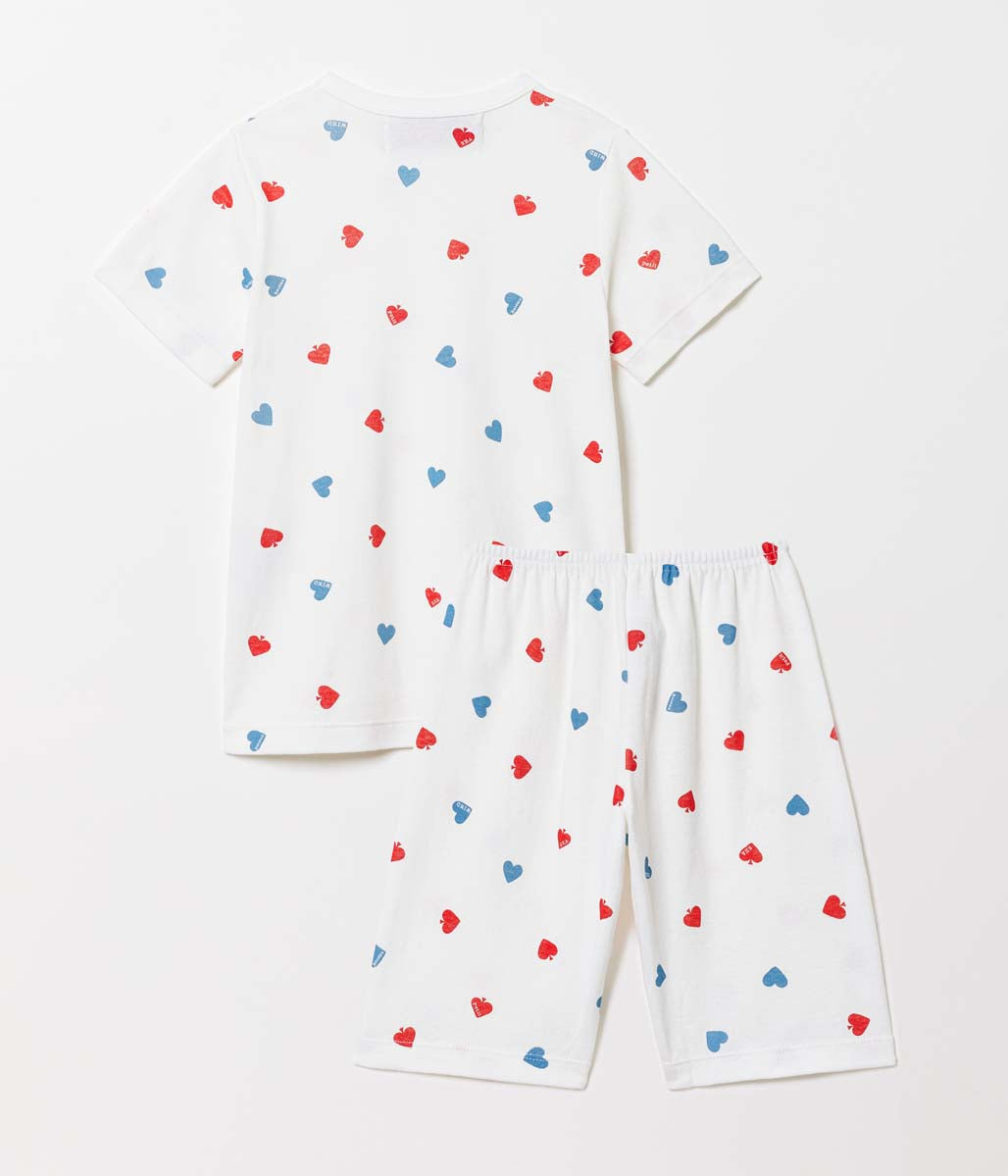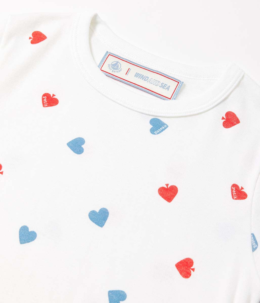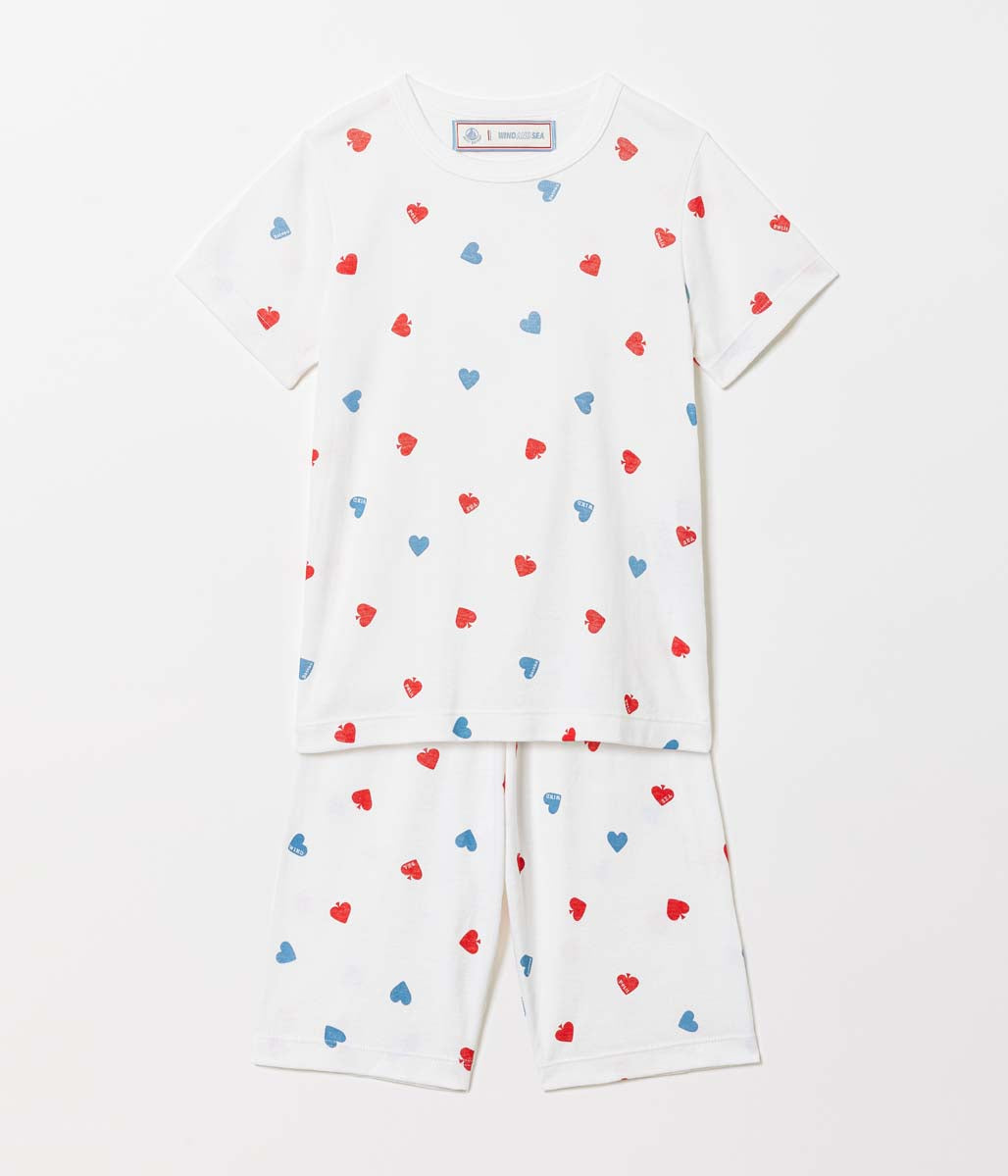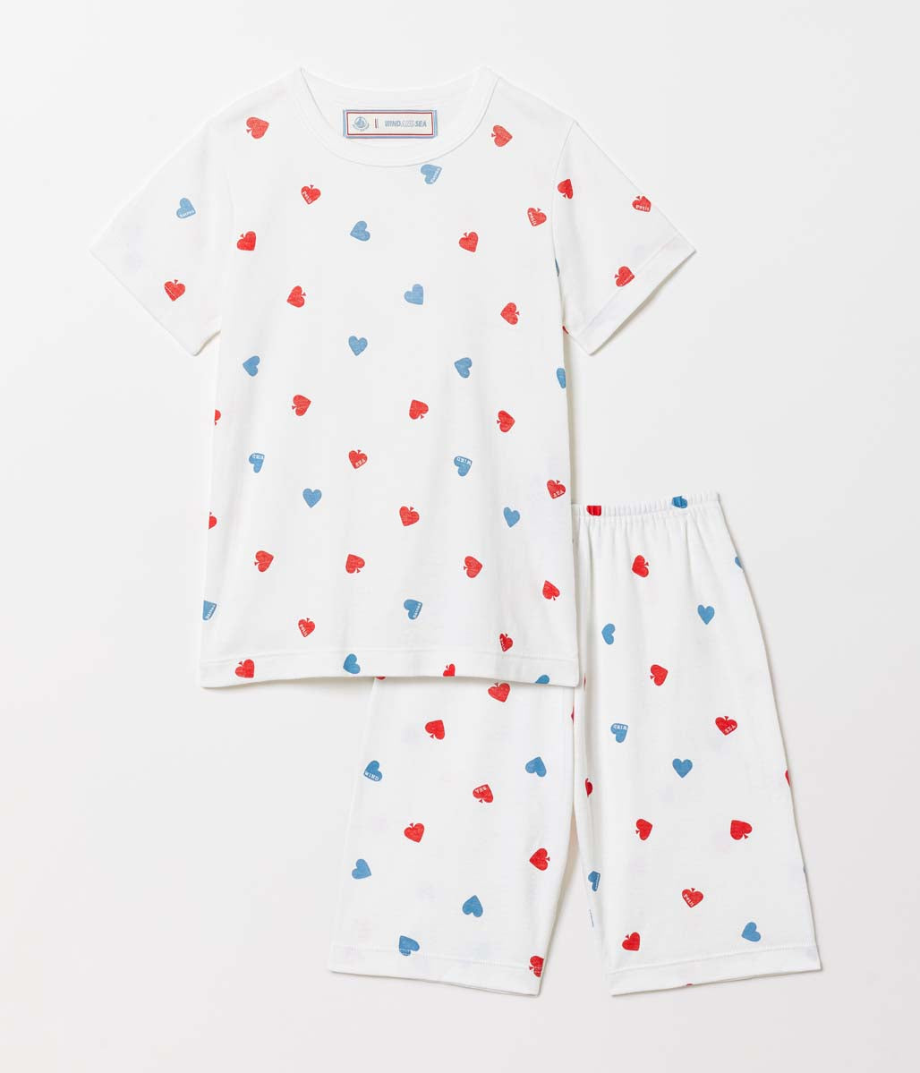 ハートとスペードの総柄の半袖パジャマ。2つのブランドを象徴するプリントを融合したキュートさとクールさを兼ね備えたプリントが魅力です。ベビーや大人とお揃いで着られます。