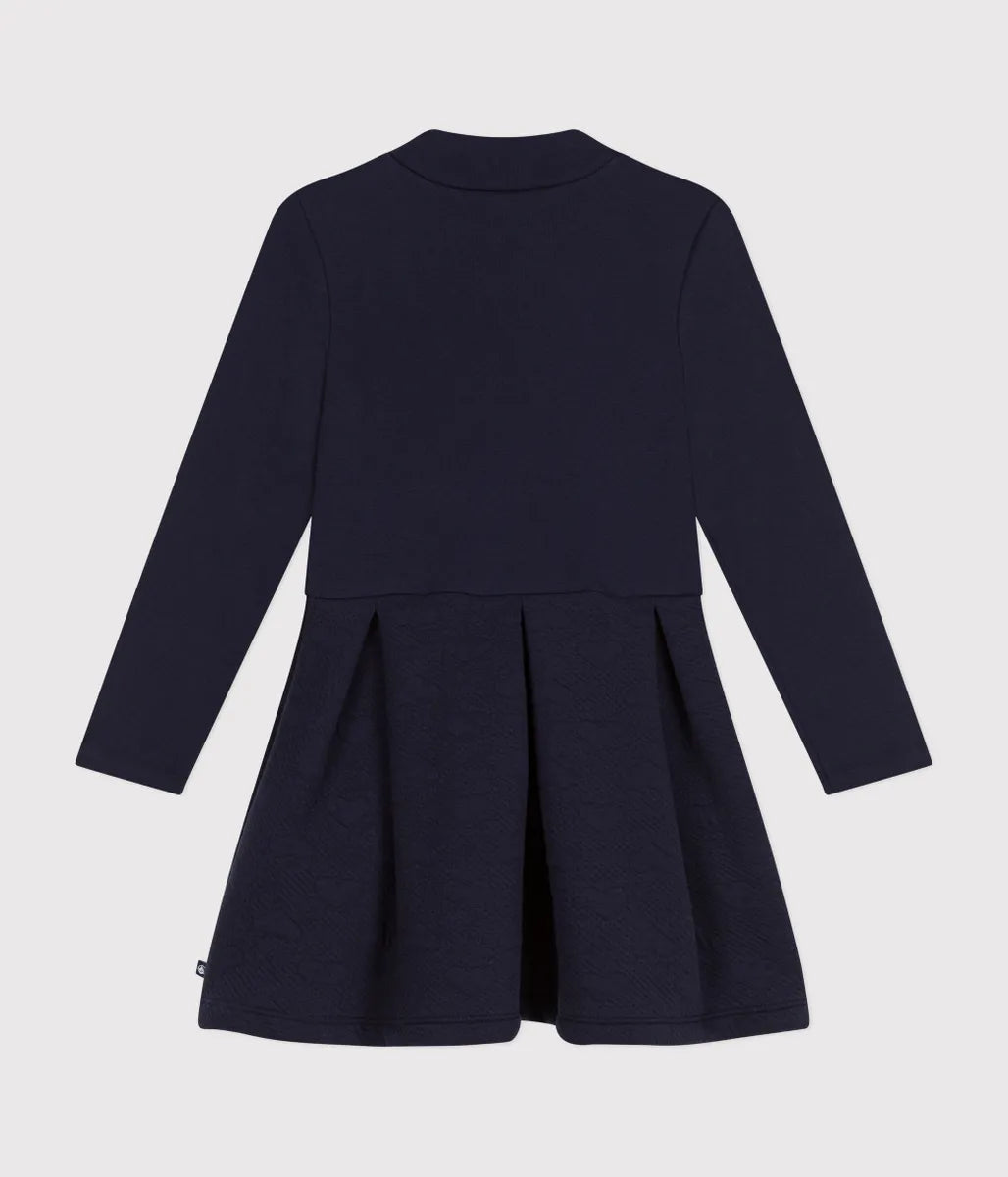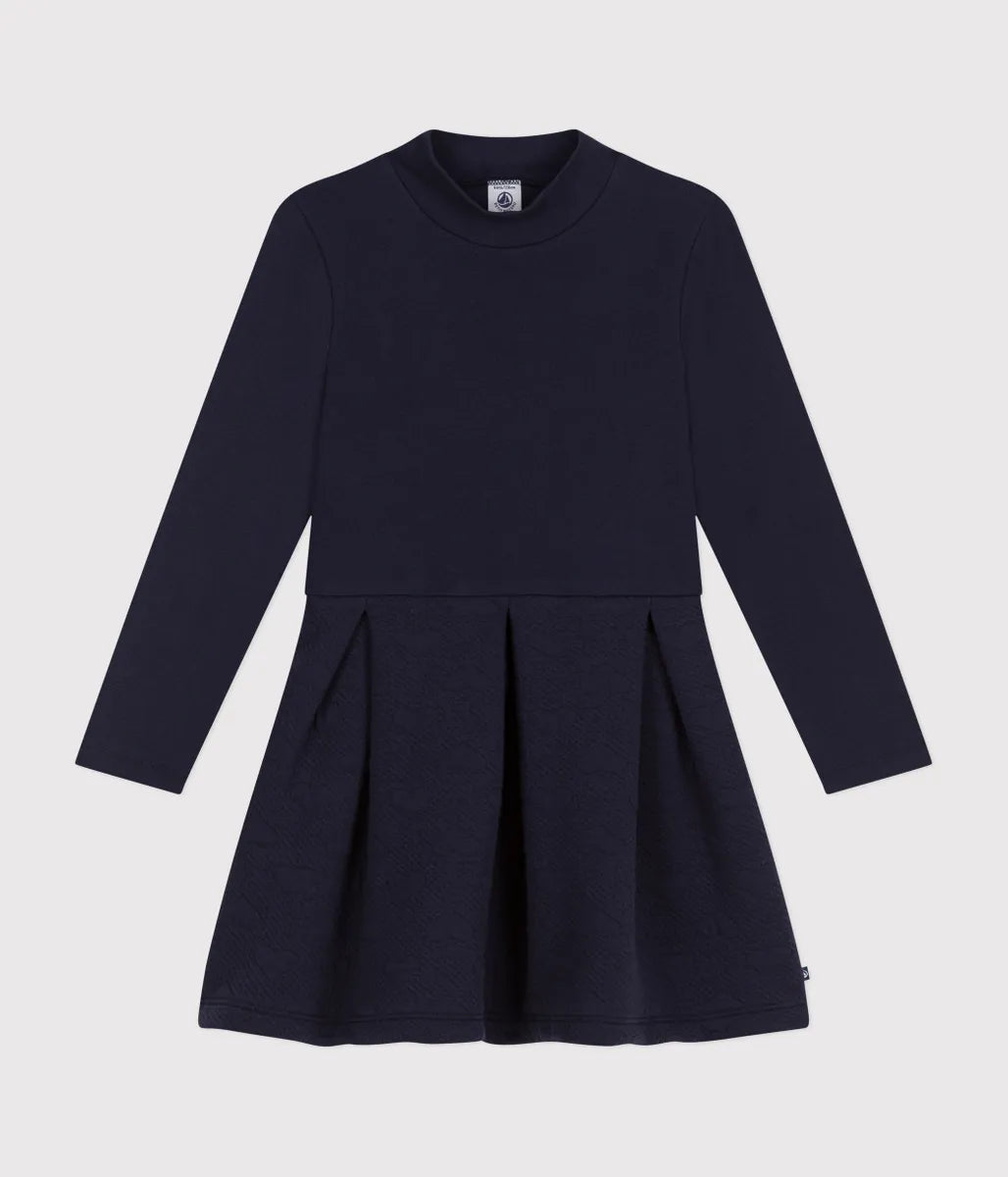 ハートモチーフのキルティングをあしらった長袖ワンピースです。環境にやさしいオーガニックコットン、2枚の生地を編み上げたチュビックキルティング素材を使用しやわらかな着心地を実現しています。ウエストの切り替えやプリーツがデザインのアクセントとなり、ミニマルで美しいデザインを際立たせています。