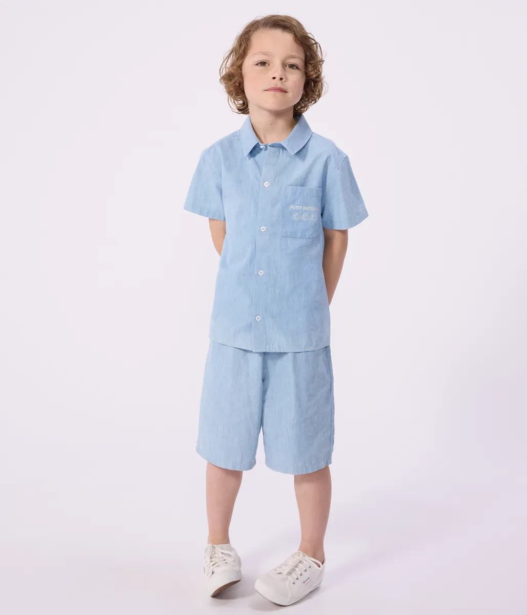 毎日にちょうどいい、シャンブレー素材の爽やかバミューダパンツ-デザインの特徴-