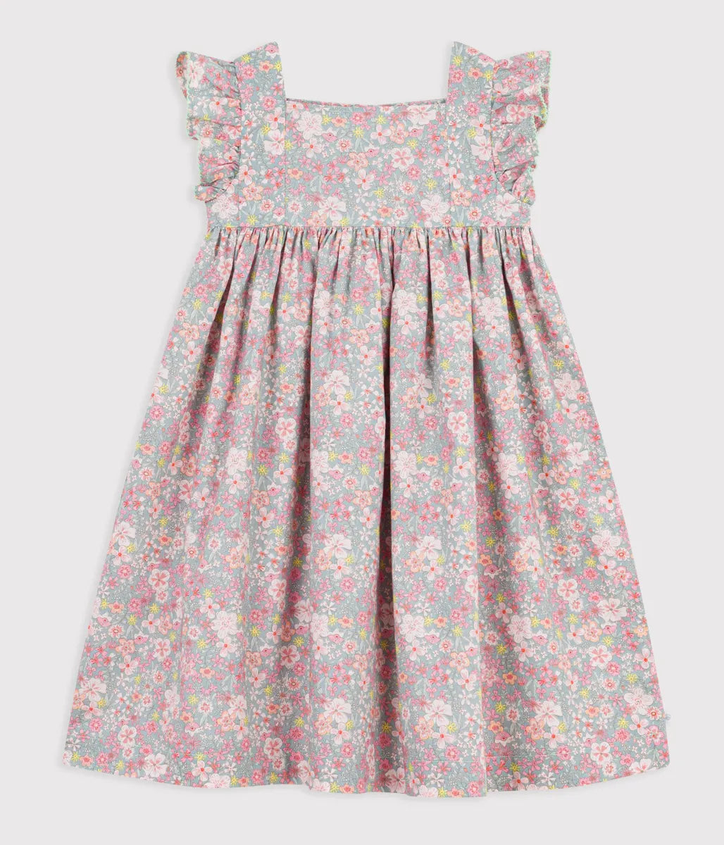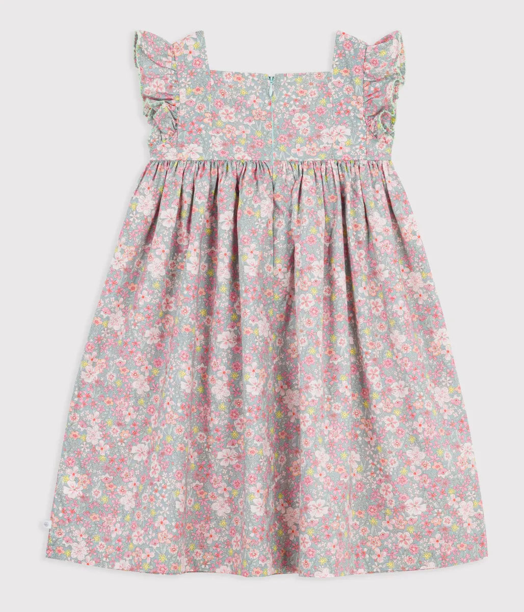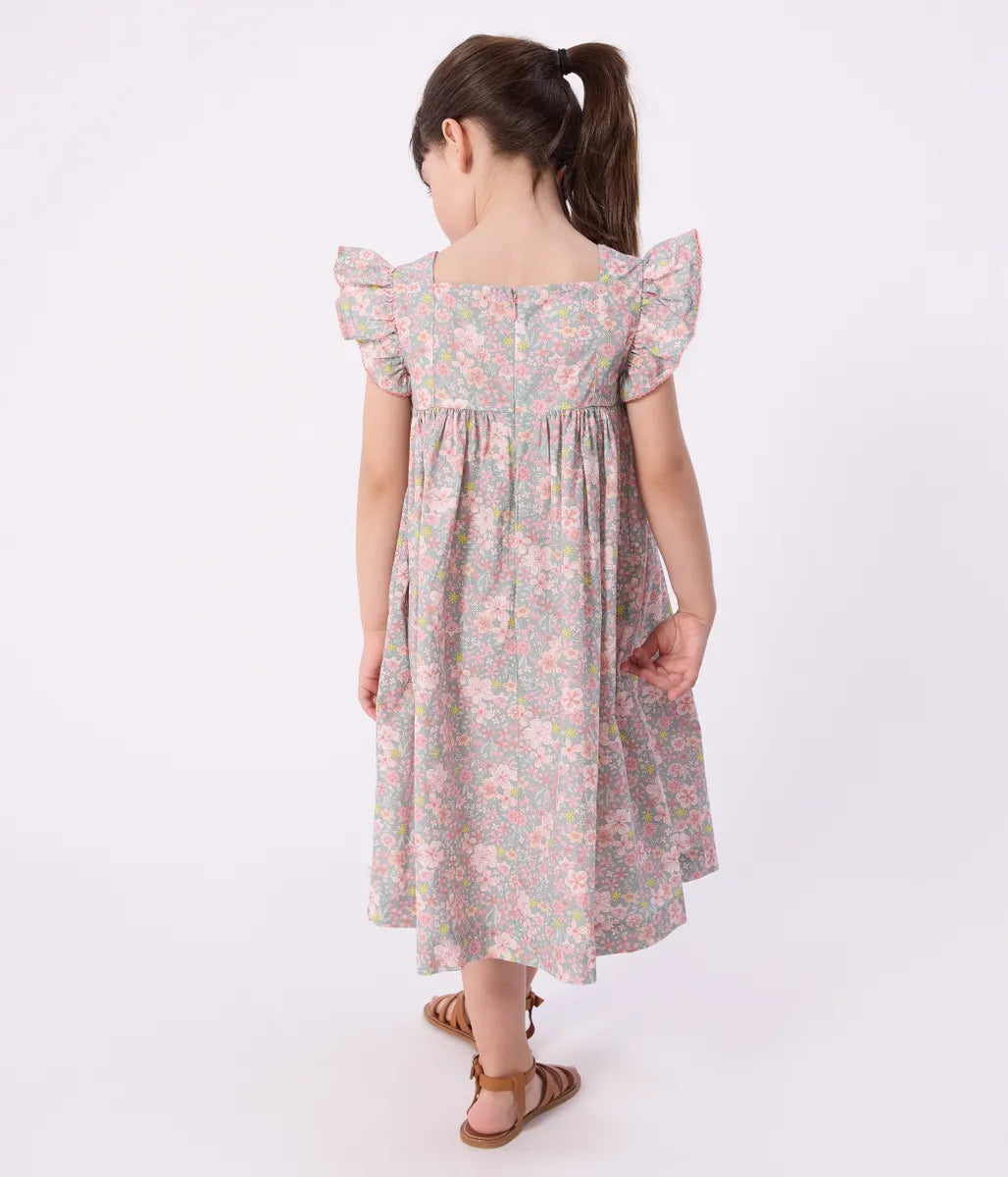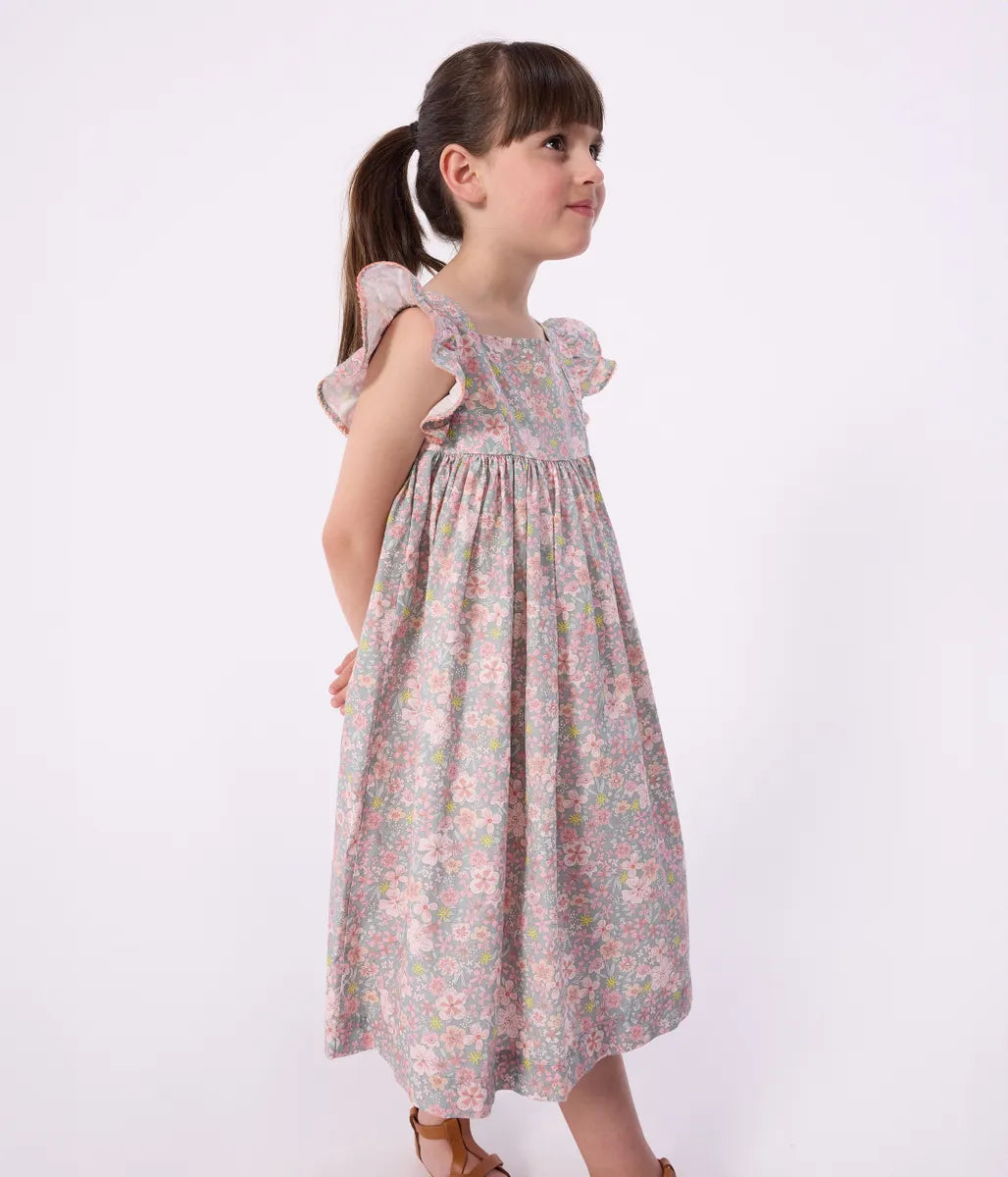 やさしいフラワー柄が愛らしさを引き立てるワンピースです。フリル袖と胸元の切り替えから広がるシルエットが、動くたびに軽やかな印象を演出します。デイリーからお出かけまで一枚でスタイルが決まる、季節に寄り添うおすすめの一着です。姉妹でお揃いコーディネートも可能。