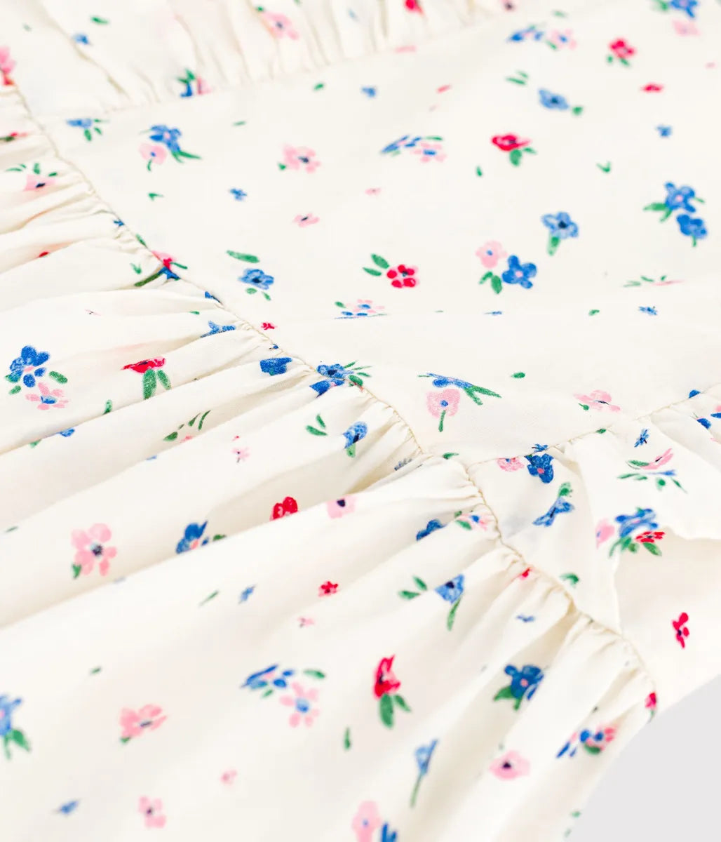 色鮮やかで可憐なフラワー柄が愛らしさを引き立てるワンピースです。フリル袖と胸元の切り替えから広がるシルエットが、動くたびにやさしい印象を演出します。デイリーからお出かけまで一枚でスタイルが決まる、季節に寄り添うおすすめの一着です。