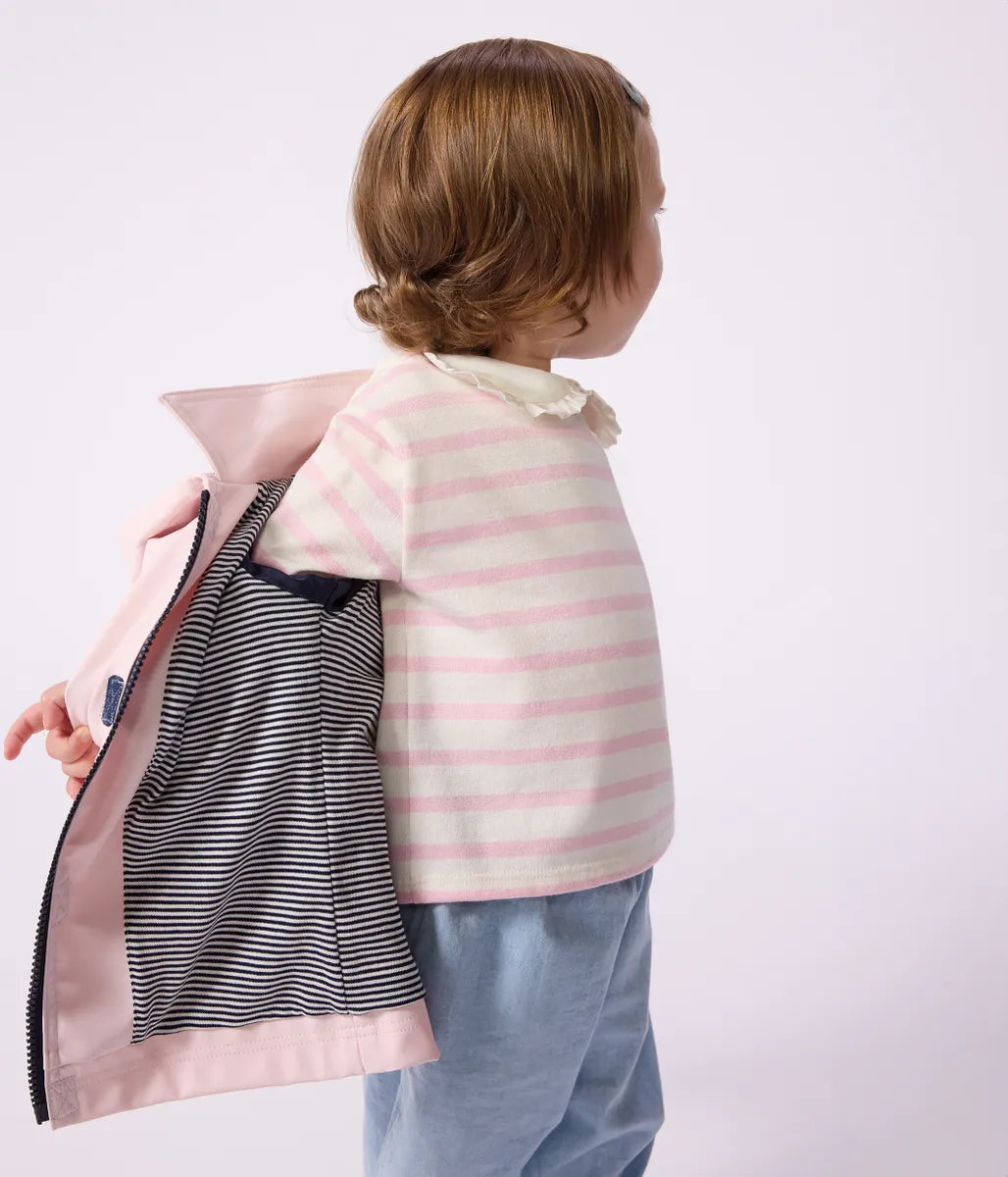 プチバトーの定番ヨットパーカに淡い色合いの新シリーズが登場です。裏地にあしらったアイコニックな極細ミラレボーダーがポイント。通年で活躍し、ファミリーで揃えたコーディネートも楽しめる人気アイテムです。